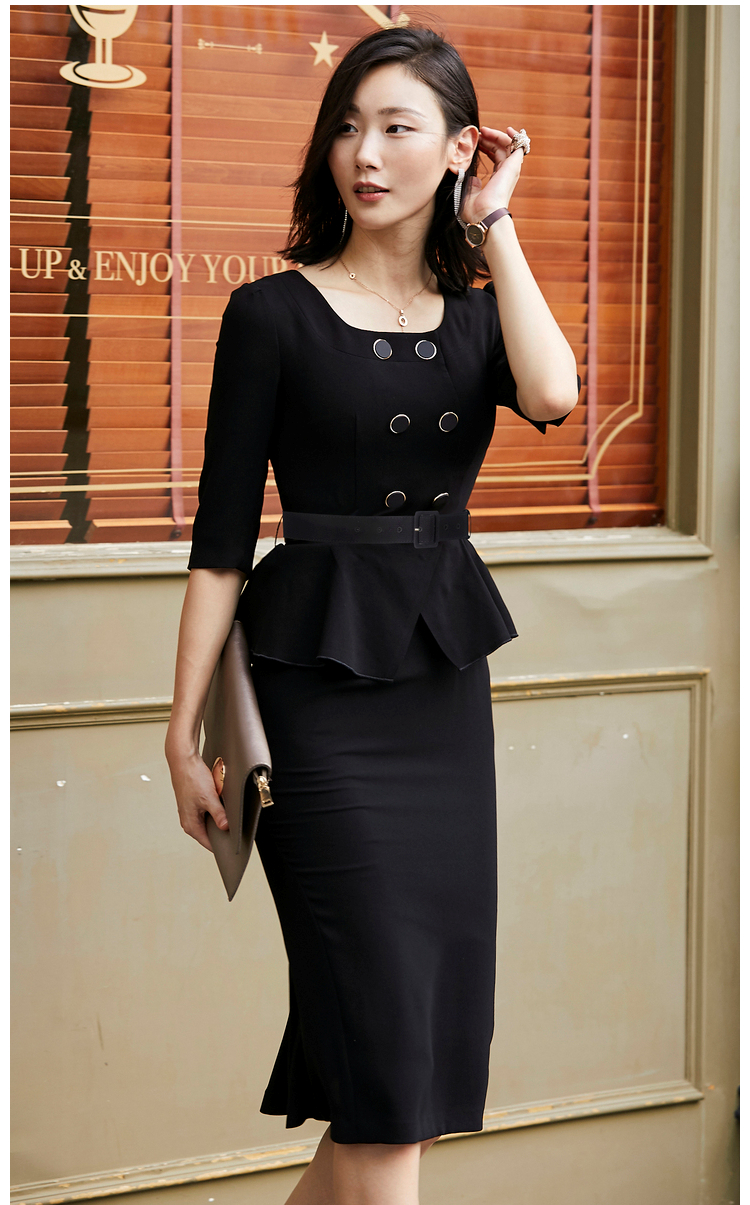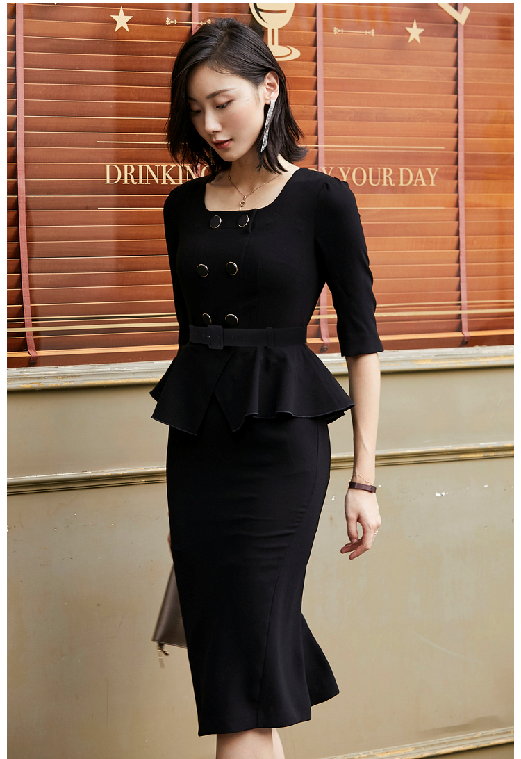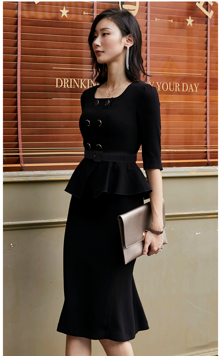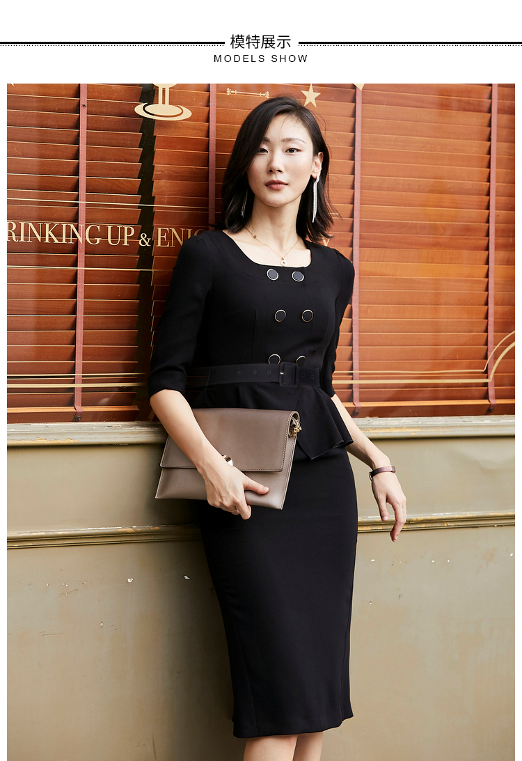 JG21184876T1X7颈袖添香年季女装收腰修身长款气质时尚通勤职业连衣裙
