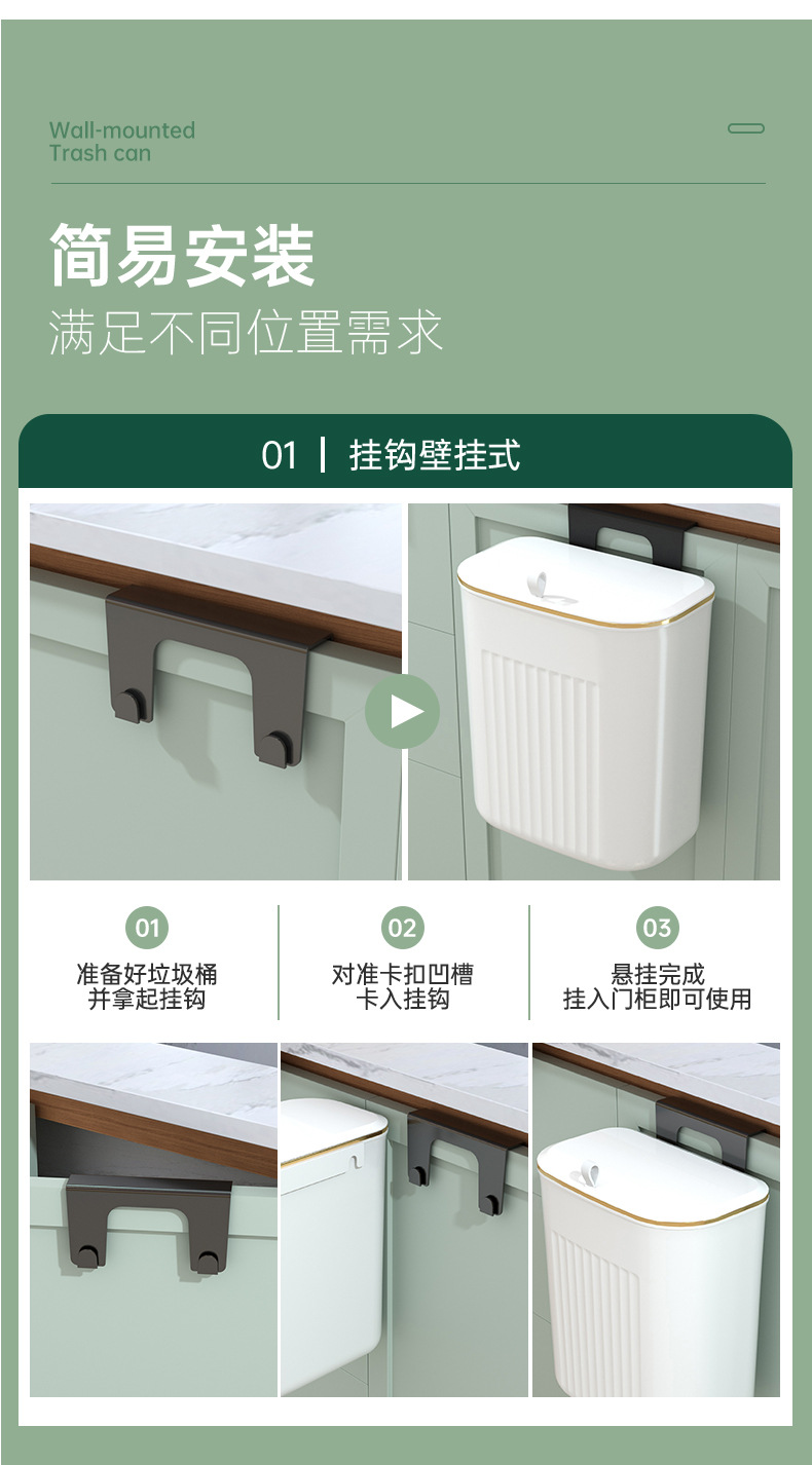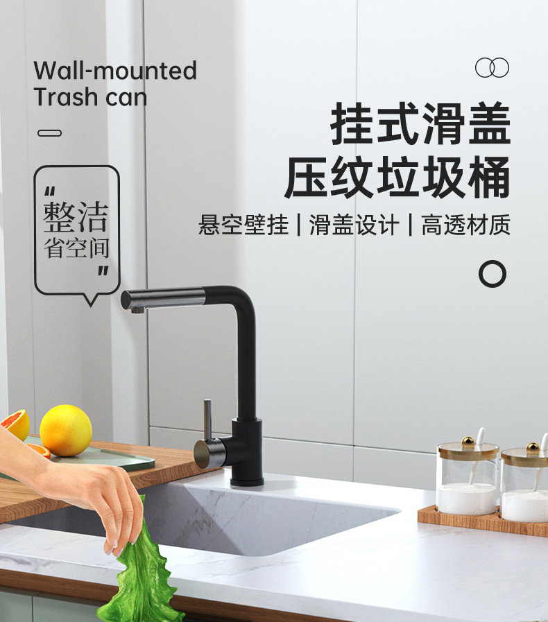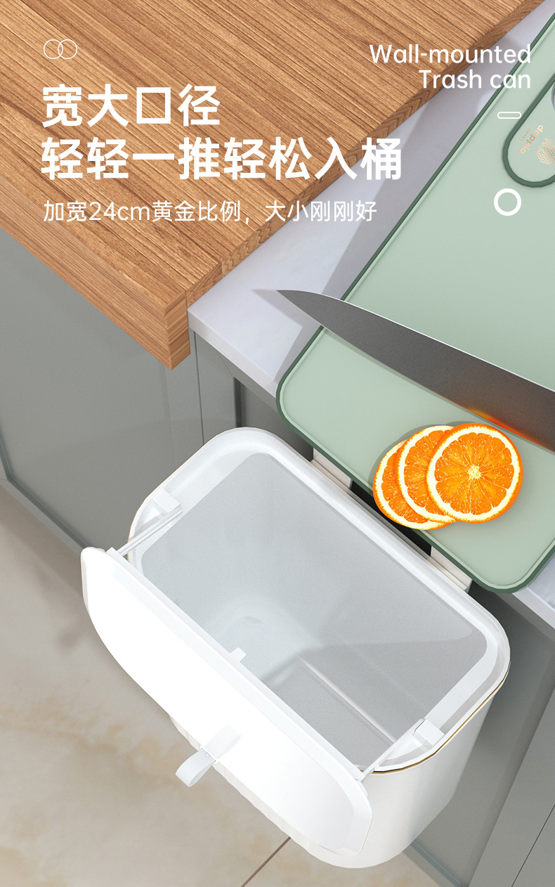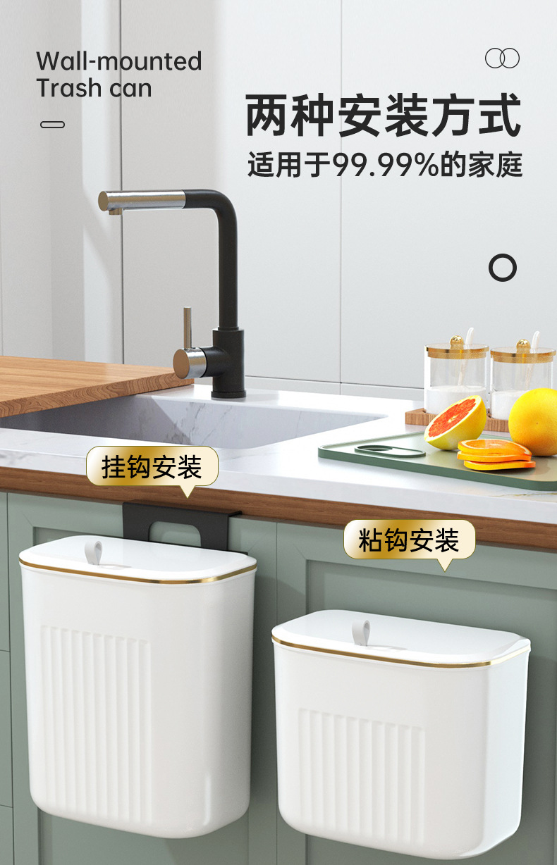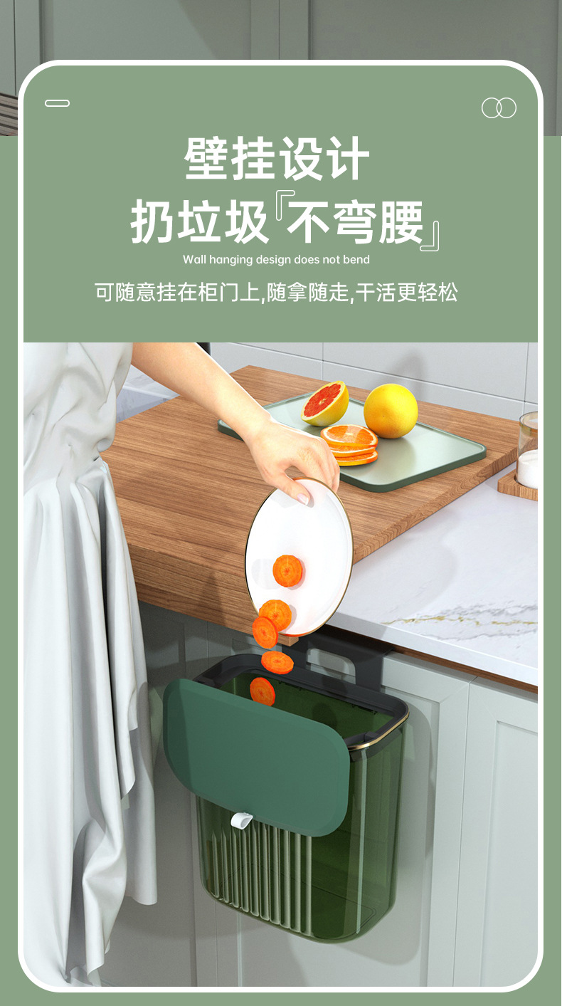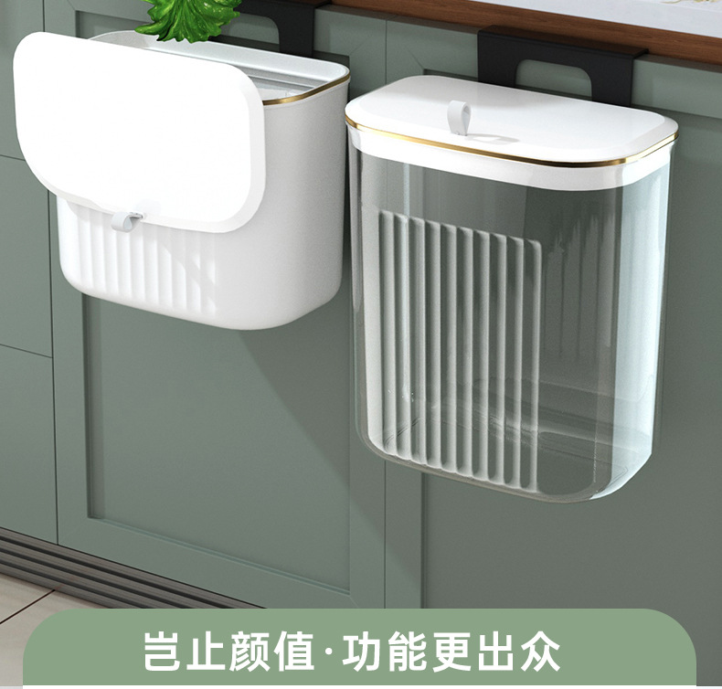 「大小两号!壁挂式」居家日用颜值厨房橱柜壁挂厨余垃圾桶带盖浴室悬挂垃圾筒垃圾筐纸篓用品