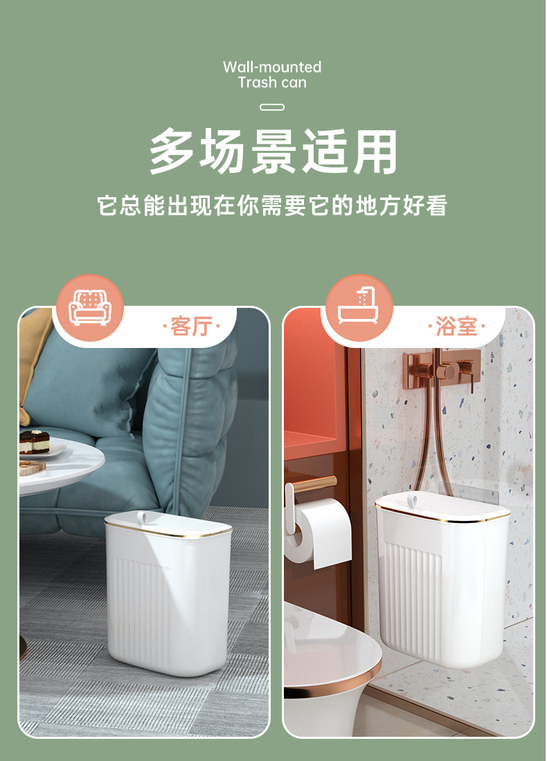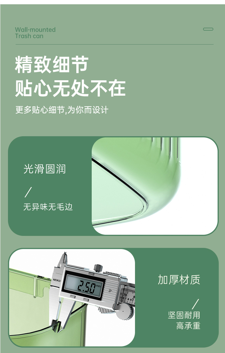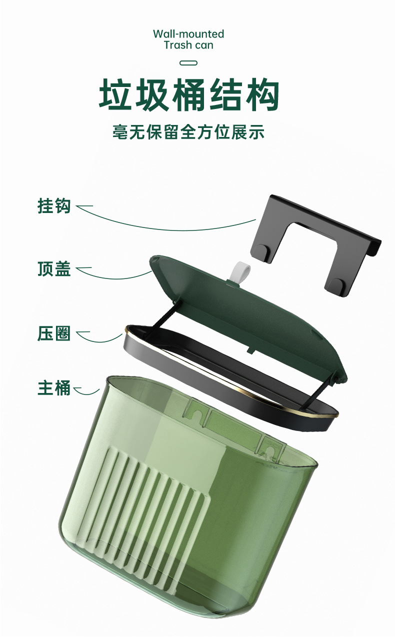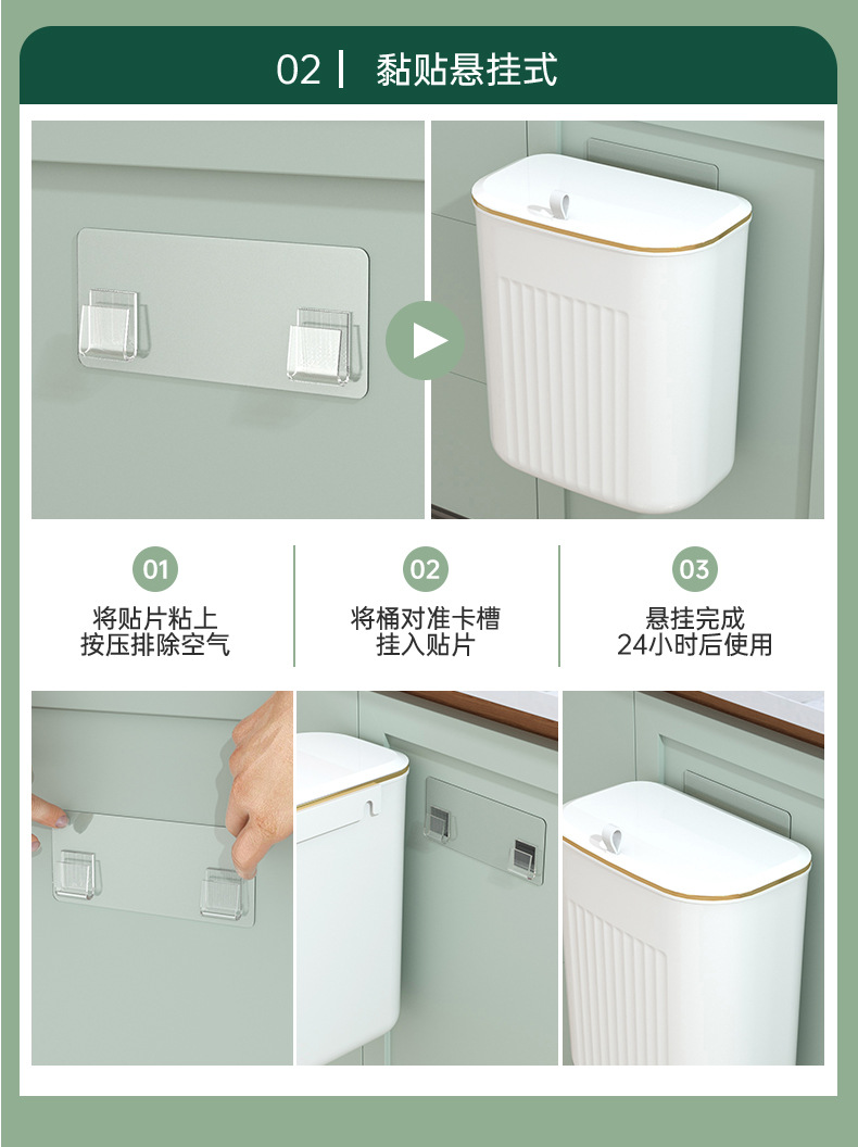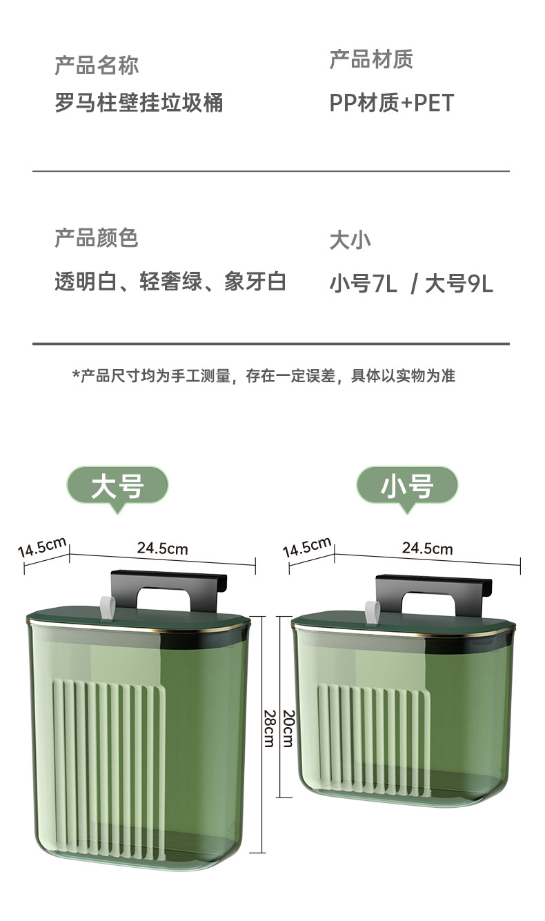 「大小两号!壁挂式」居家日用颜值厨房橱柜壁挂厨余垃圾桶带盖浴室悬挂垃圾筒垃圾筐纸篓用品