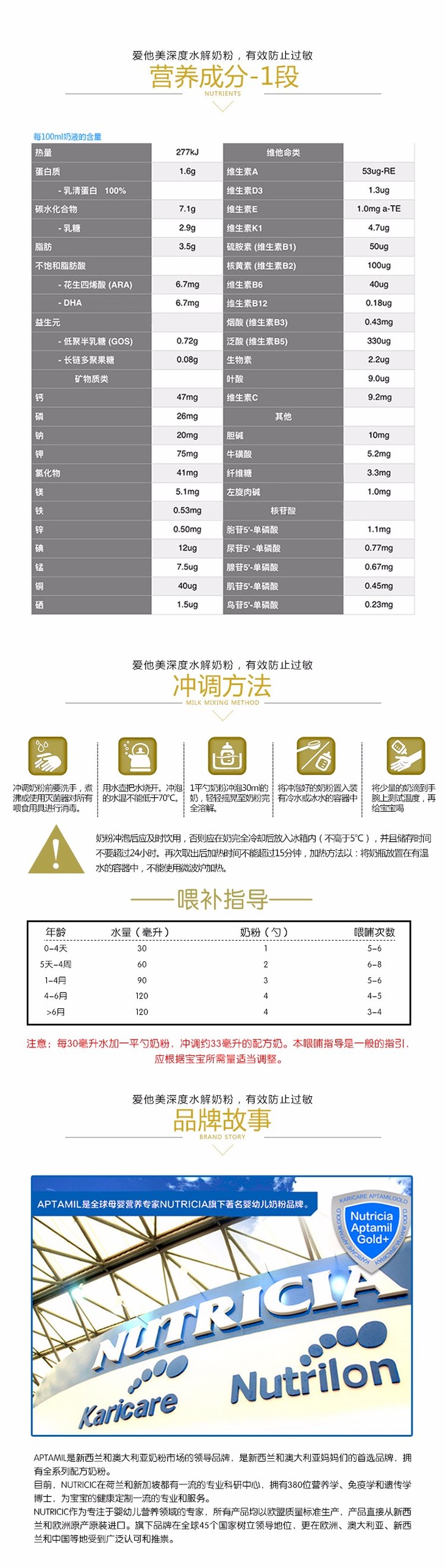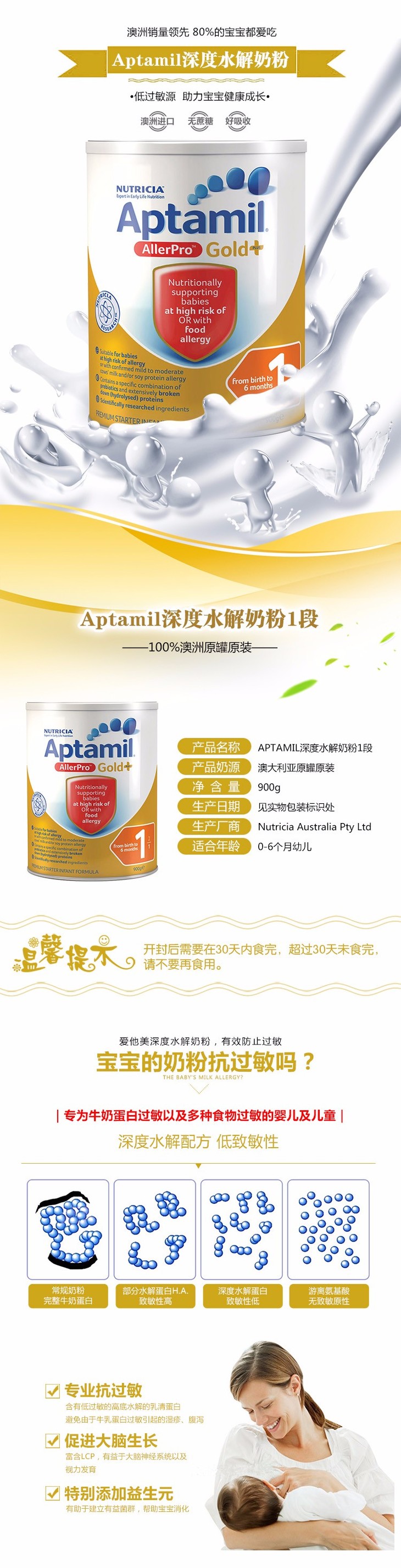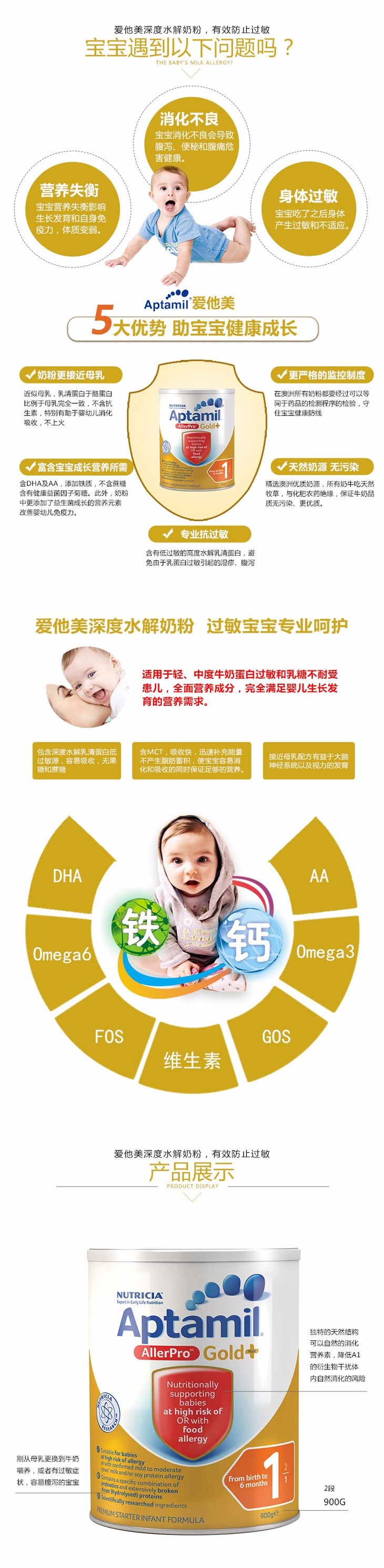 澳洲爱他美1段奶粉深度水解抗过敏湿疹奶粉