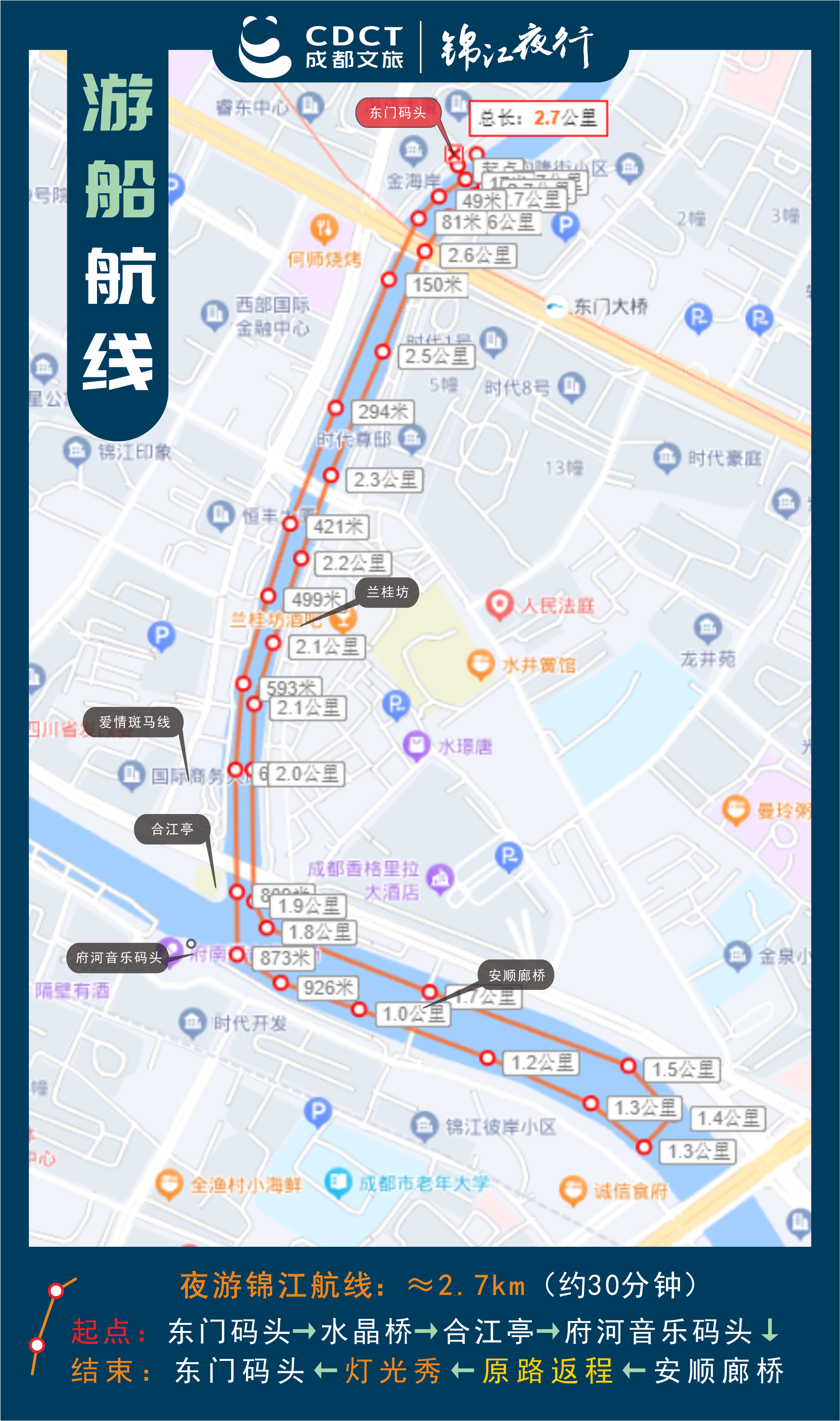 锦江夜行·成都City Walk | 东门码头| 大船30分钟(晚上19:30分准时发船,不排队,仅此一班。船型座位随机安排)