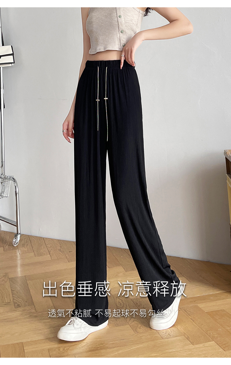 OLrain欧芮儿法式坑条阔腿休闲裤女夏季2023年新款小个子窄版长裤