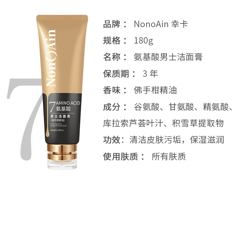 NONOAIN AIN2007型 180g氨基酸男士洁面膏(佛手柑精油)7号 赠品:80g氨基酸水润净肤洁面膏(葡萄柚精油)