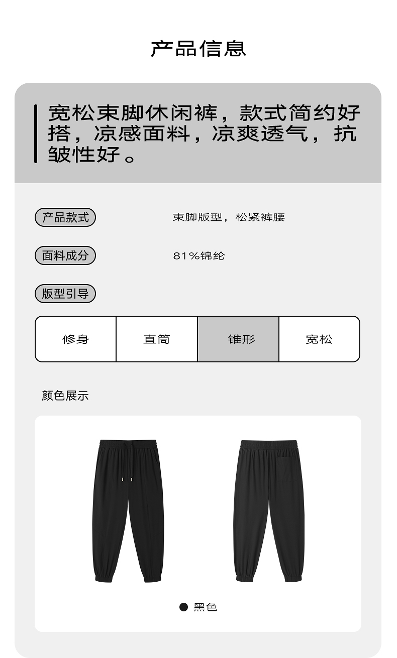 GXG男装 休闲裤长裤束脚垂坠感易打理宽松薄时尚 夏季热卖