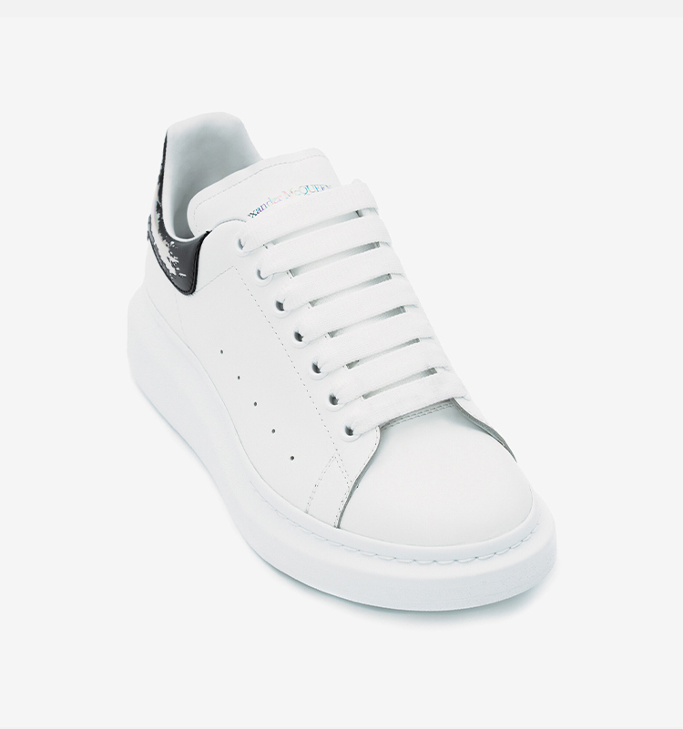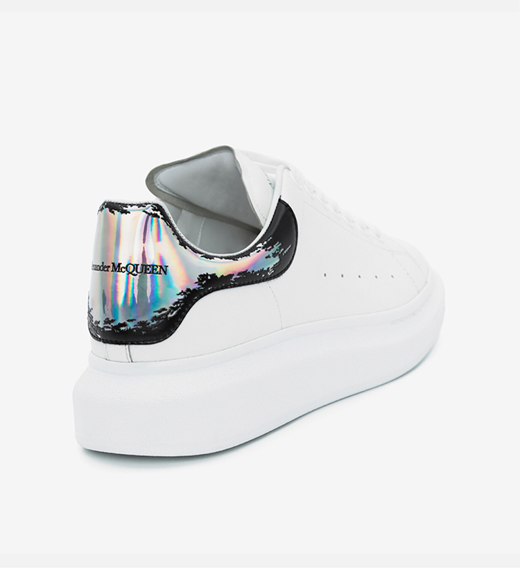 ALEXANDER MCQUEEN 亚历山大.麦昆 男士小牛皮黑彩尾阔型休闲运动鞋 白色 705061 WIBNS 9989