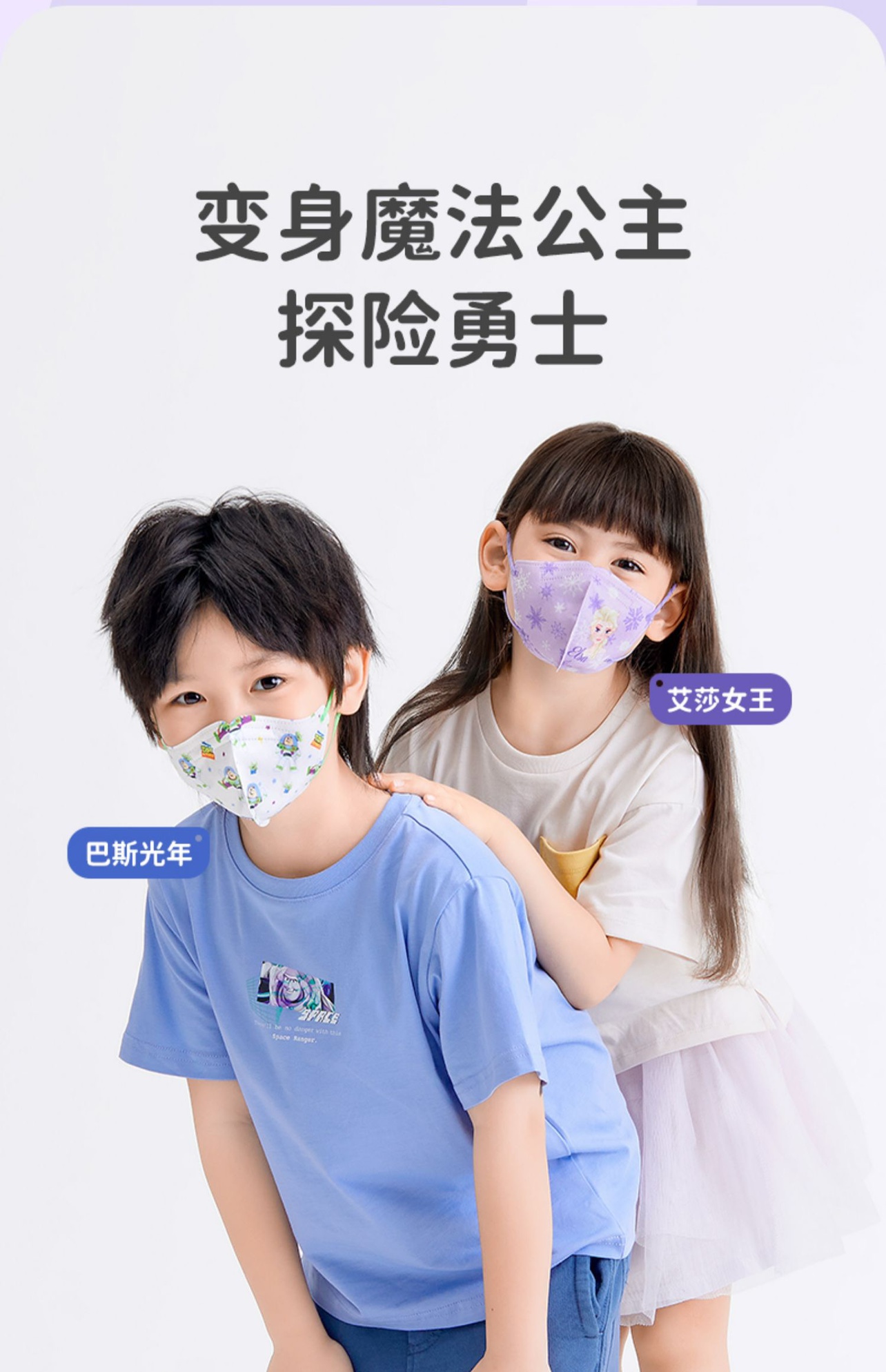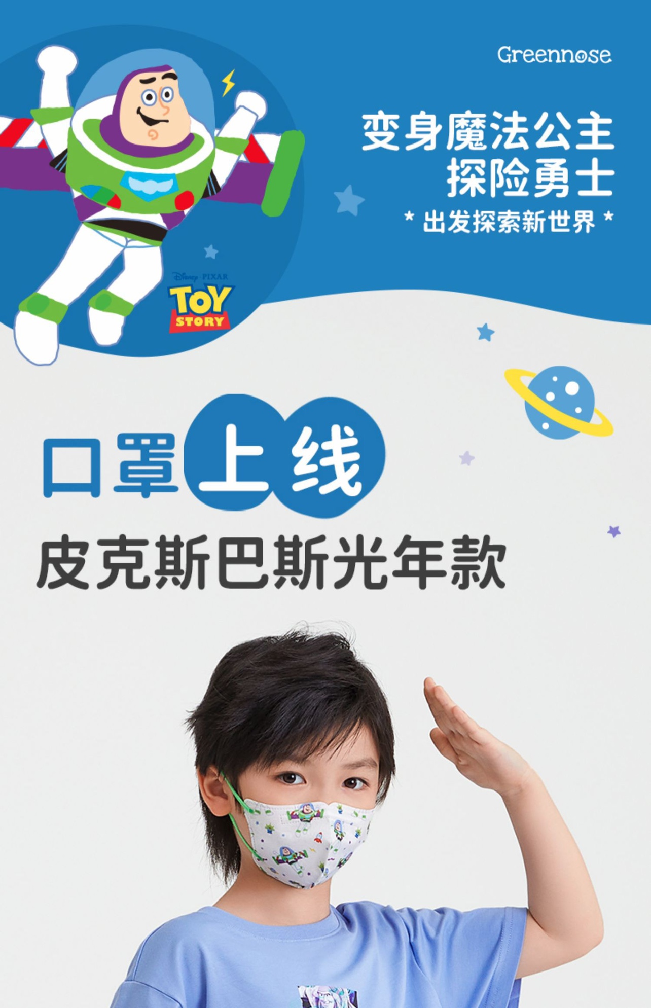 绿鼻子greennose迪士尼限量款立体儿童口罩0-6岁透气宝宝婴儿艾莎巴斯光年