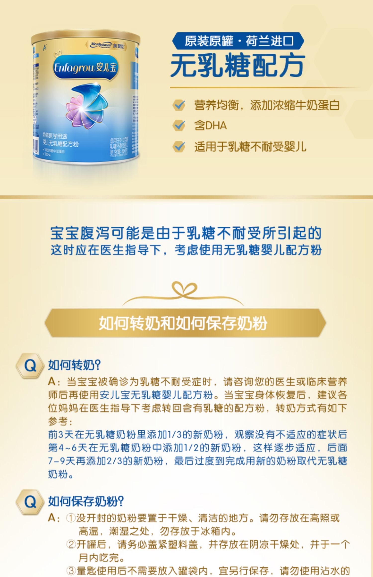 【官方正品】美赞臣安儿宝无乳糖奶粉 400g