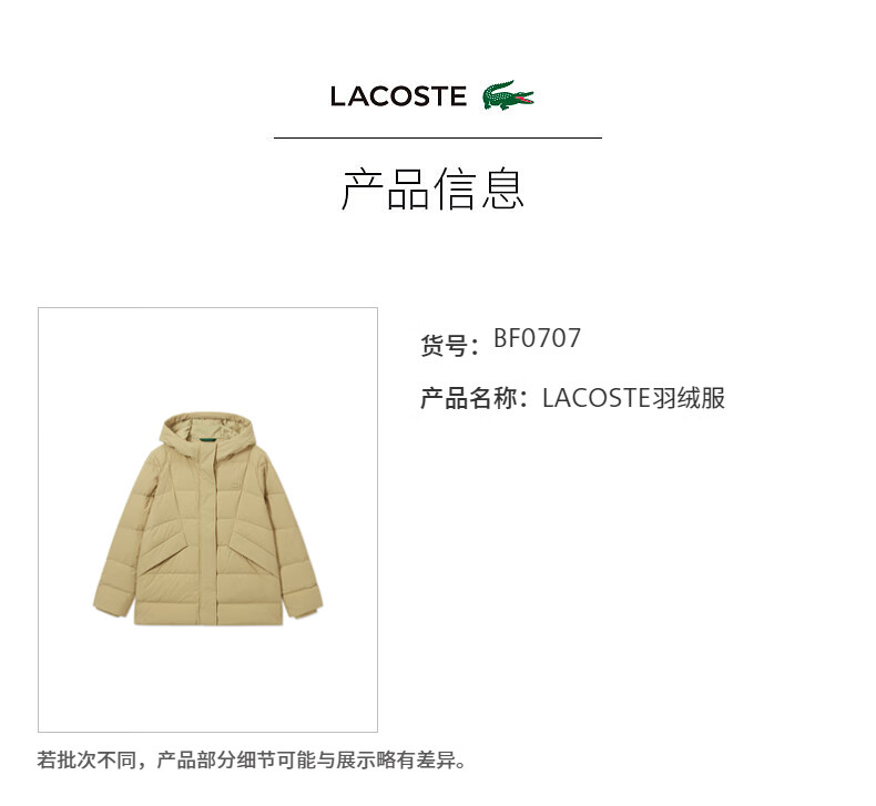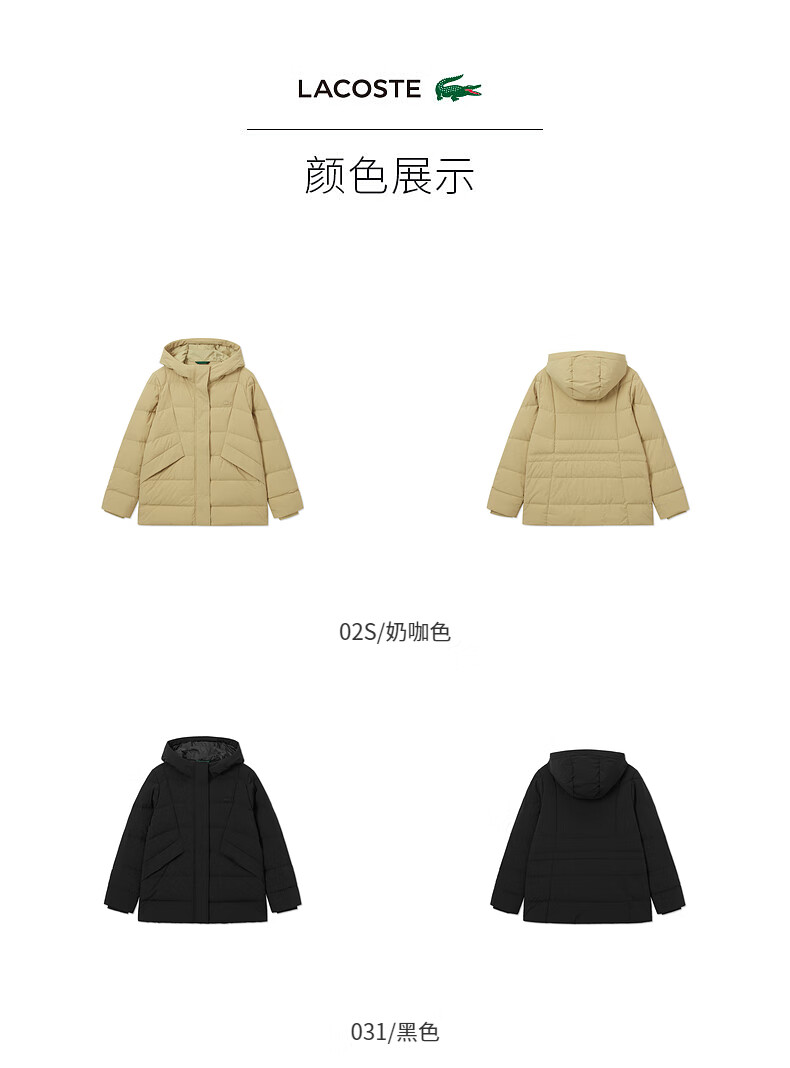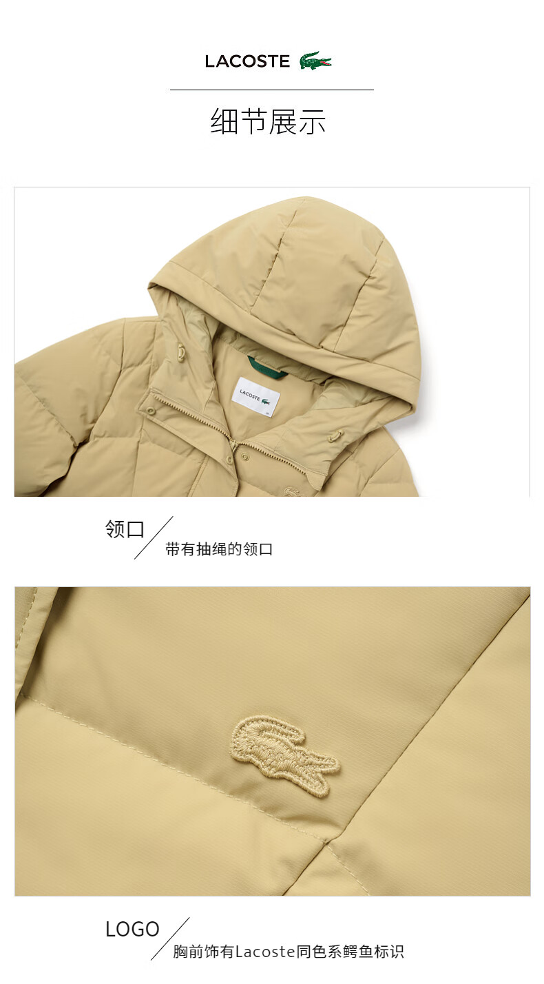 Lacoste法国鳄鱼女装新款时尚休闲纯色鹅绒羽绒服外套BF0707-98
