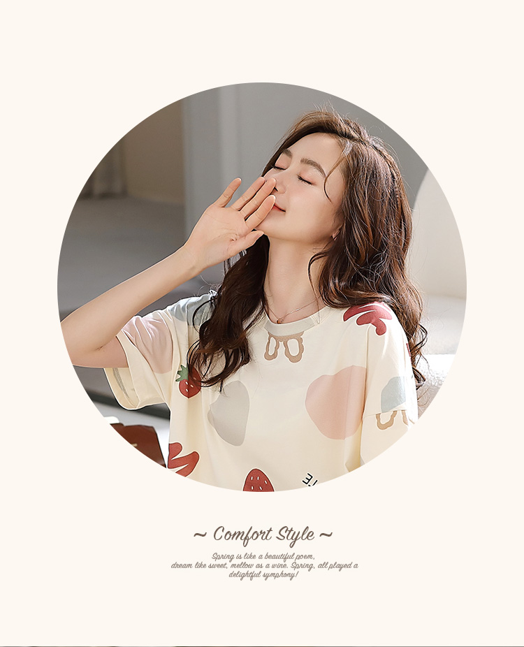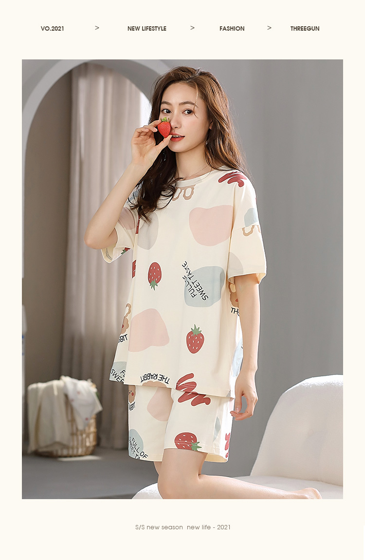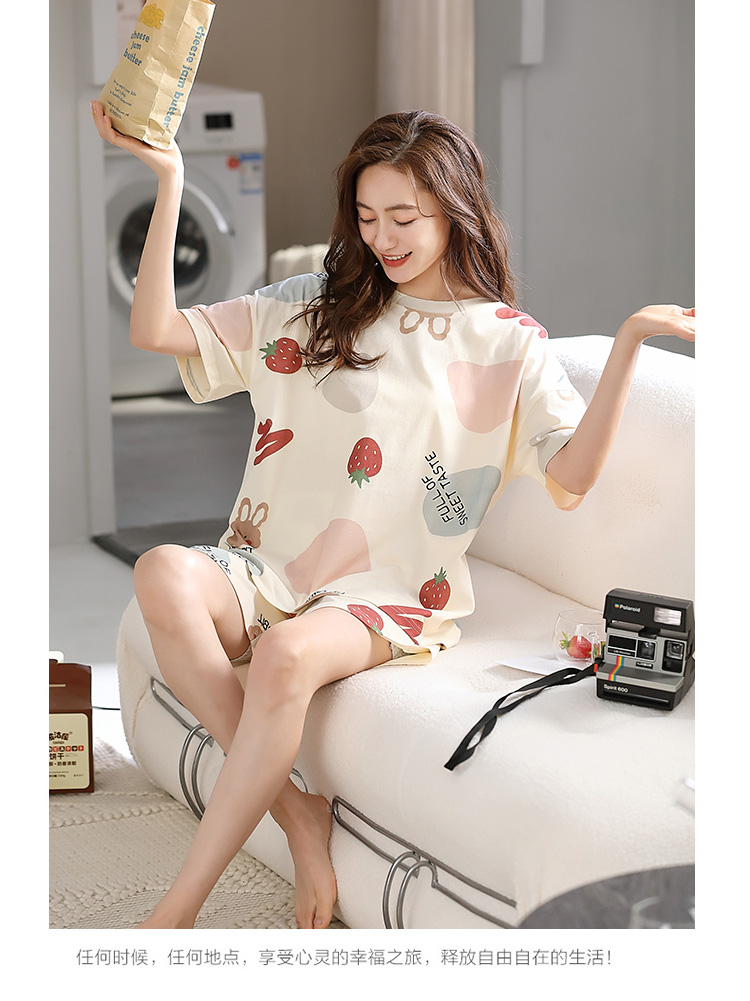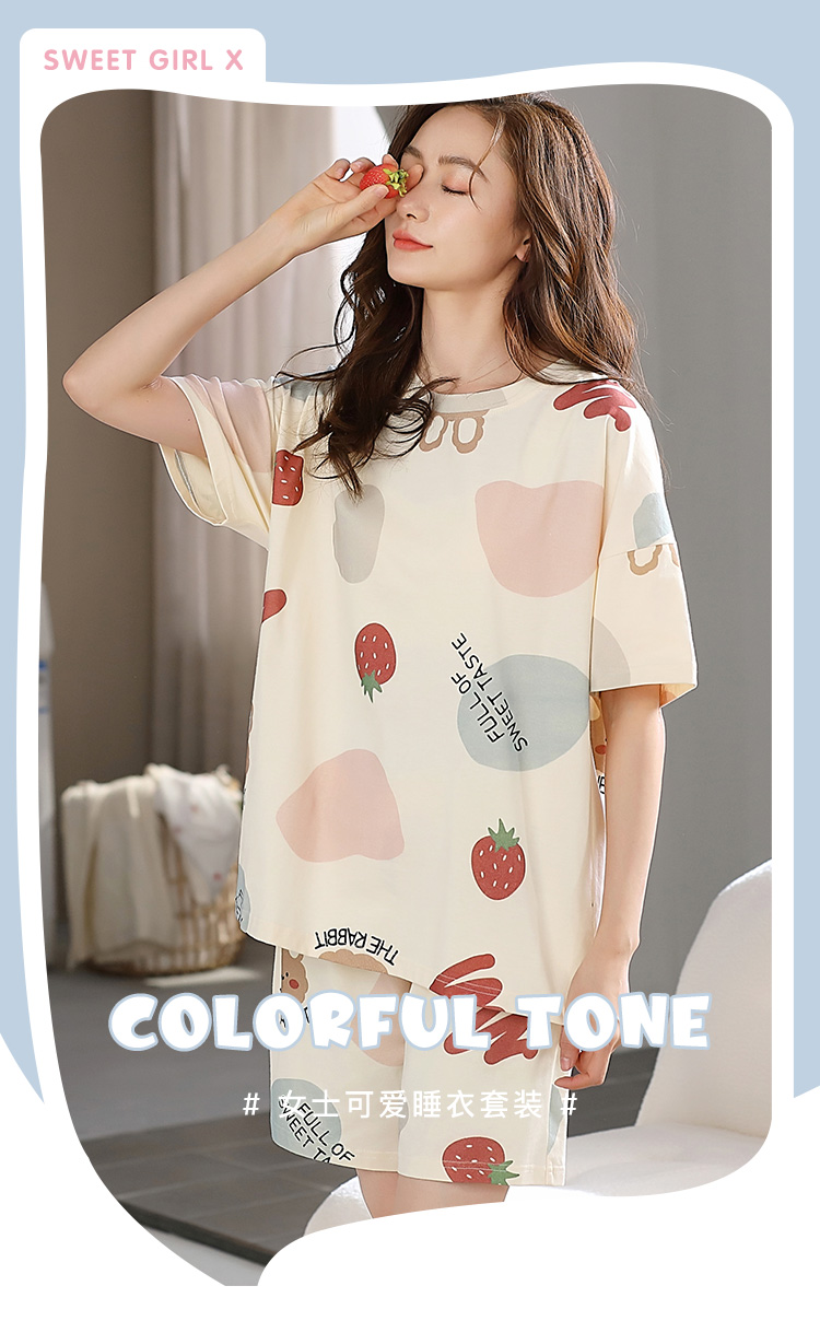 洁丽雅春夏新品女士家居服涤棉圆短袖短裤套装可外穿睡衣女