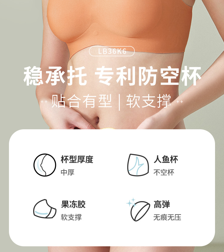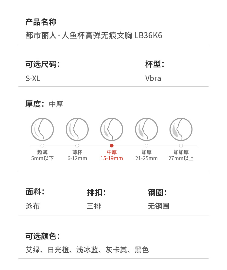 都市丽人Vbra内衣无尺码中厚3/4杯泳布文胸三排无钢圈LB36K6