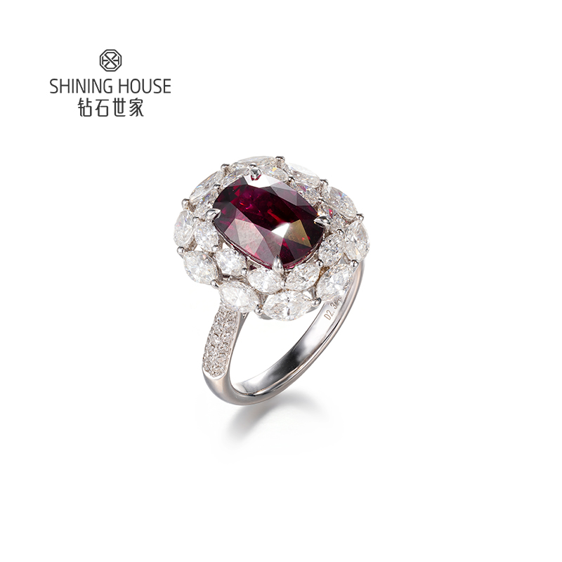 【无烧红宝石戒指】钻石世家 18K金红宝石镶钻戒指 高级设计珠宝系列 让人一见倾心的红宝石 演绎女性的高贵柔情 也寓意着浪漫炙热的美好感情
