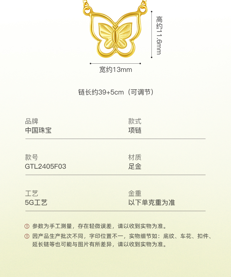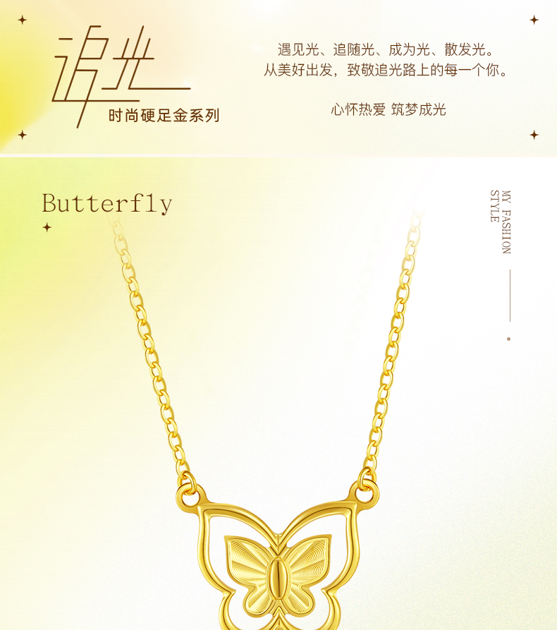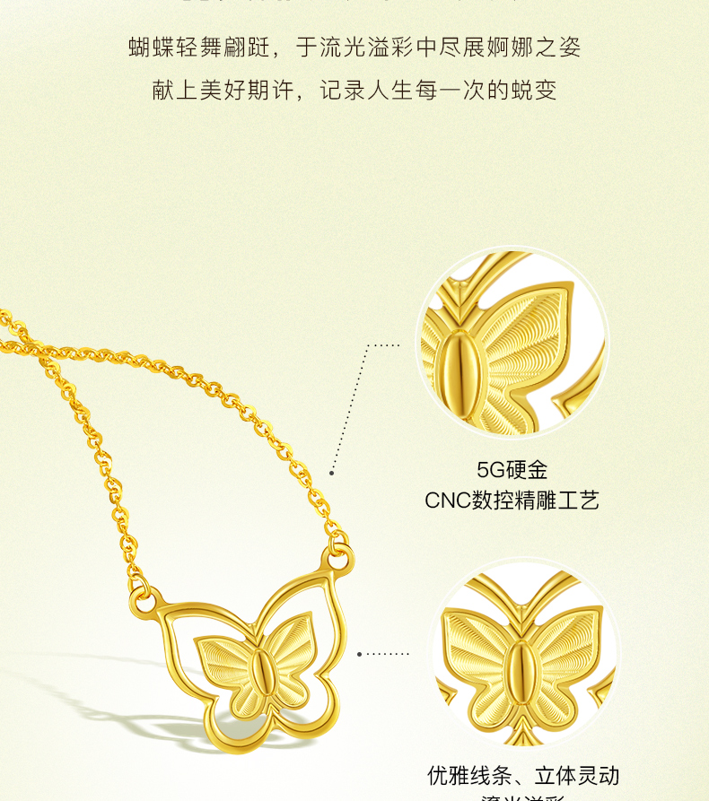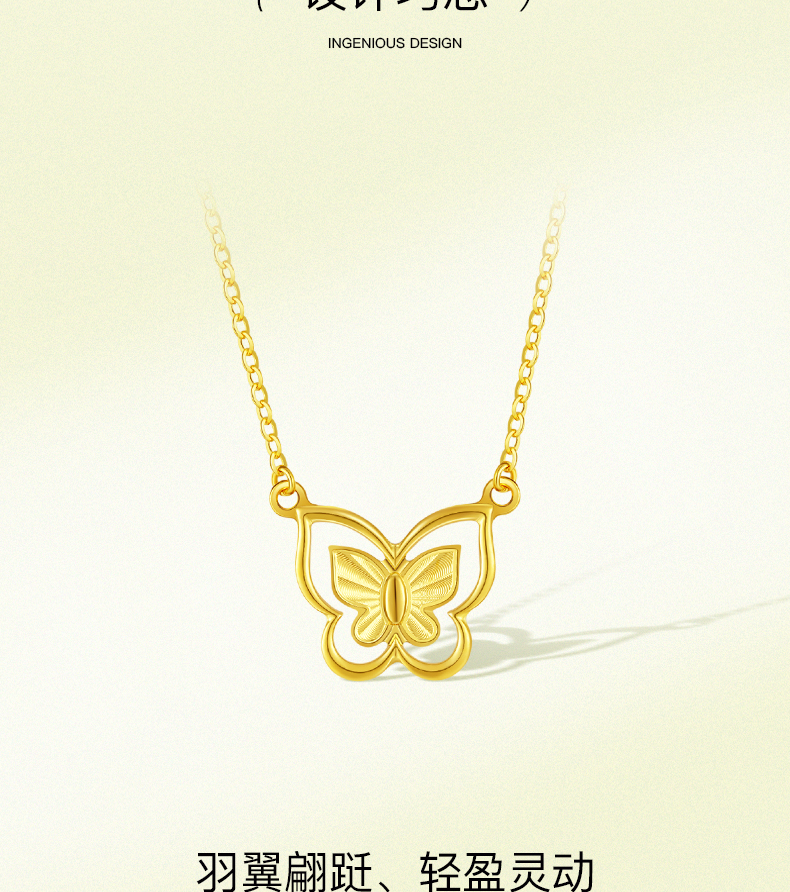 「追光」5G黄金蝶舞套链 时尚镂空蝴蝶足金项链锁骨链送女友