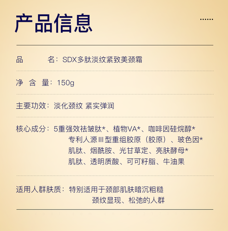 【超值赠品】SDX 多肽淡纹紧致 美颈霜 颈纹霜 滋润保湿 改善干纹 150g/1支