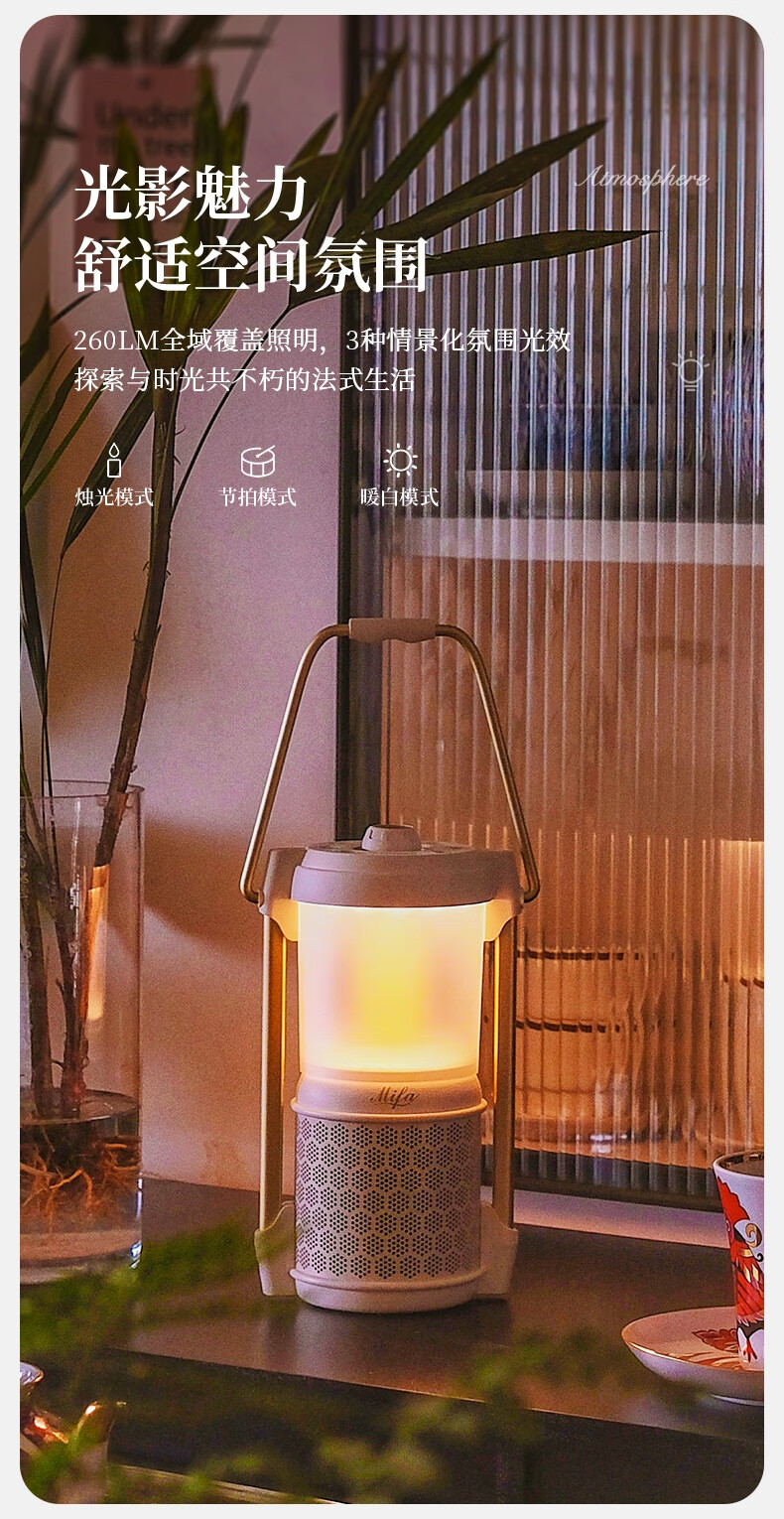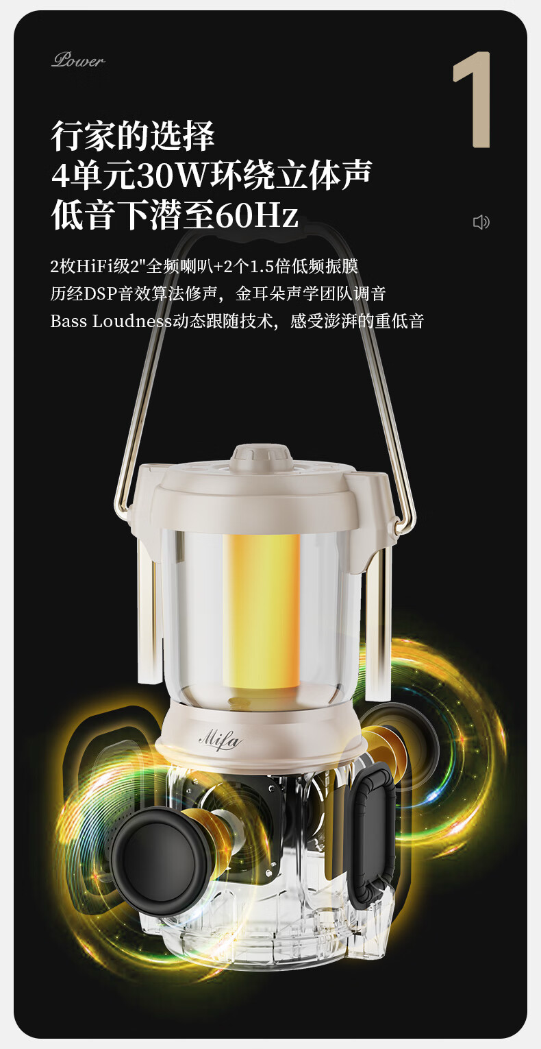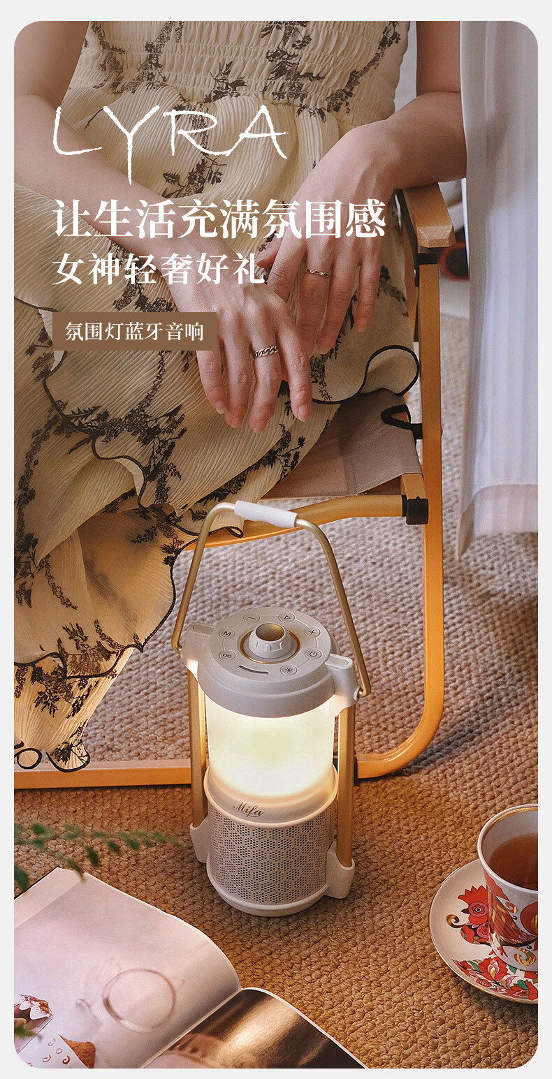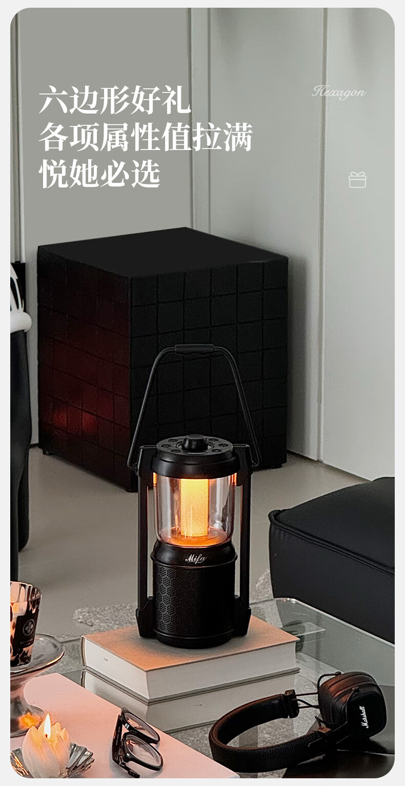 MIFA Lyra蓝牙音响露营灯无线家用氛围电脑桌面小音箱户外便携式插卡音响高颜值防水高音质环绕低音炮 深空玄黑【LYRA典藏版】