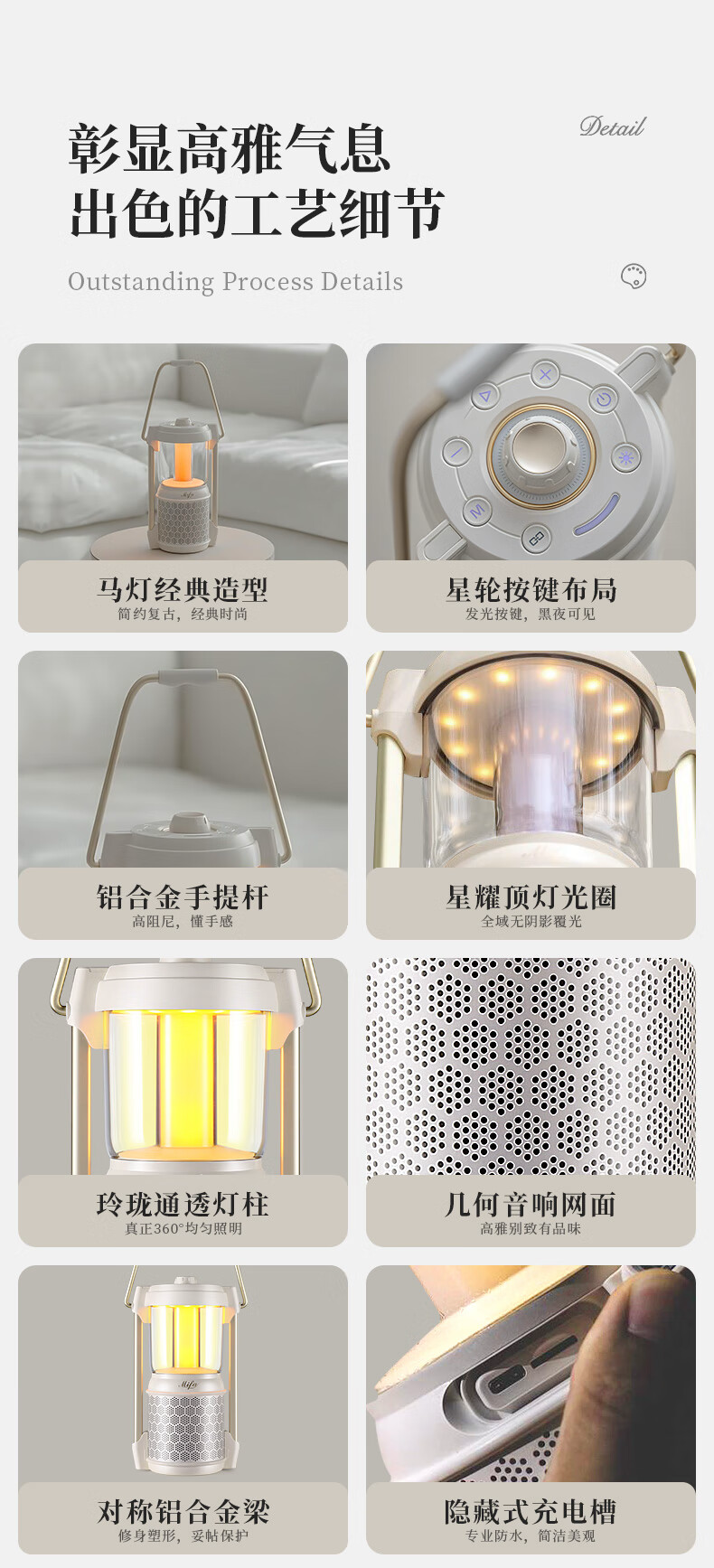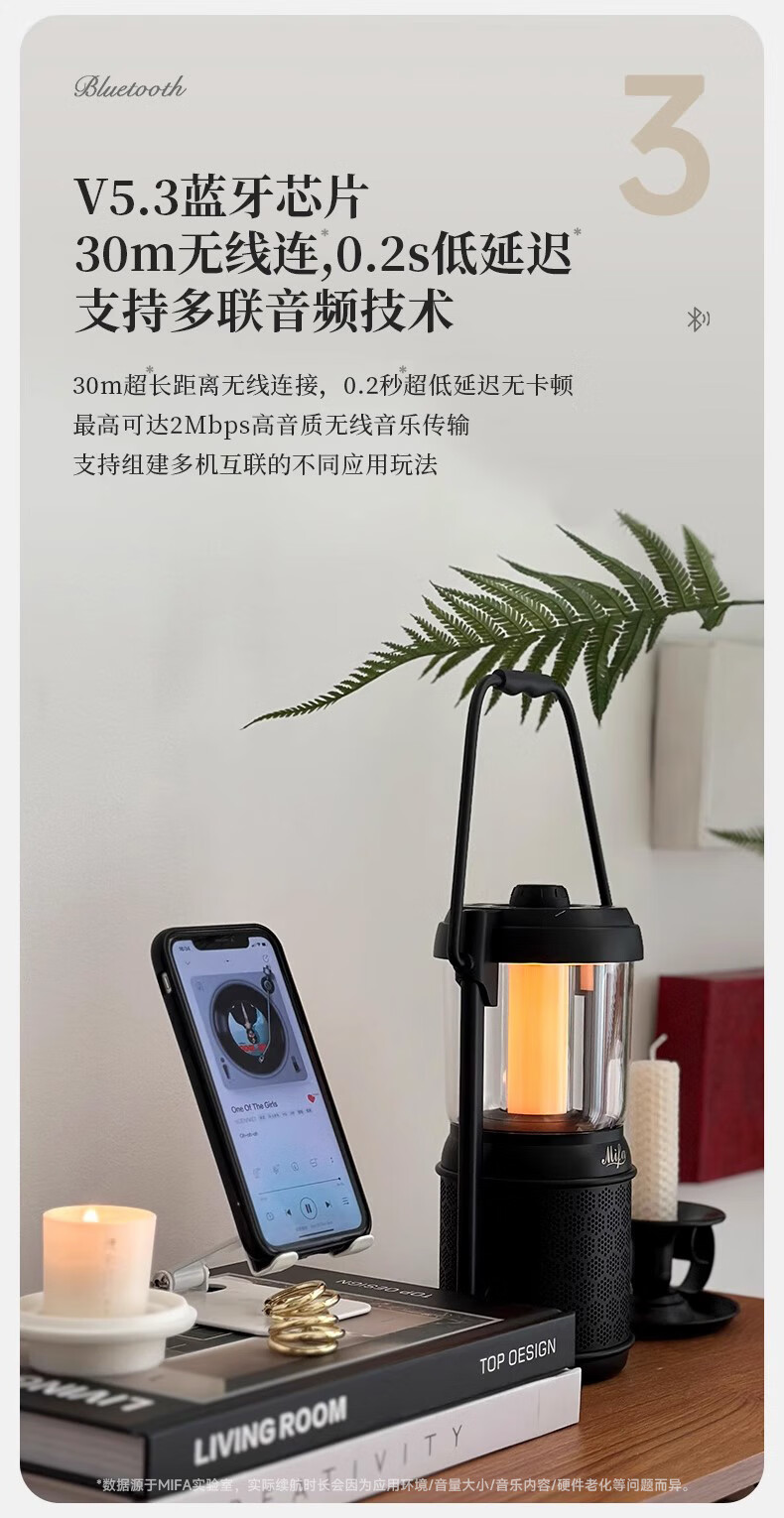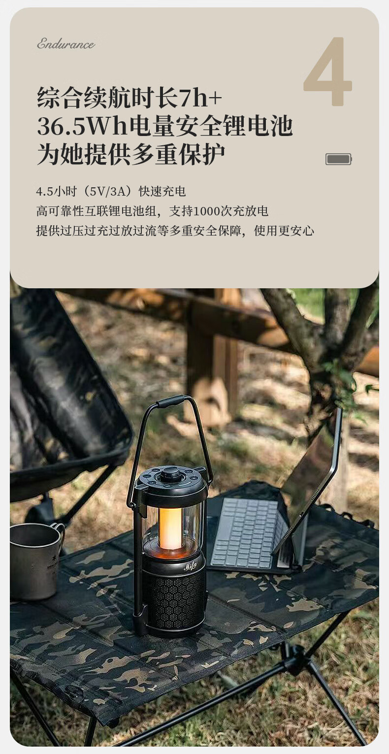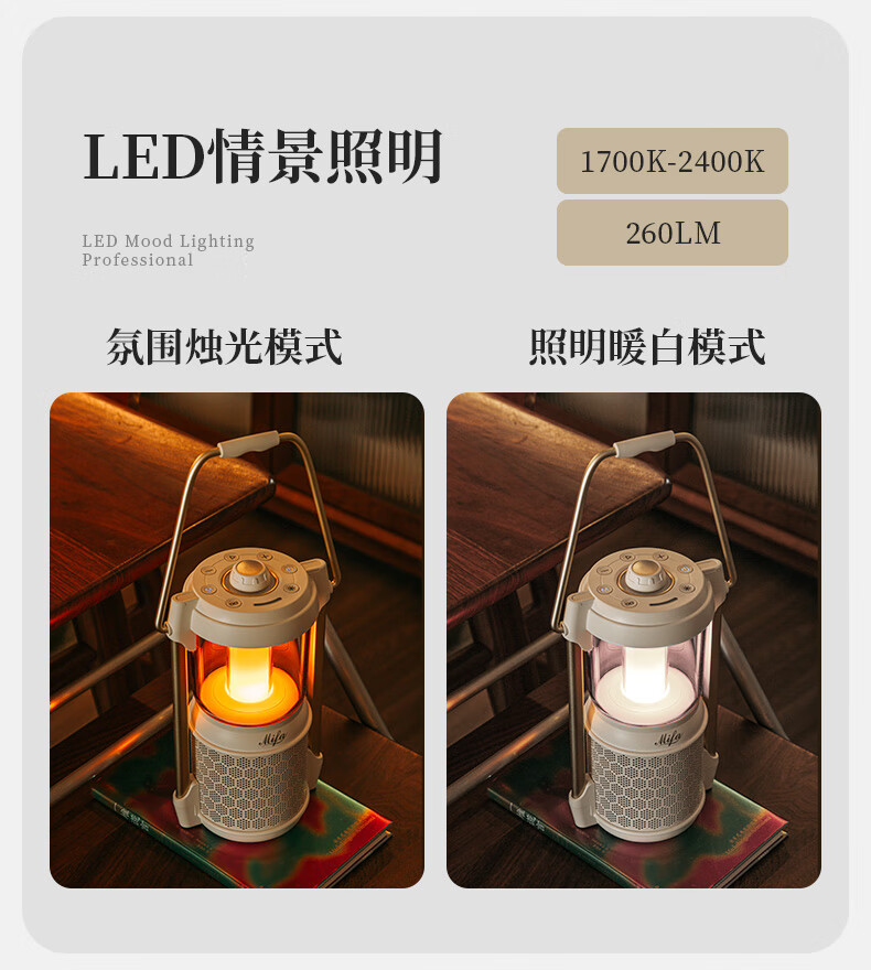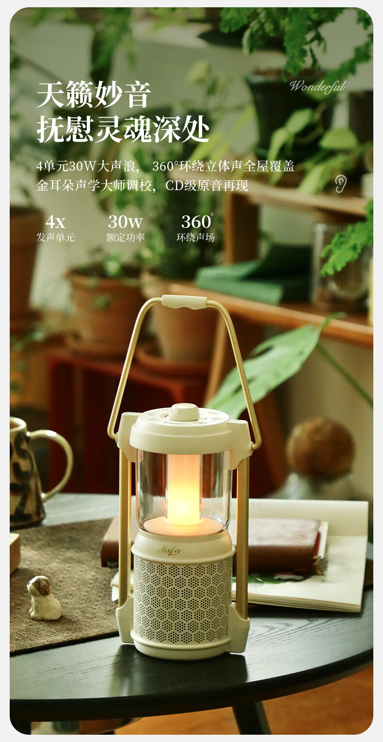 MIFA Lyra蓝牙音响露营灯无线家用氛围电脑桌面小音箱户外便携式插卡音响高颜值防水高音质环绕低音炮 深空玄黑【LYRA典藏版】