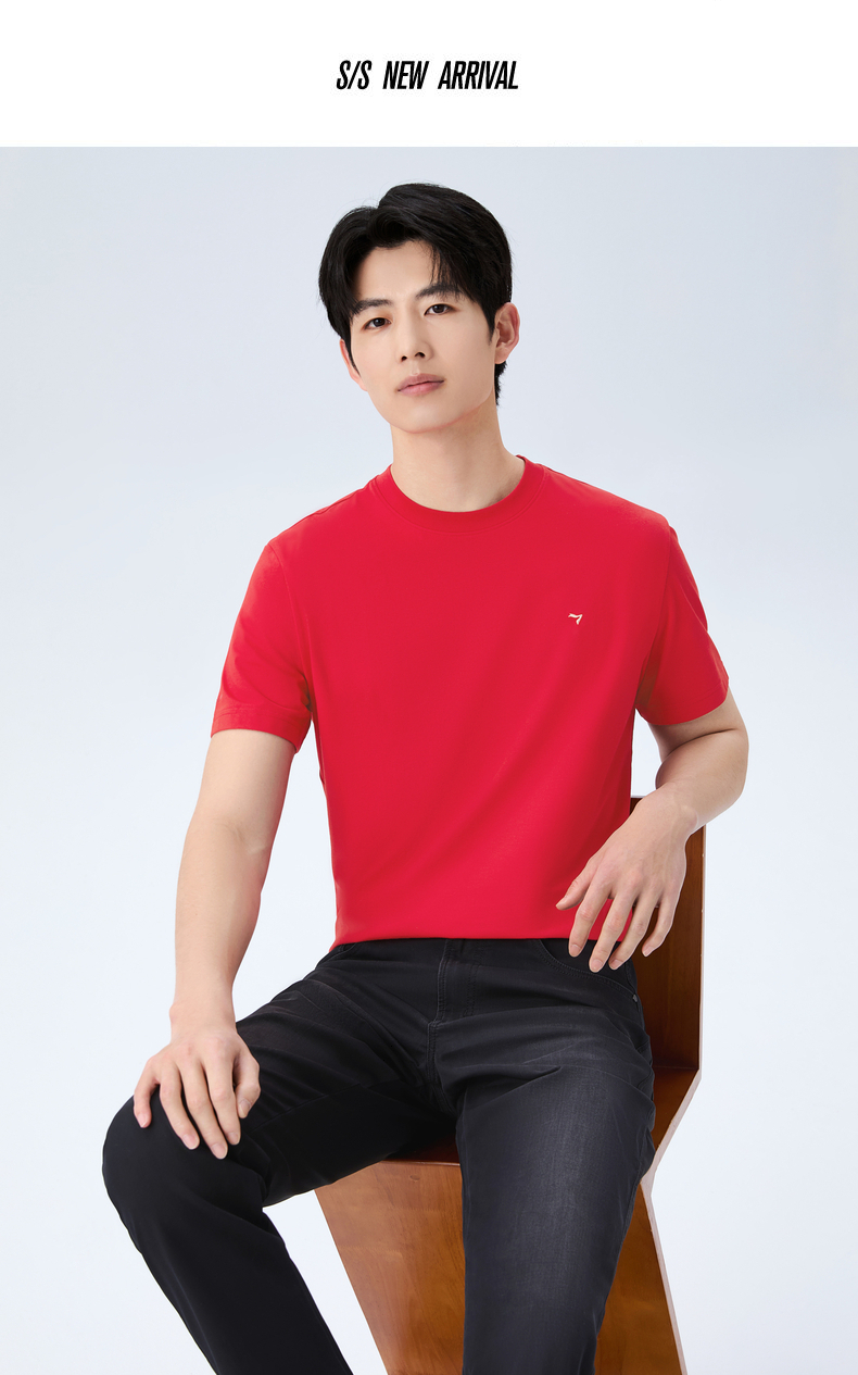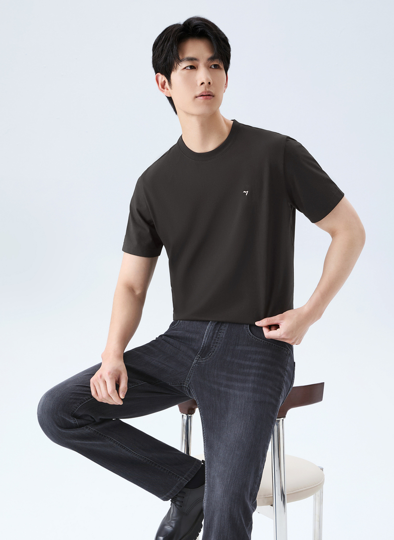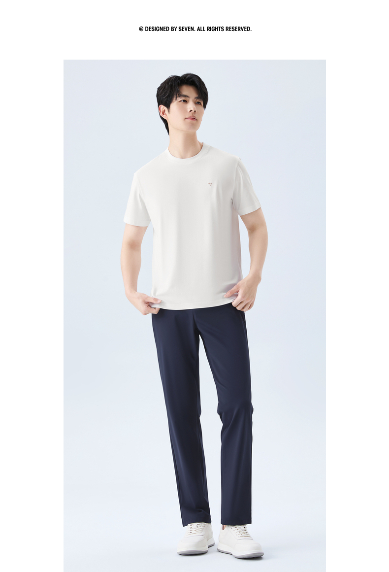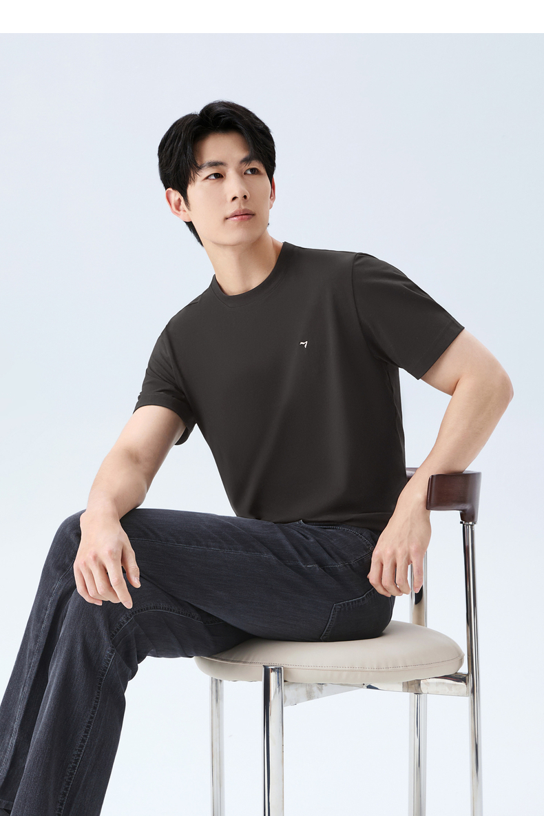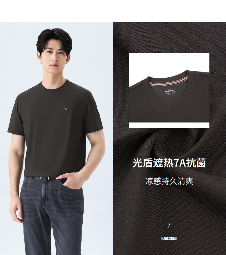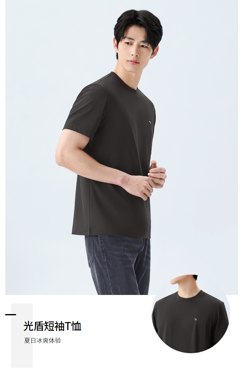 【光盾Sorona】柒牌男装2026夏季圆领新疆棉吸湿速干凉感短袖T恤 130T71930