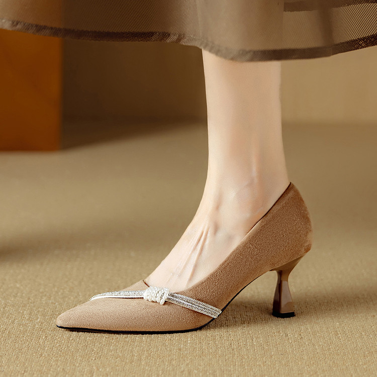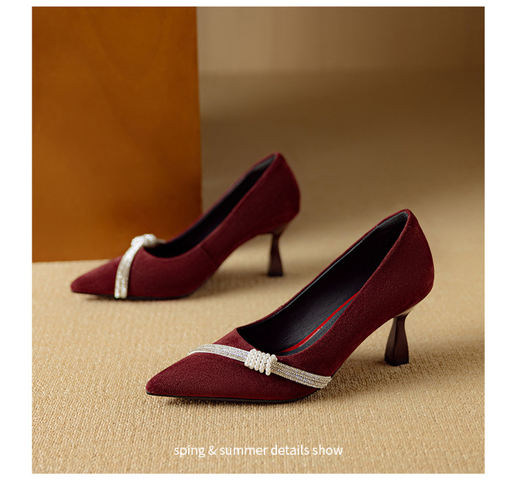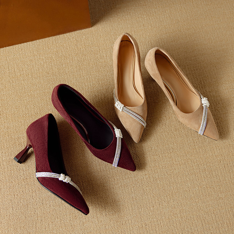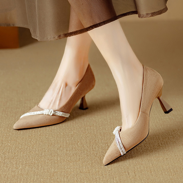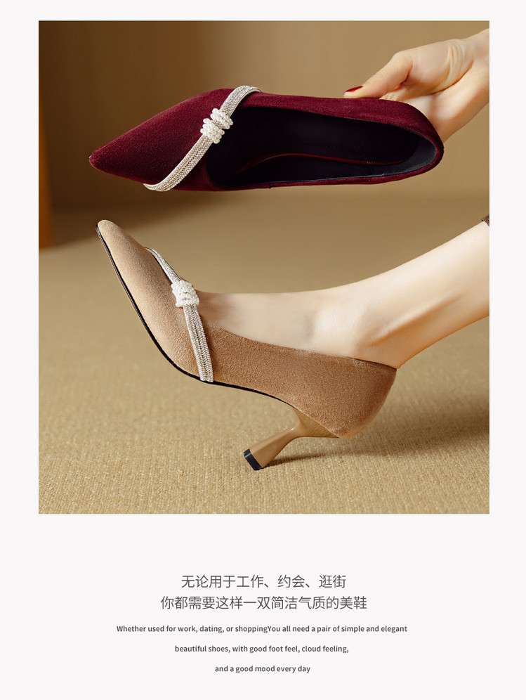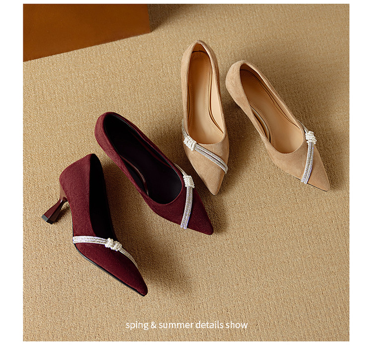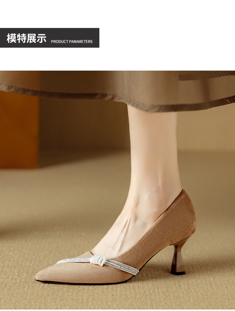 【预售5天】新款四季女鞋羊皮尖头气质通勤高跟鞋水钻细跟浅口单鞋DB&M6537