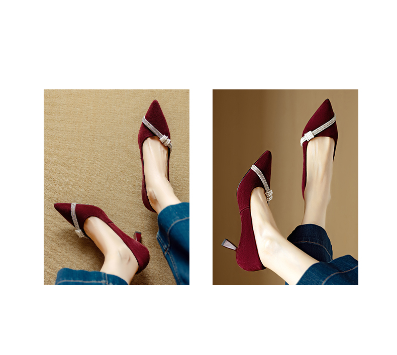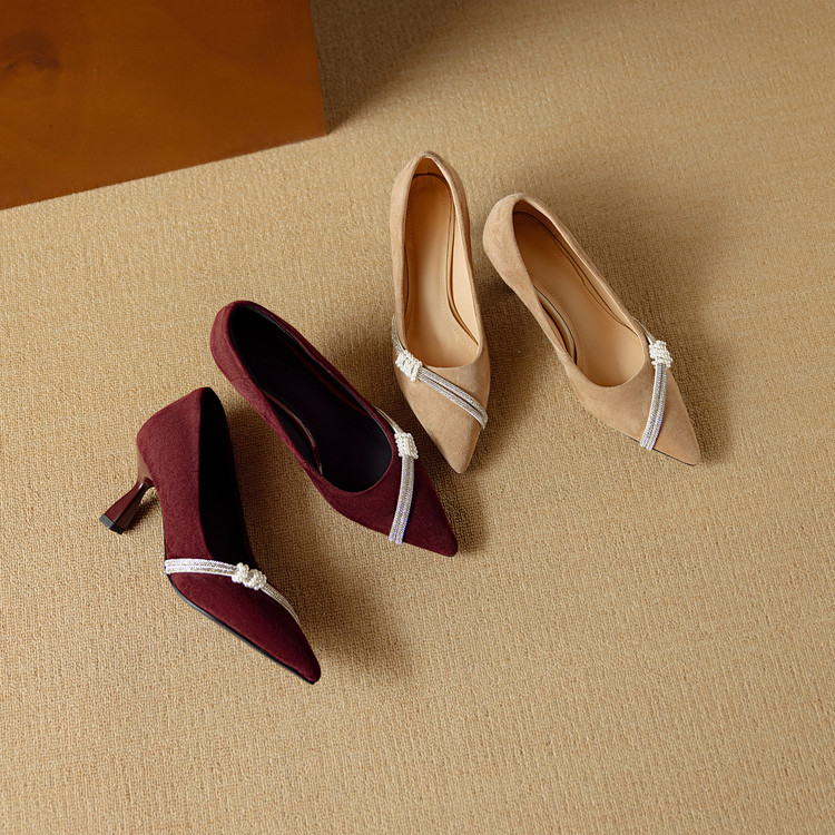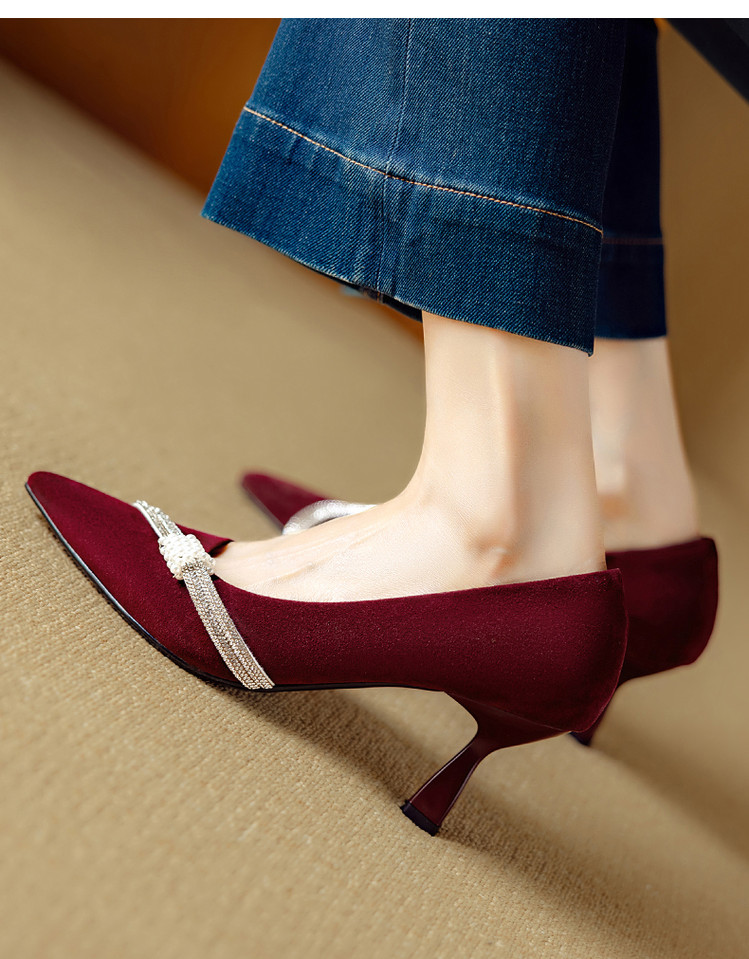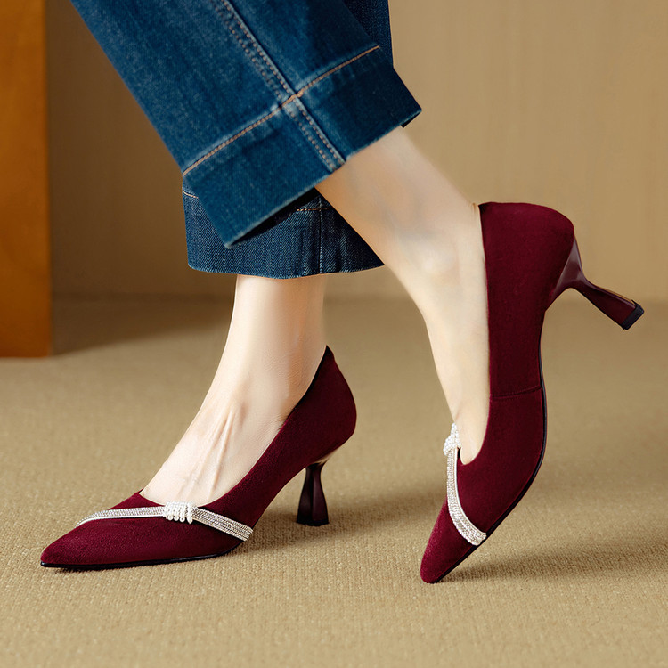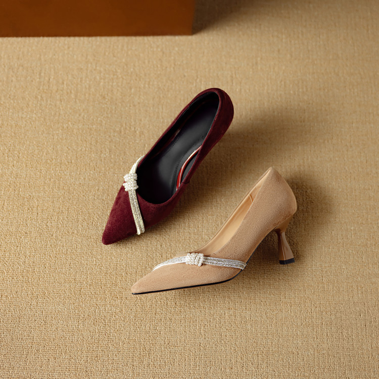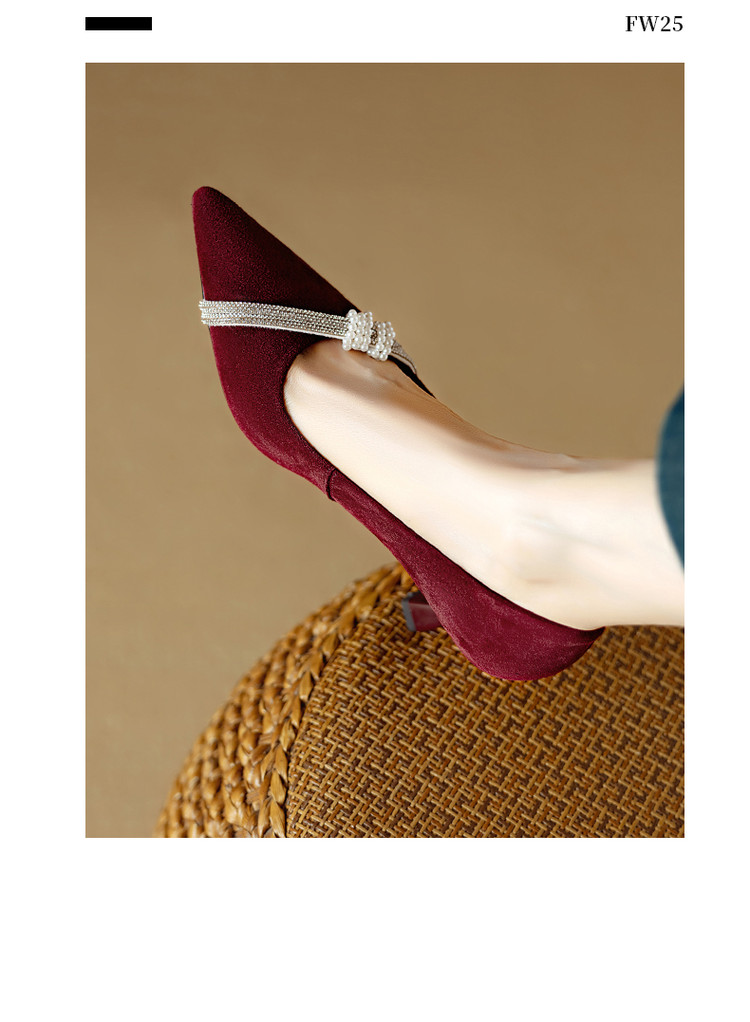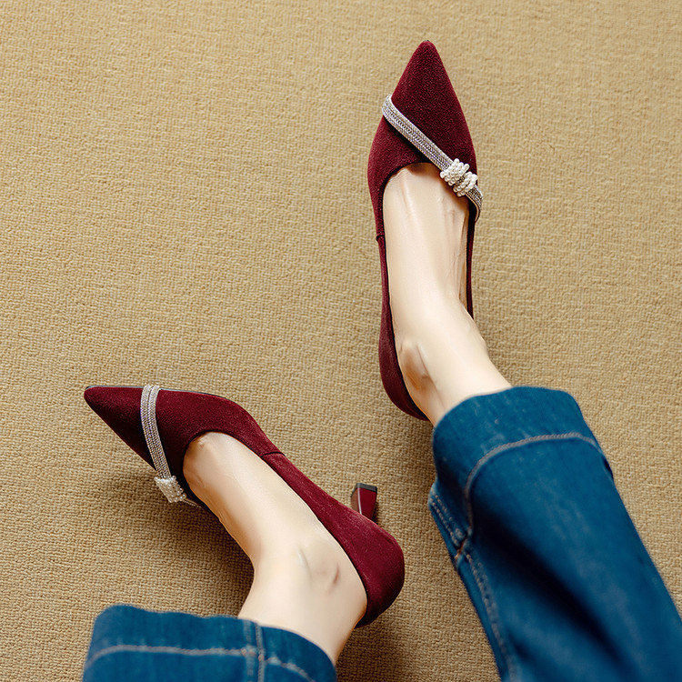 【预售5天】新款四季女鞋羊皮尖头气质通勤高跟鞋水钻细跟浅口单鞋DB&M6537