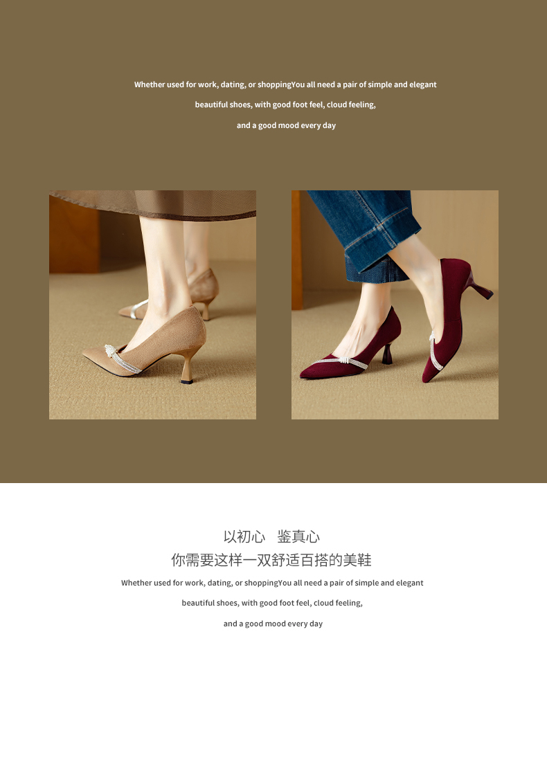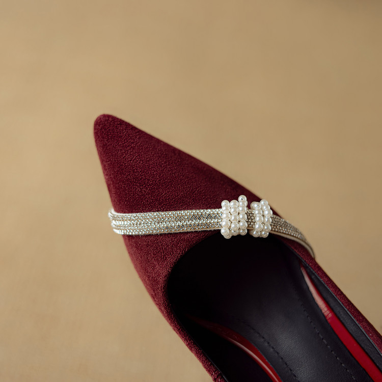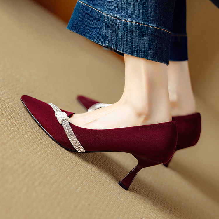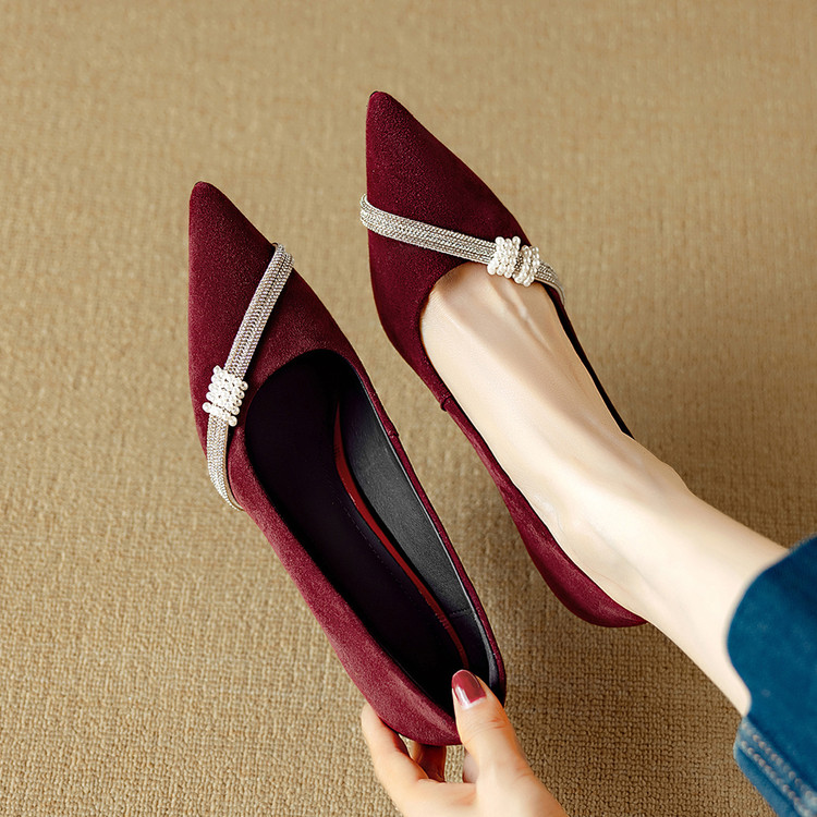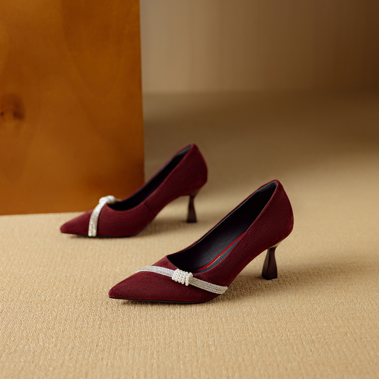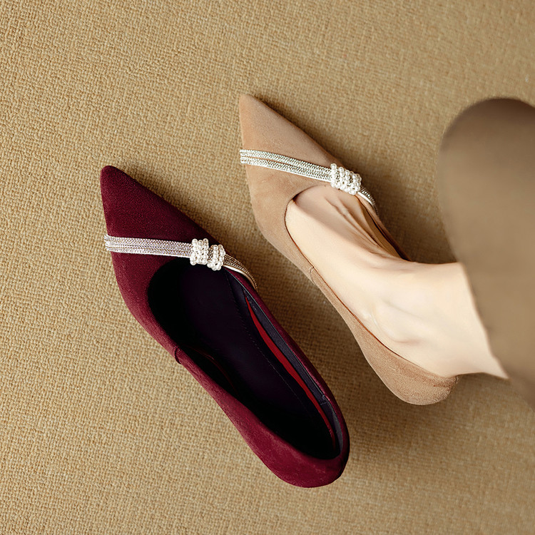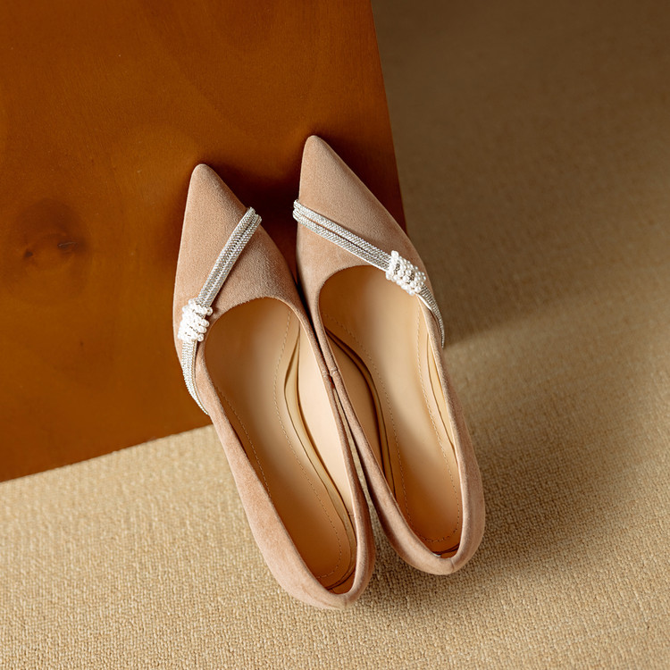 【预售5天】新款四季女鞋羊皮尖头气质通勤高跟鞋水钻细跟浅口单鞋DB&M6537