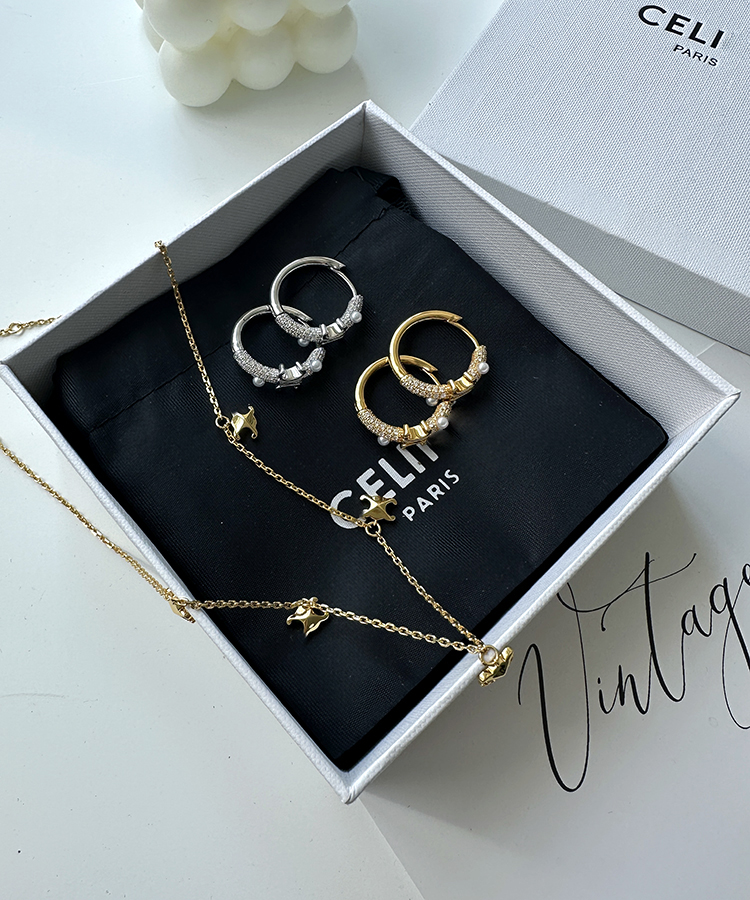现货 THS-无 赛琳家 黄铜合金点珠凯旋门饰品 项链 耳饰 3色 CU1307