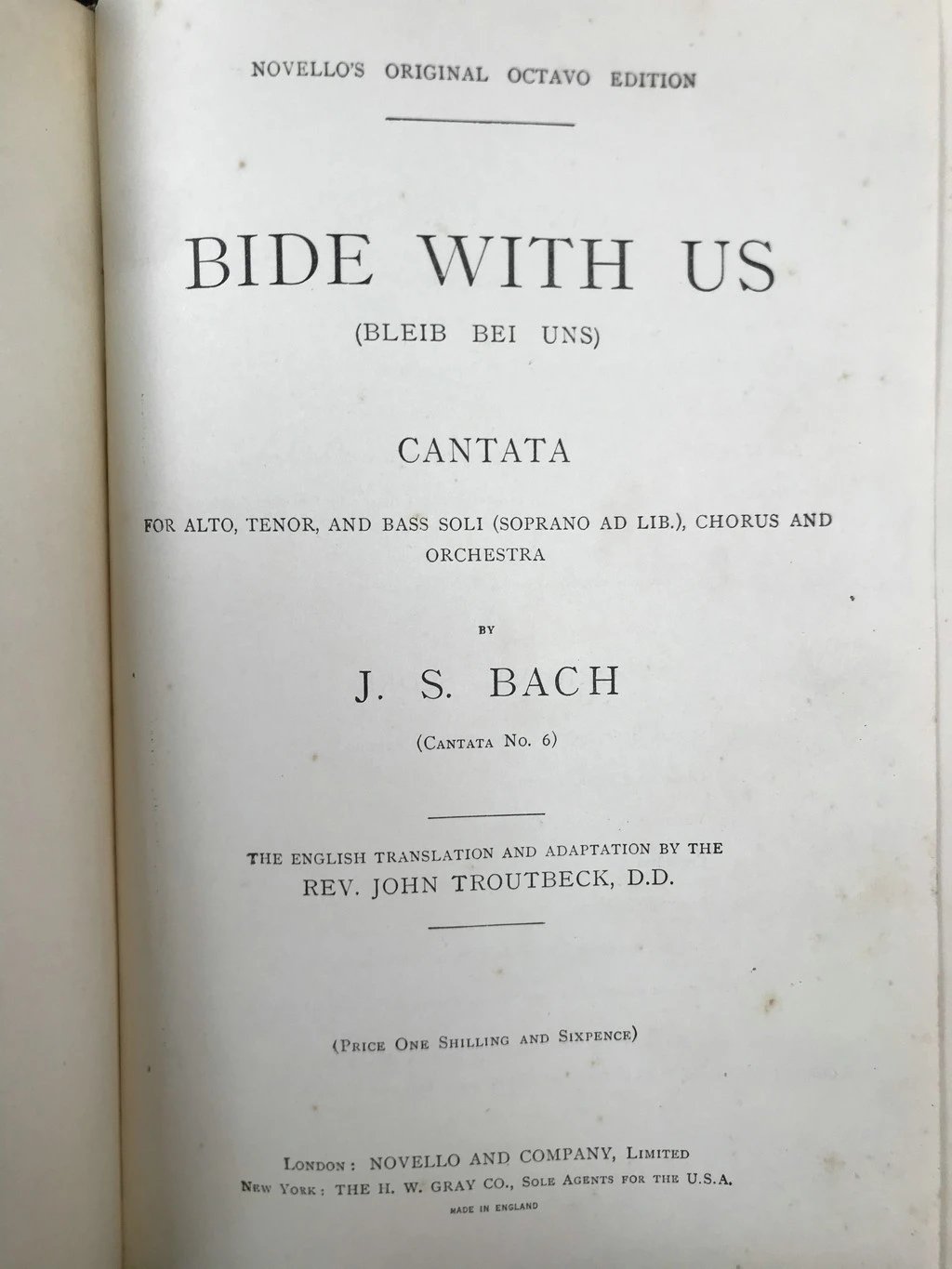 1929年 巴赫《与我们同在》康塔塔英译本乐谱 布脊精装16开