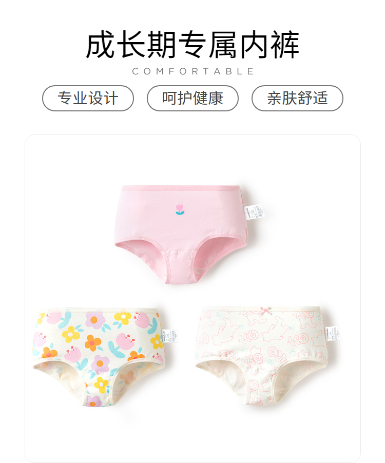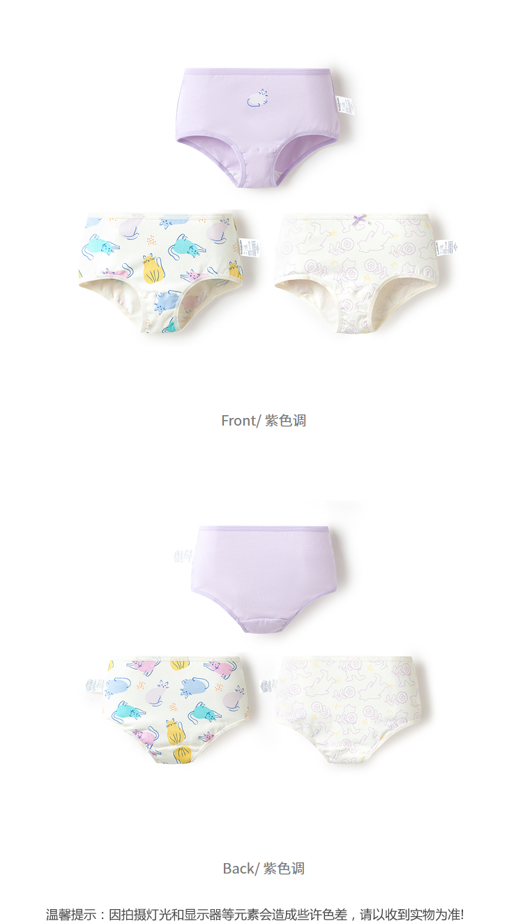 巴拉巴拉女童内裤平角儿童三角短裤小大童宝宝不夹PP抗菌萌三条装