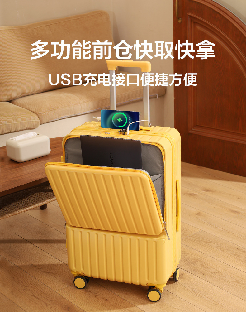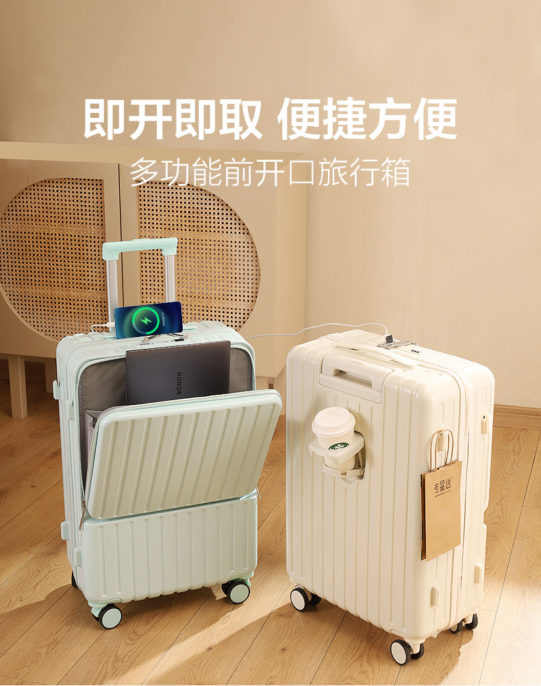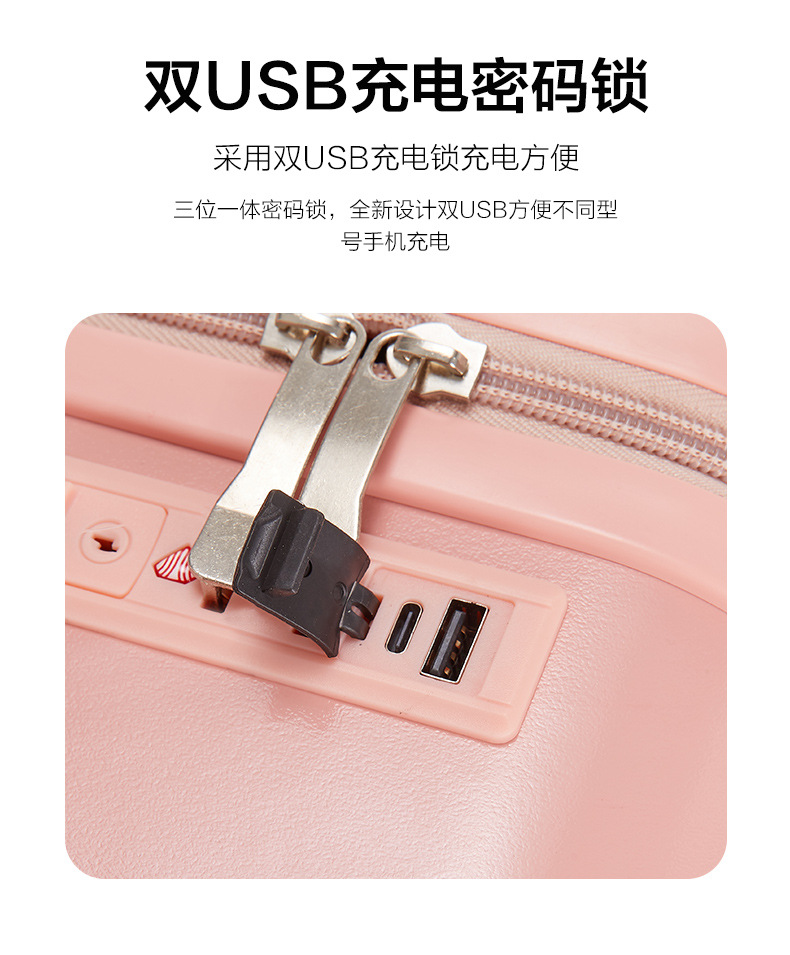【即开即取!多功能前开口旅行箱】前置开口行李箱女日韩风充电拉杆箱商务礼品密码旅行箱,三位一体密码锁,全新设计双USB方便不同型 号手机充电。ry