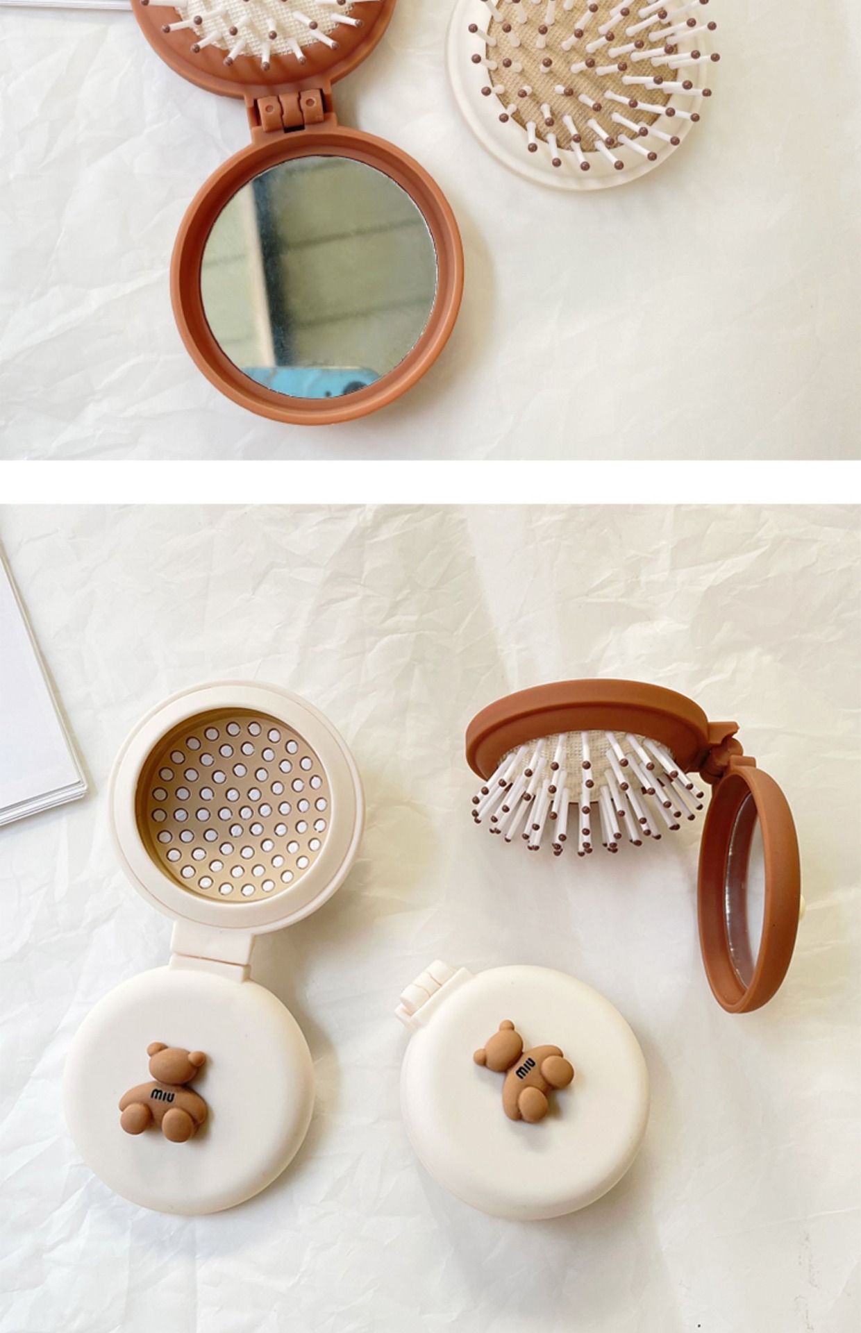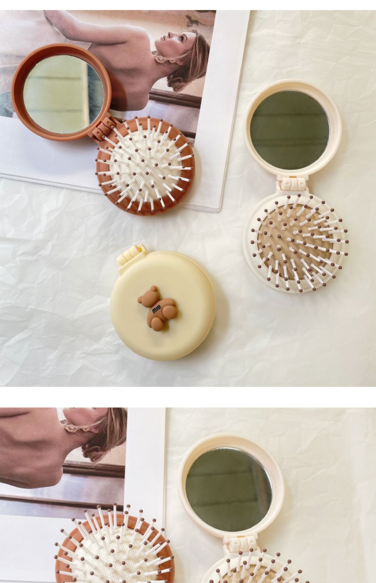 可爱小熊迷你小梳子镜子一体随身携带便携折叠气垫气囊梳儿童梳