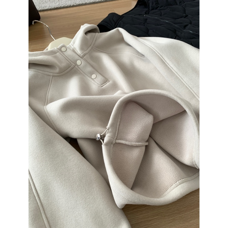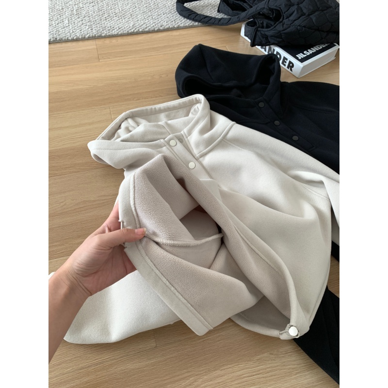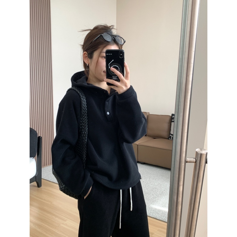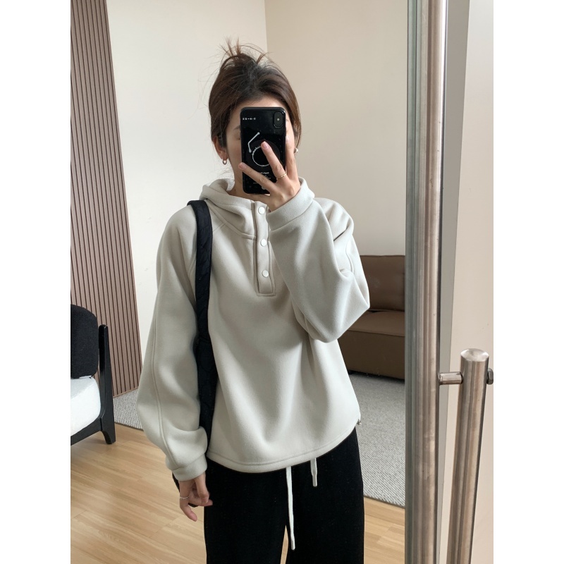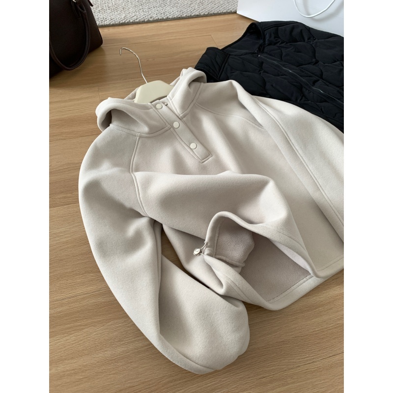 【篷派卫衣】秋冬加绒加厚棉质卫衣 松弛感插肩袖单排扣连帽绒衫