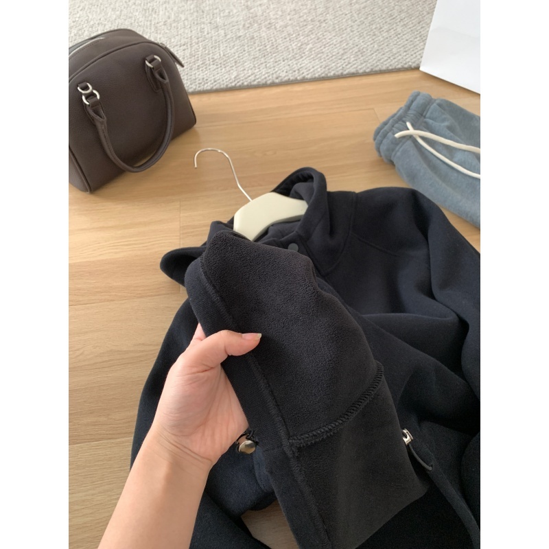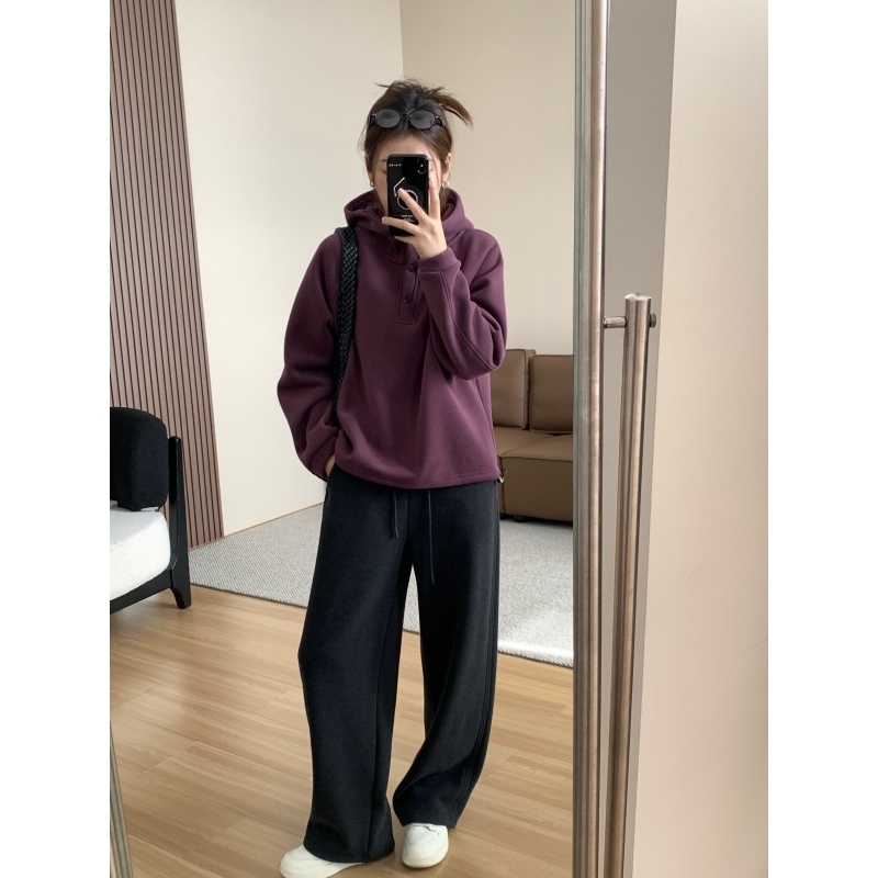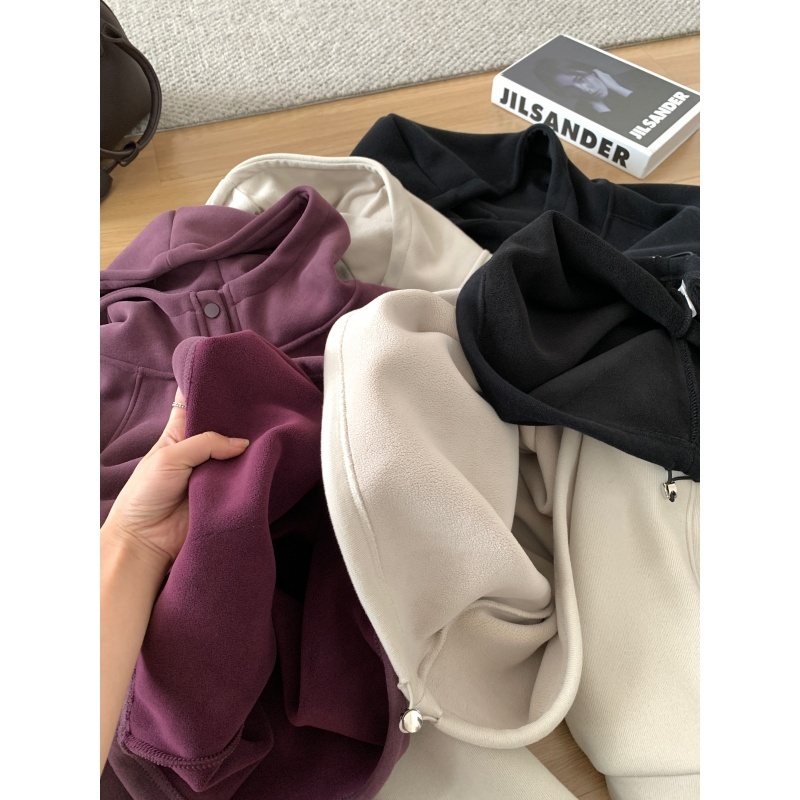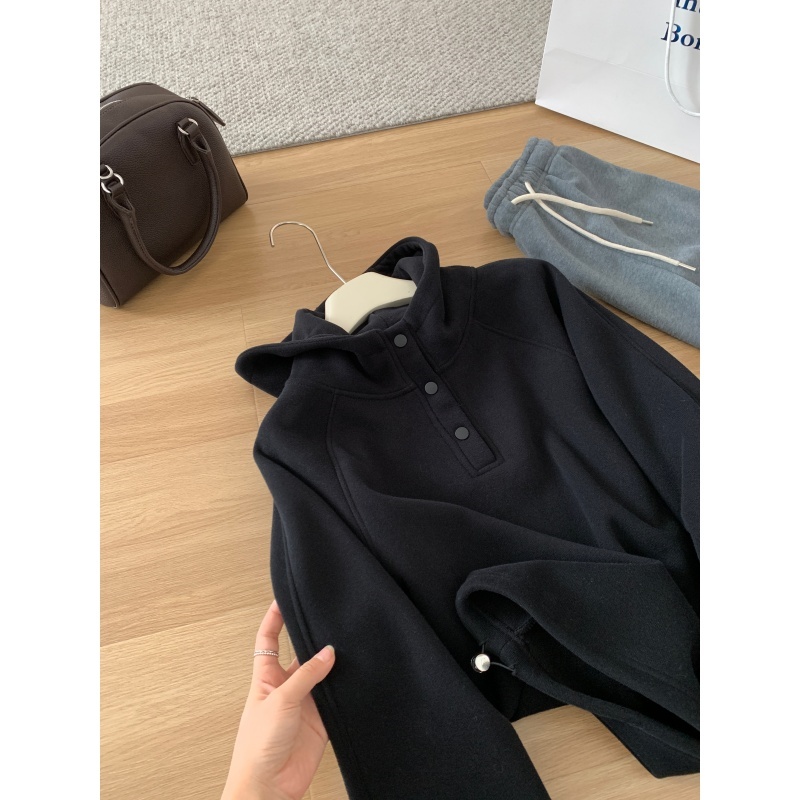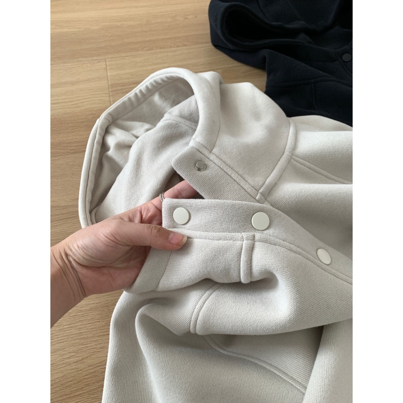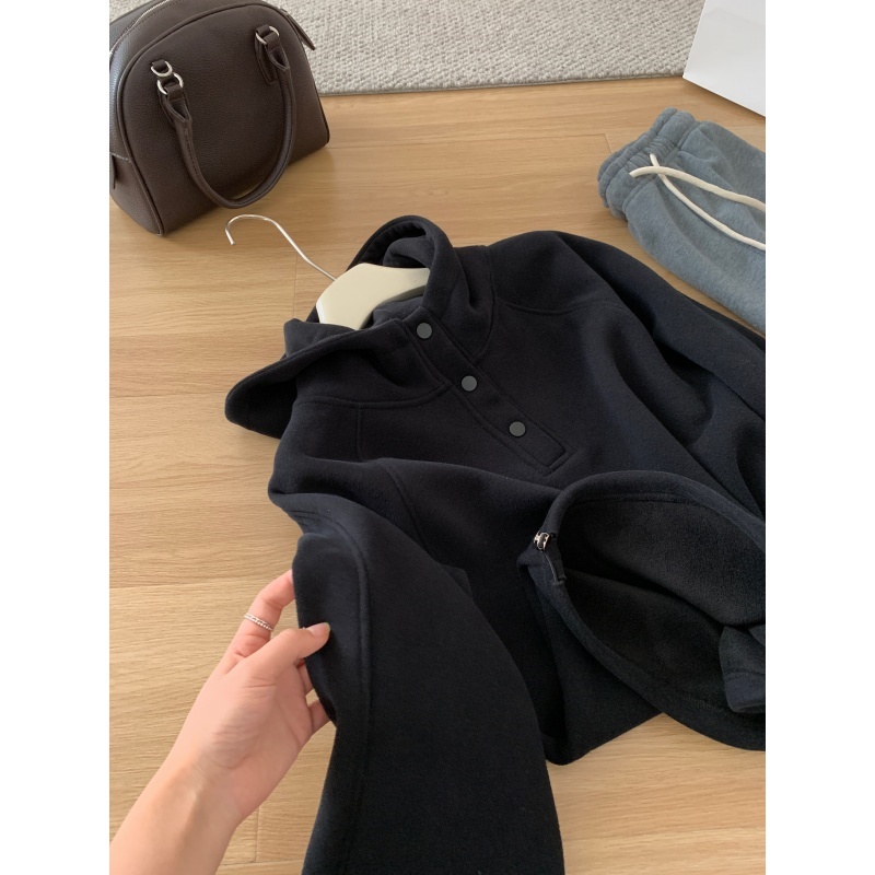 【篷派卫衣】秋冬加绒加厚棉质卫衣 松弛感插肩袖单排扣连帽绒衫