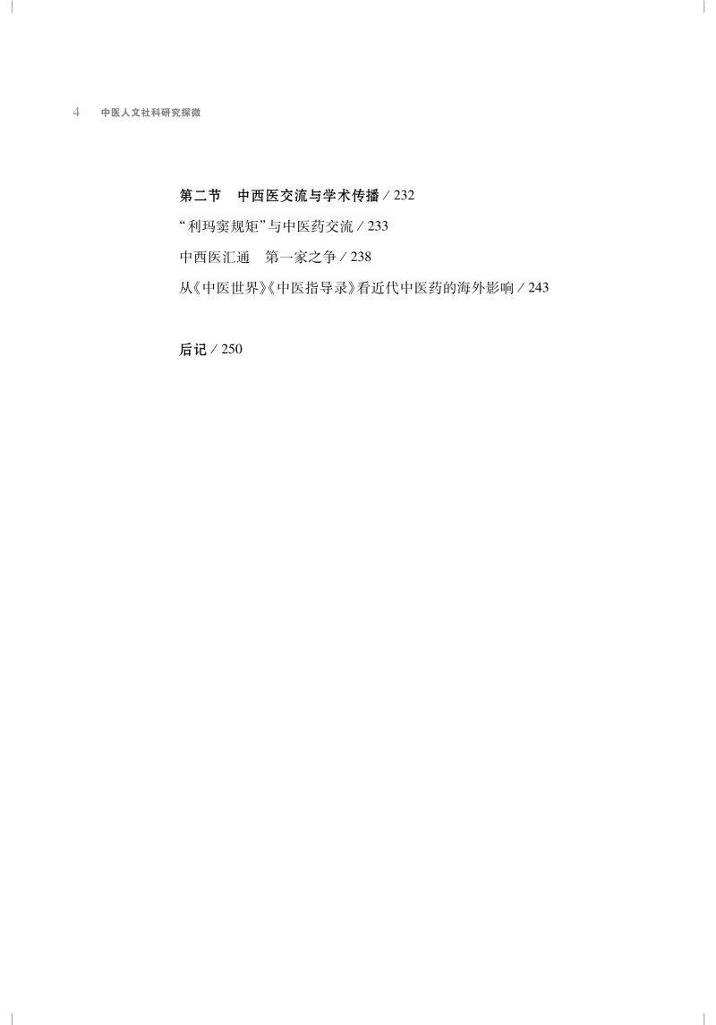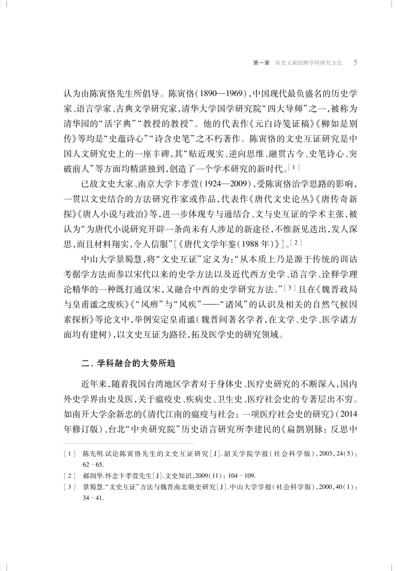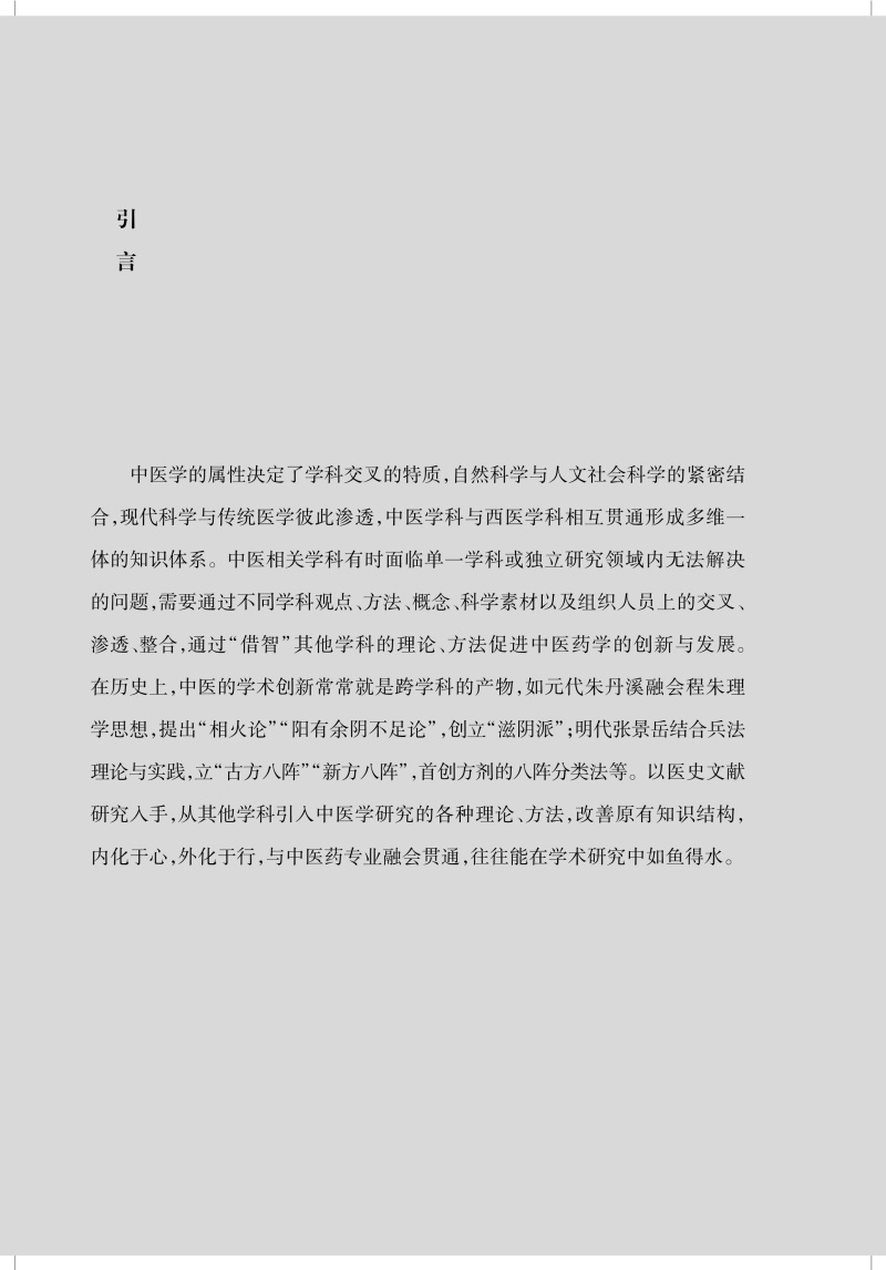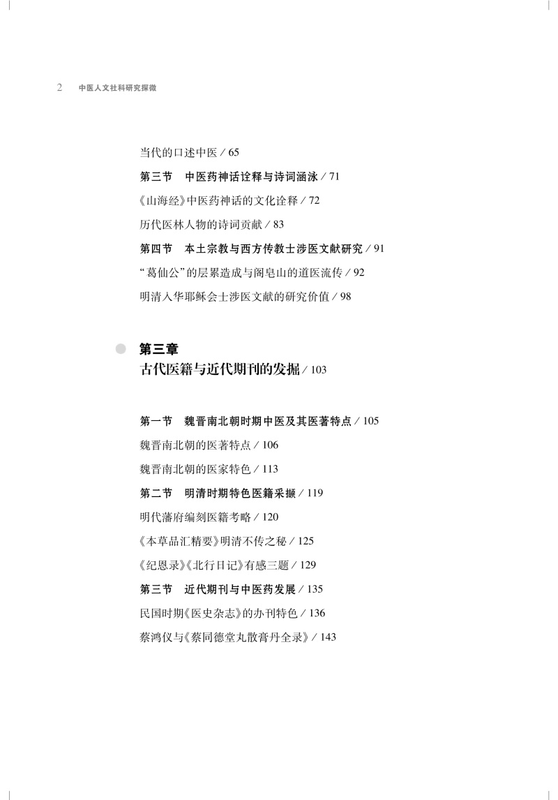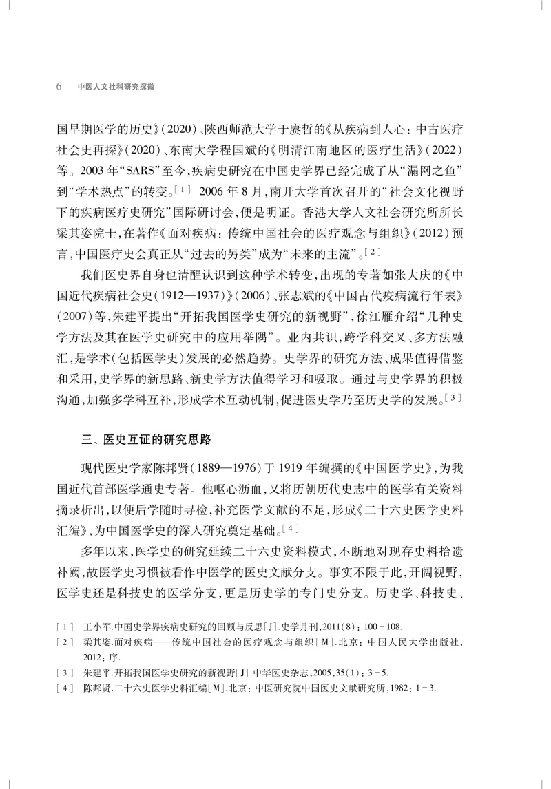 中医药学术研究需要全球化视野、多角度看待问题并提出解决方案,也就需要中医药学与自然科学、人文社会科学各学科间的交叉、渗透与整合。中医理论正是从人文的人、社会的人出发进行建构,富含哲学、人文和社会知识元素。现代中医承接传统中医基因,在人文社科方面蕴含丰富的内容,所需者是用当下的研究方法去进一步梳理和总结。 本书开篇即示在医史文献研究中如何运用跨学科思路促 进中医学创新与发展。本书体现了作者多年来对于中医药人文社科的研究思考与相关成果,从医史文献的跨学科研究方法、医学史料的拓展梳理与撷取、古代医籍与近代期刊的发掘、 名医名家医学思想探究与医事考察、医学源流考辨及其学术传播5 个方面展开讨论。每一方面,从多个不同角度具体展开论 述。综合历史学、文献学、古汉语、科技史和中医学等相关学科,并引入新史学的口述史学和计量史学、人类学中的田野调查和比较研究、医疗文化史、疫病社会史、方志学、日记信札档案等史料,采取跨学科、多途径的研究。文献资料扎实,史论结合,以点带面,贯珠成串,为中医药人文社科的研究拓展了思路。本书可供中医院校与研究机构的师生、人文社科从事中医药相关的研究人员,尤其是从事人文社科研究的中医药科研人员,以及广大中医文化爱好者。