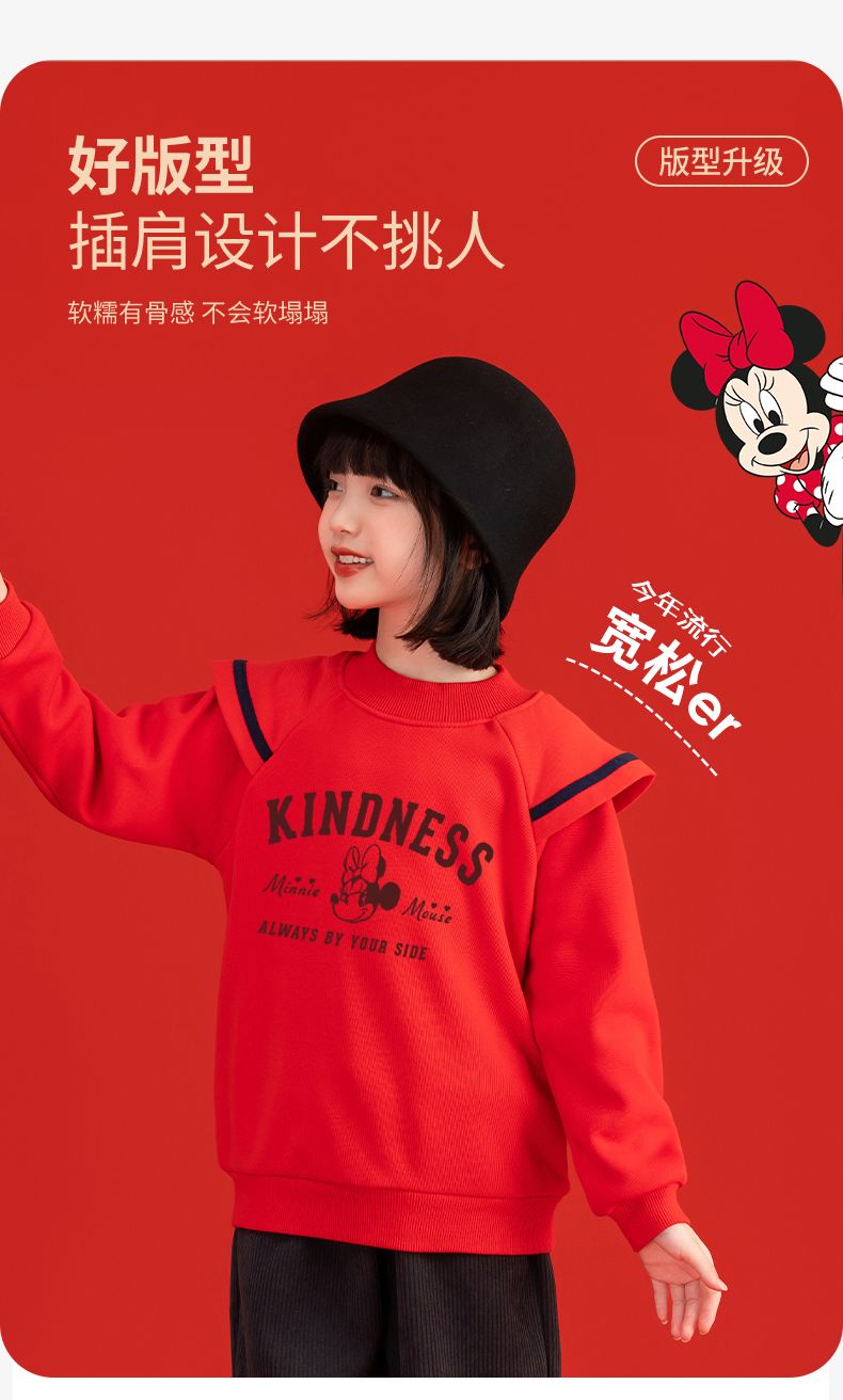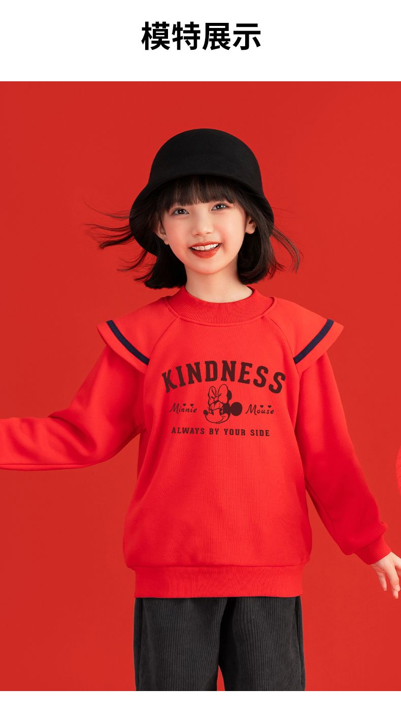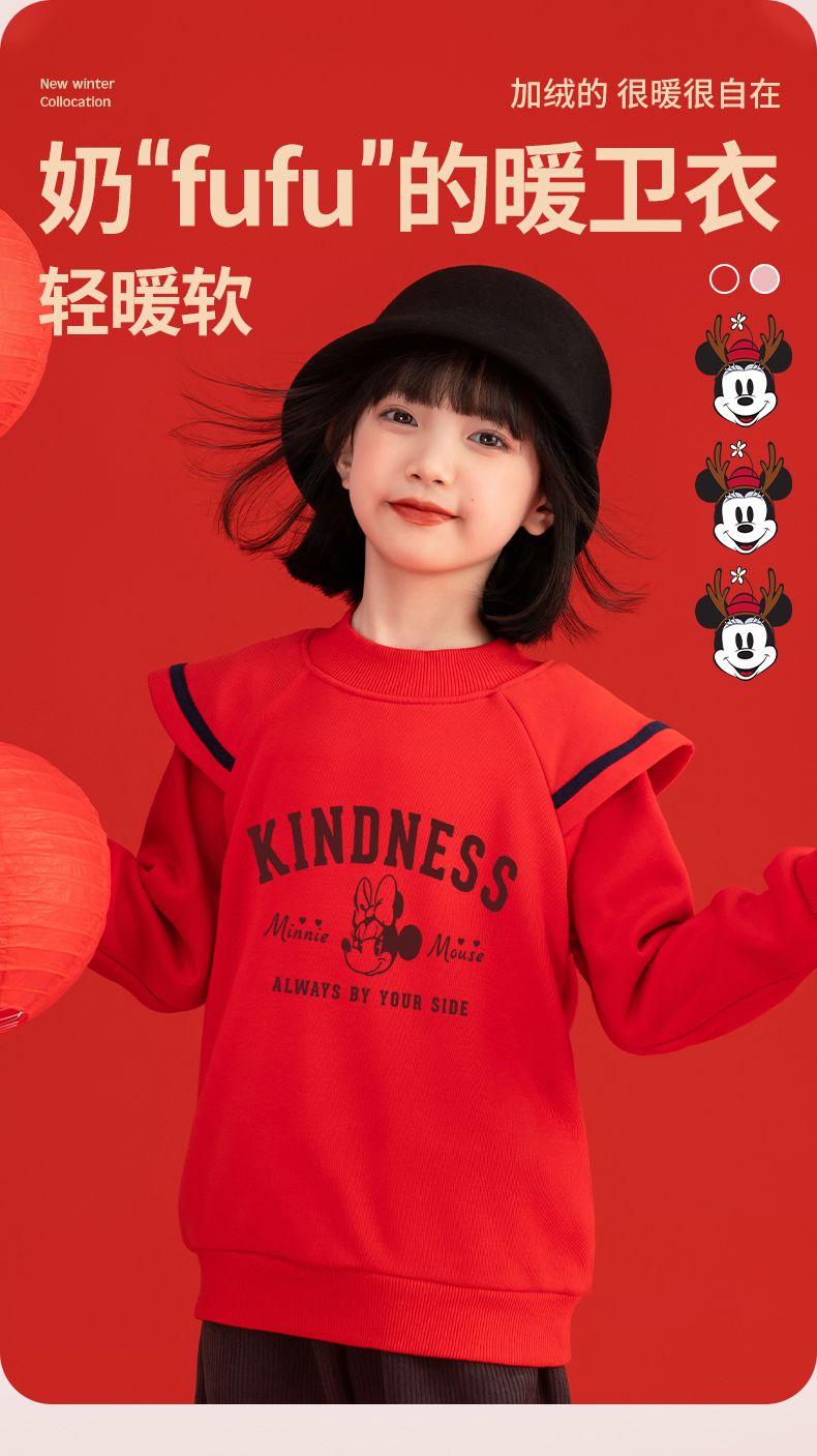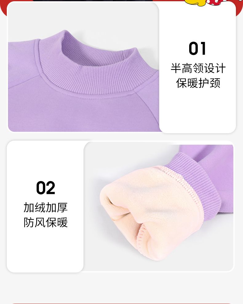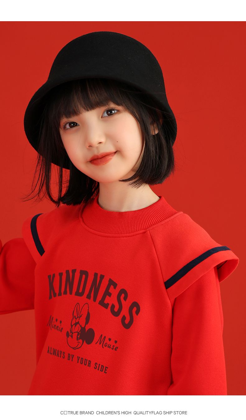 迪士尼女童加绒卫衣冬季新款洋气儿童冬装打底衫加厚外穿学院风潮