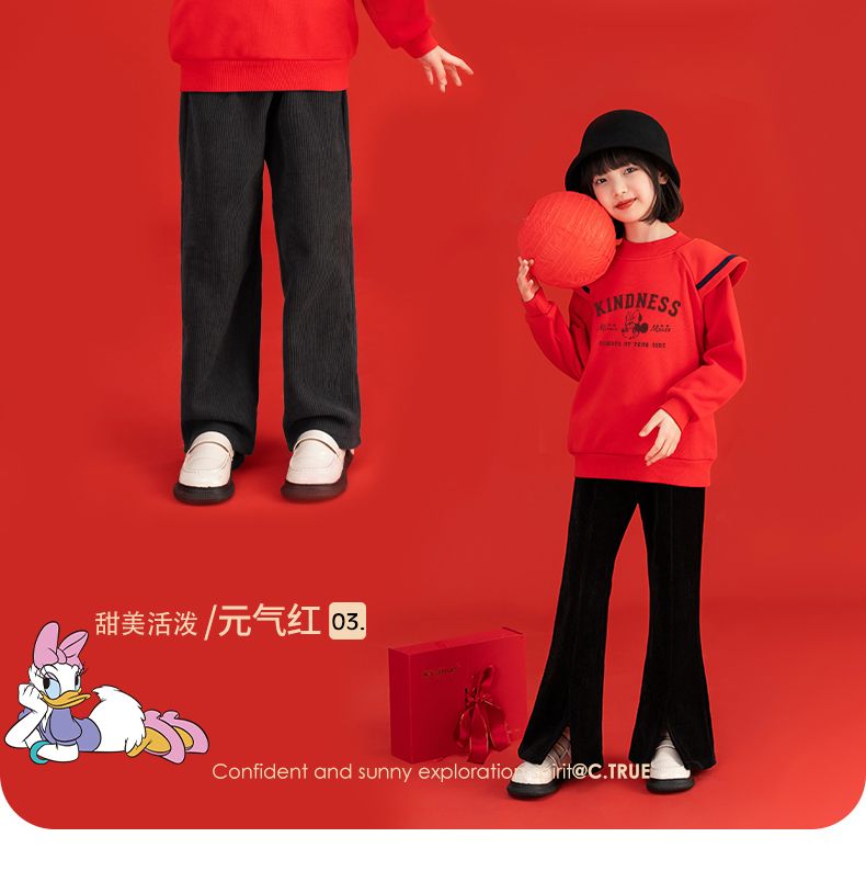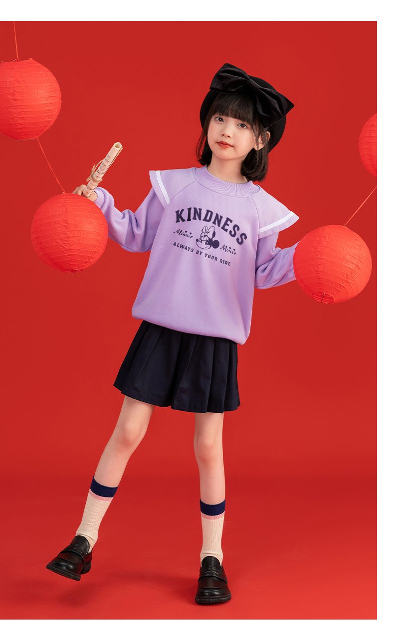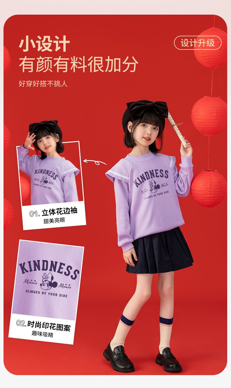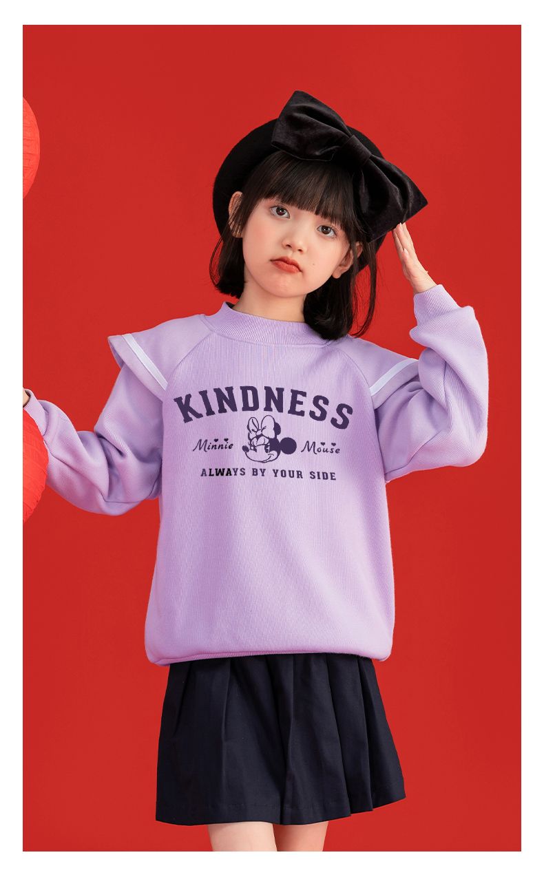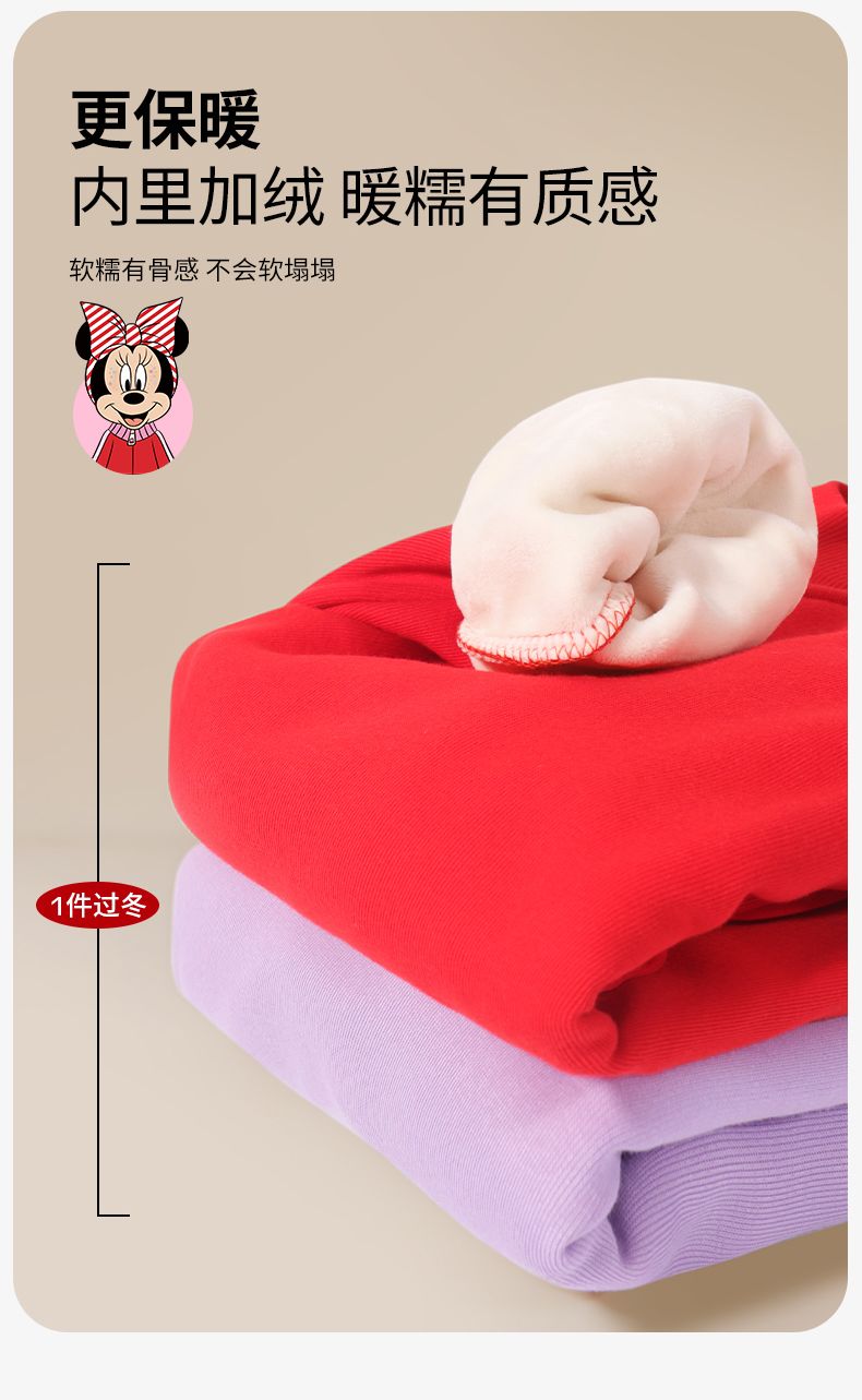 迪士尼女童加绒卫衣冬季新款洋气儿童冬装打底衫加厚外穿学院风潮