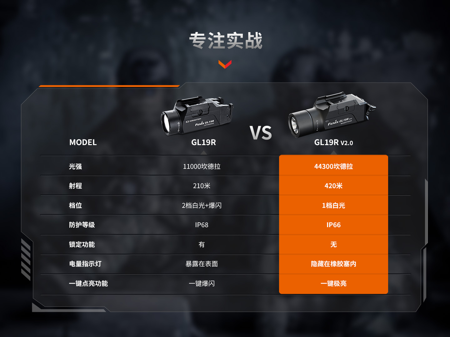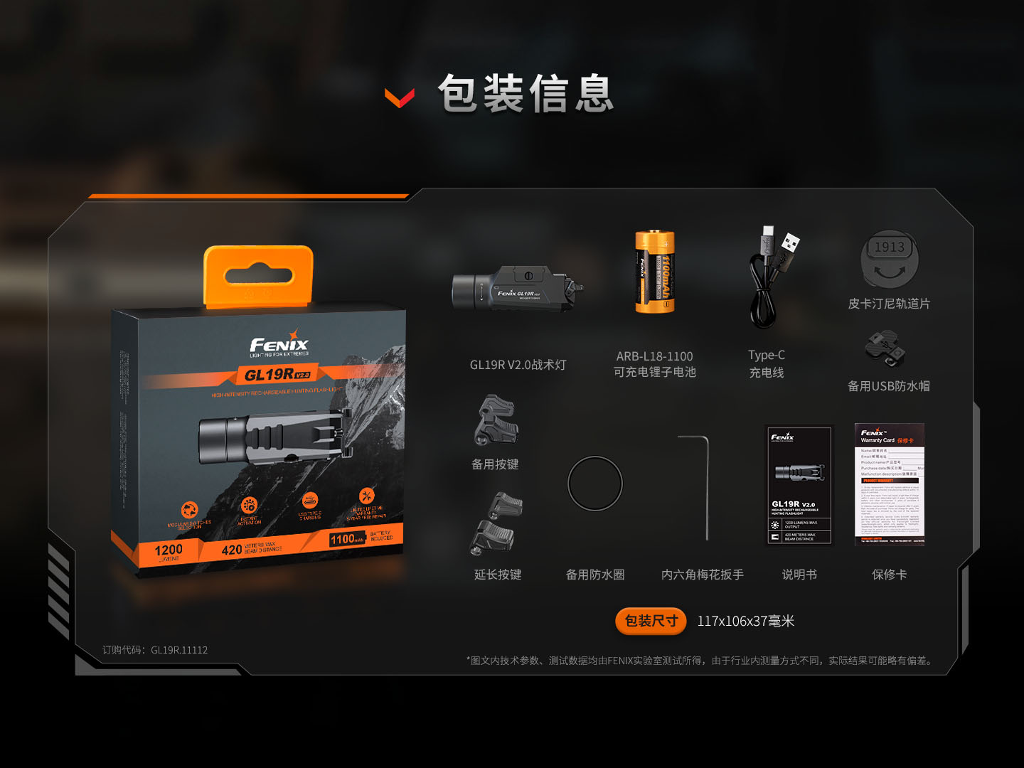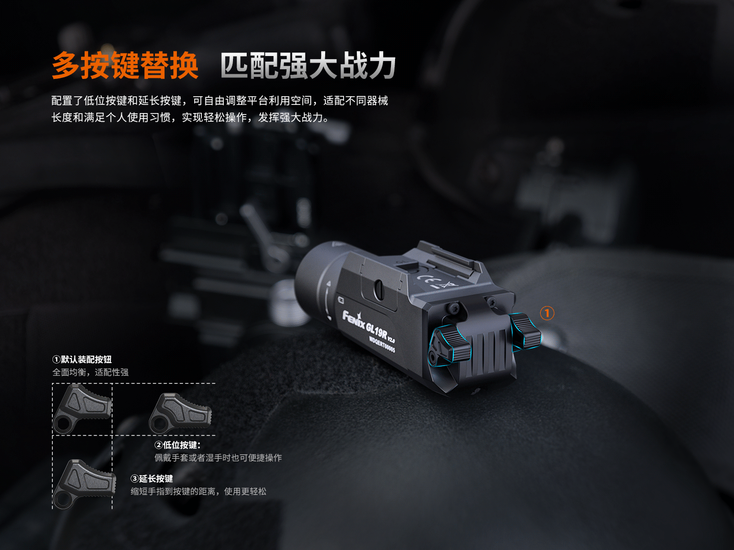 Fenix菲尼克斯GL19R V2.0下挂手电筒高亮充电Glock/1913导轨快拆战术灯