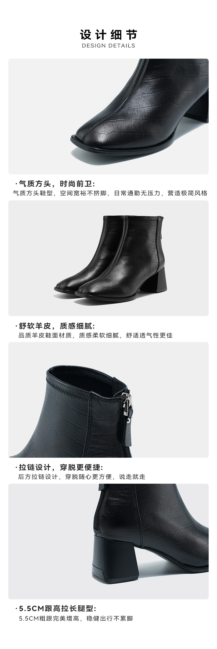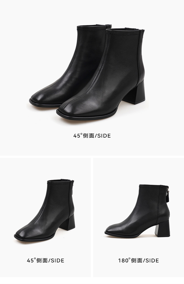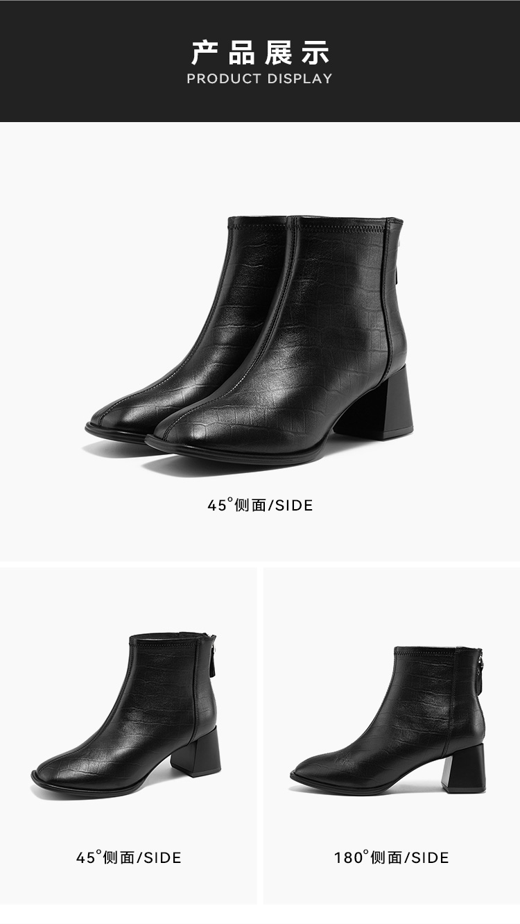【绒里可选】星期六气质方头舒适粗高跟短靴SS34116563/SS3411856B