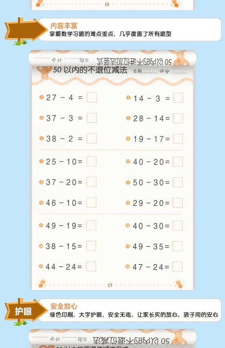 口算题卡升级版 50以内的加减法 儿园学前班幼儿数学教材 幼升小入学准备 3-4-5-6岁儿童图书幼儿学数学