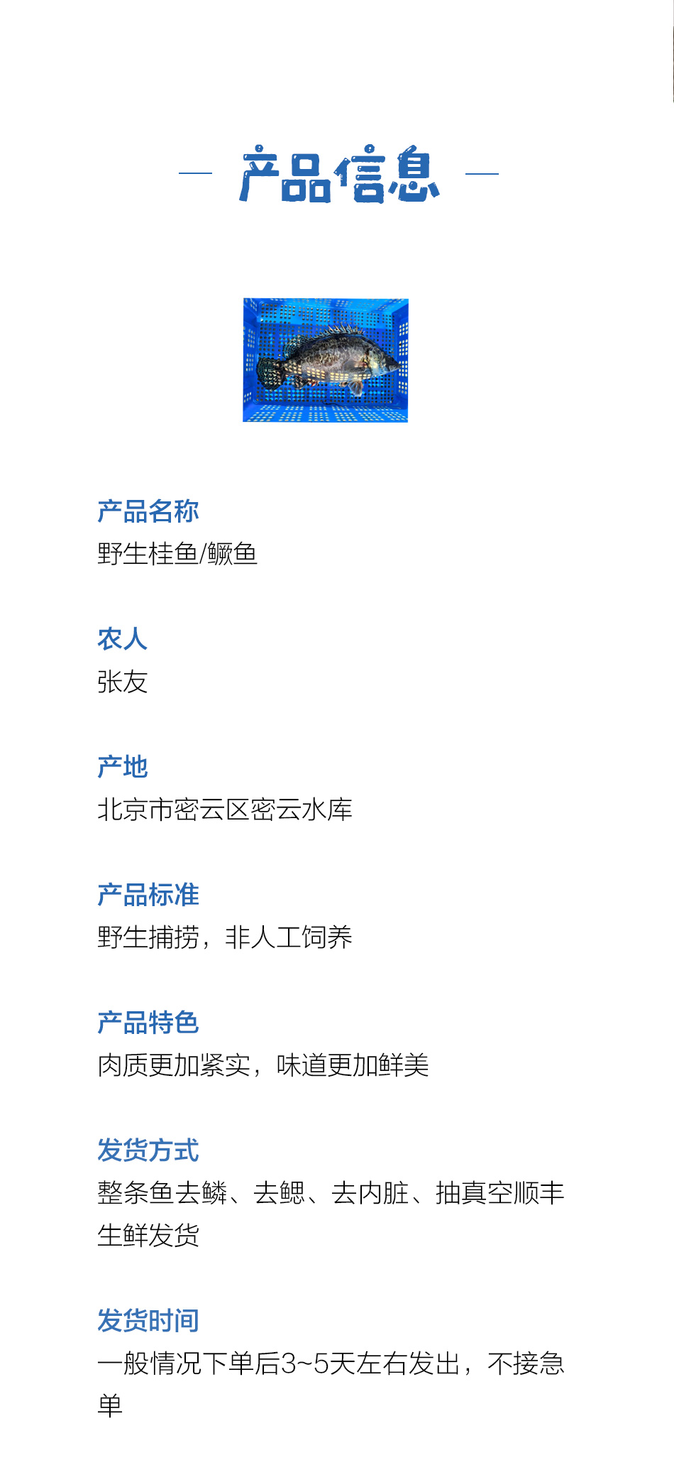 【野生桂鱼/鳜鱼】密云水库野生鱼(基地直发-顺丰包邮)| 多种规格冷鲜发货,来自北京密云水库(北京重要饮用水源),生产者:张友【合作生产,公平贸易】