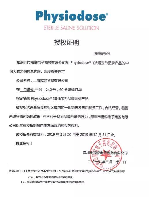 本次返场开团保证正品,下方是法适宝中国区总代给月华的授权书,妈妈们可以安心购买。孩子和家人动不动感冒流鼻涕的,我建议是可以考虑多备几盒,本次返场开团的法适宝海盐水保质期都是到2021年11月,所以大家可以放心囤一些!