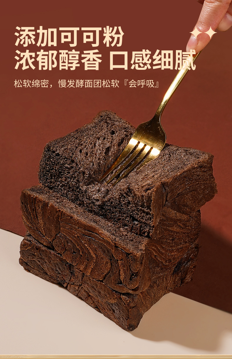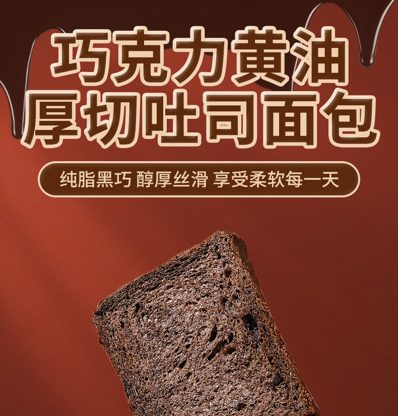 【享受浓郁巧克力!厚切吐司面包】纯脂黑巧和黄油, 面包鲜嫩松软质地软绵细腻,点心夜宵下午茶早餐独立包装