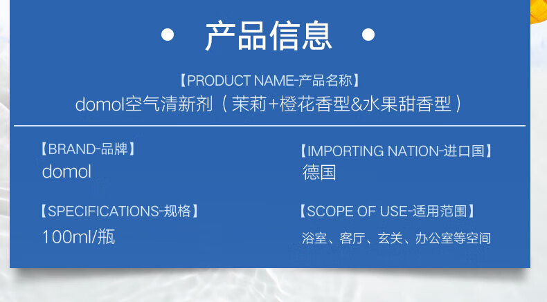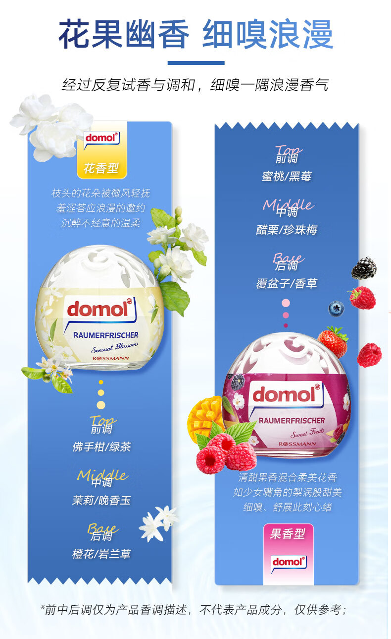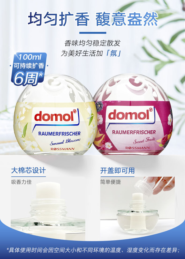 【中欧班列精选2盒】德国domol空气清新剂 原装进口花香果香持久芳香剂去异味室内香氛摆件 100ml/瓶 BL