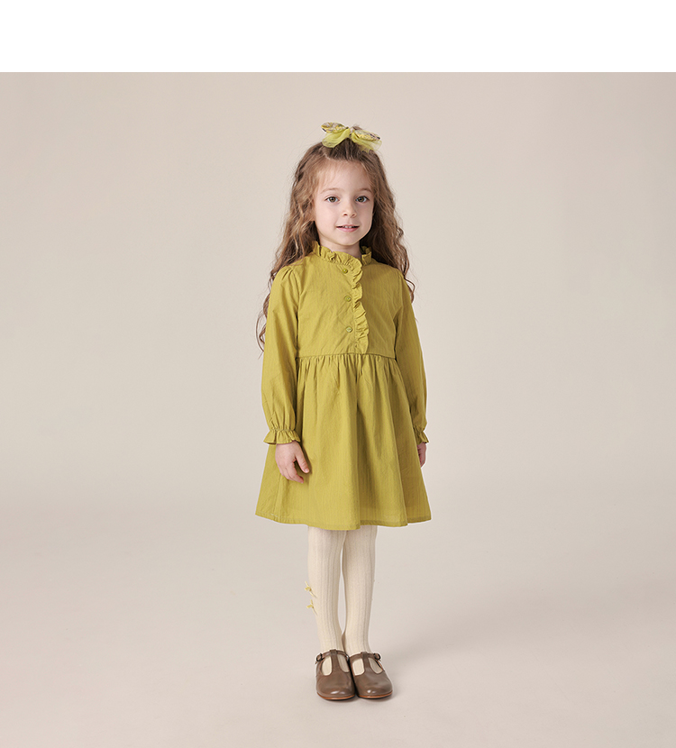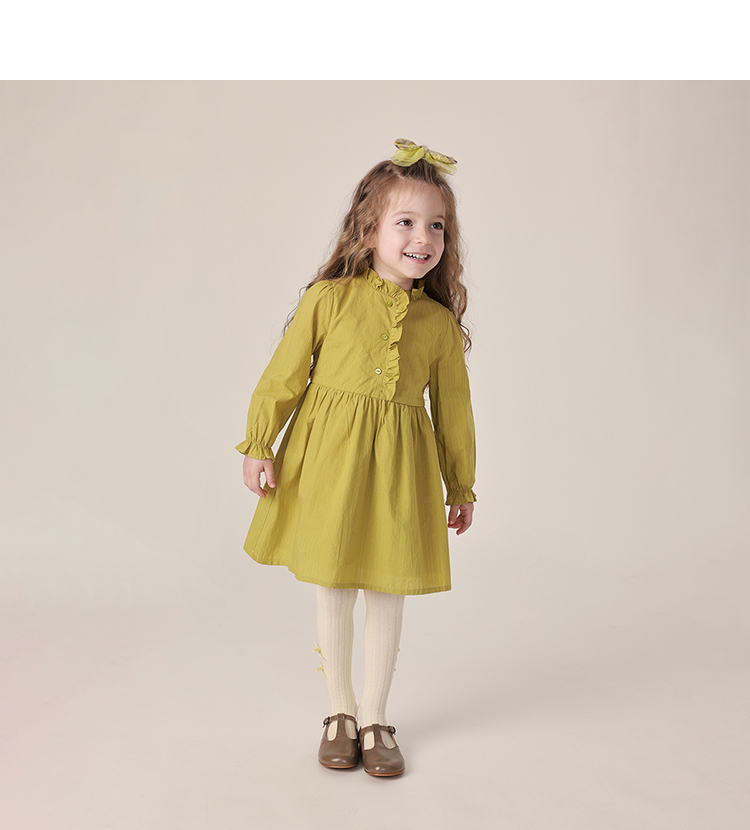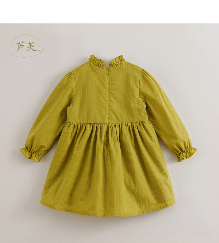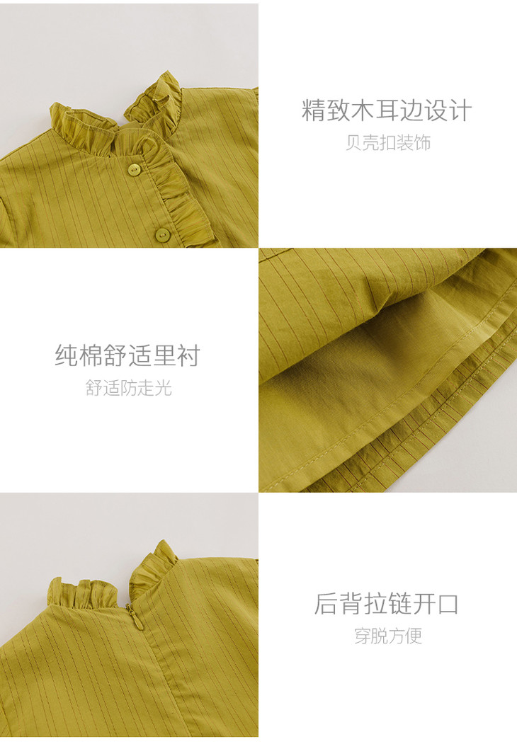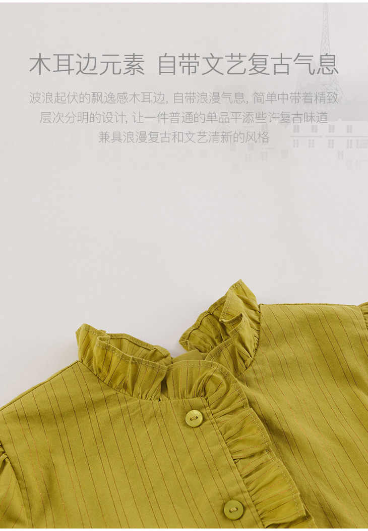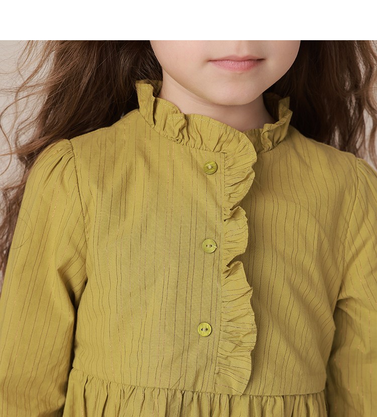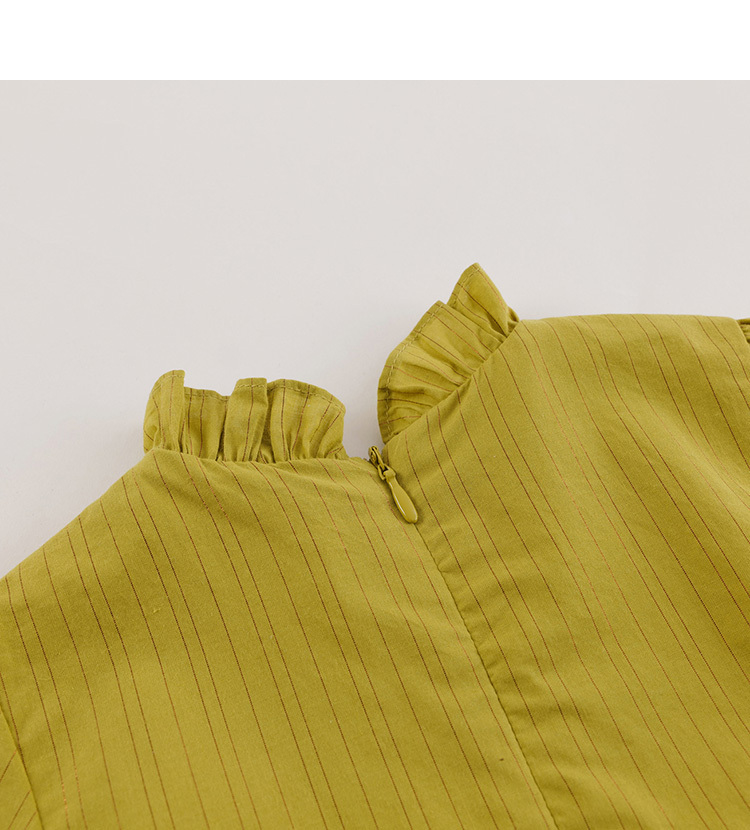 【马克珍妮 芦芙】春装新款 金丝条纹木耳边连衣裙230037