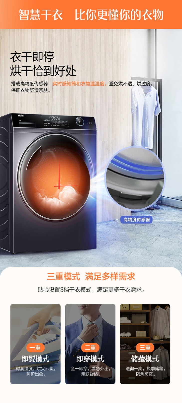 海尔(Haier) (251882) 热泵烘干机家用干衣机 GBN100-126 10公斤