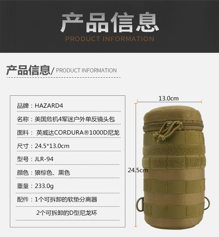 Hazard4美国危机4 JLR-94军迷镜头袋保护袋收纳包防震内胆包镜头腰包套筒
