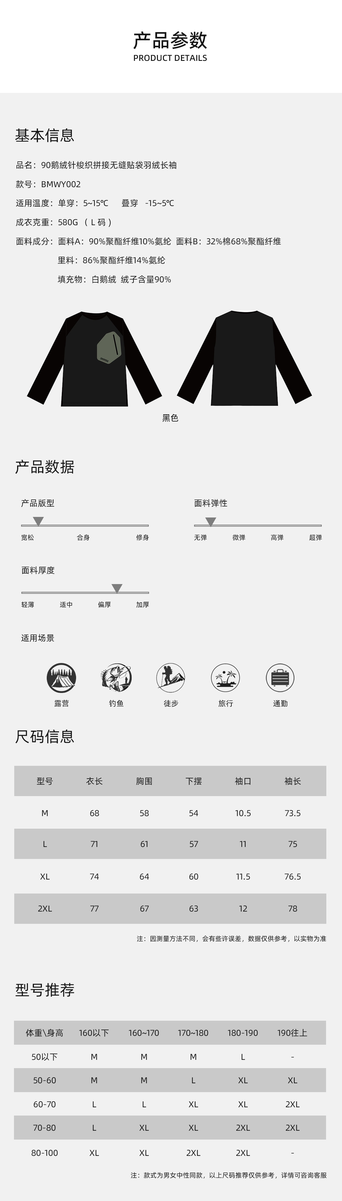 [降温提前囤] 🔥90鹅绒拼接无缝羽绒保暖长袖(男女同款)休闲风适合日常通勤户外运动穿着(TBZG)