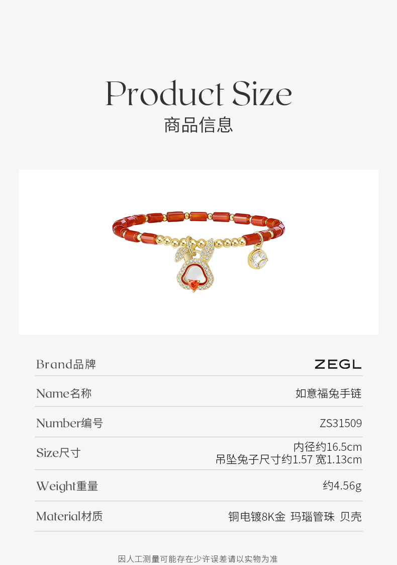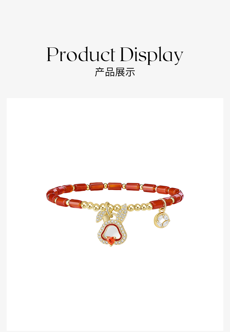 ZEGL设计师本命年系列如意兔子竹节手链女ins小众设计红玛瑙手饰