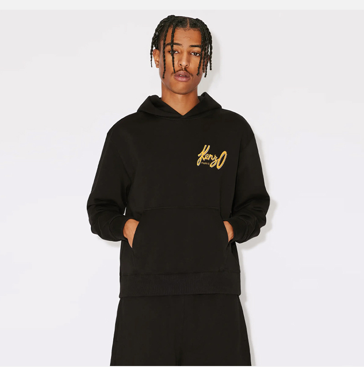 KENZO 高田贤三 男士棉质徽标印花连帽卫衣 黑色 FD65 SW087 4MF 99J