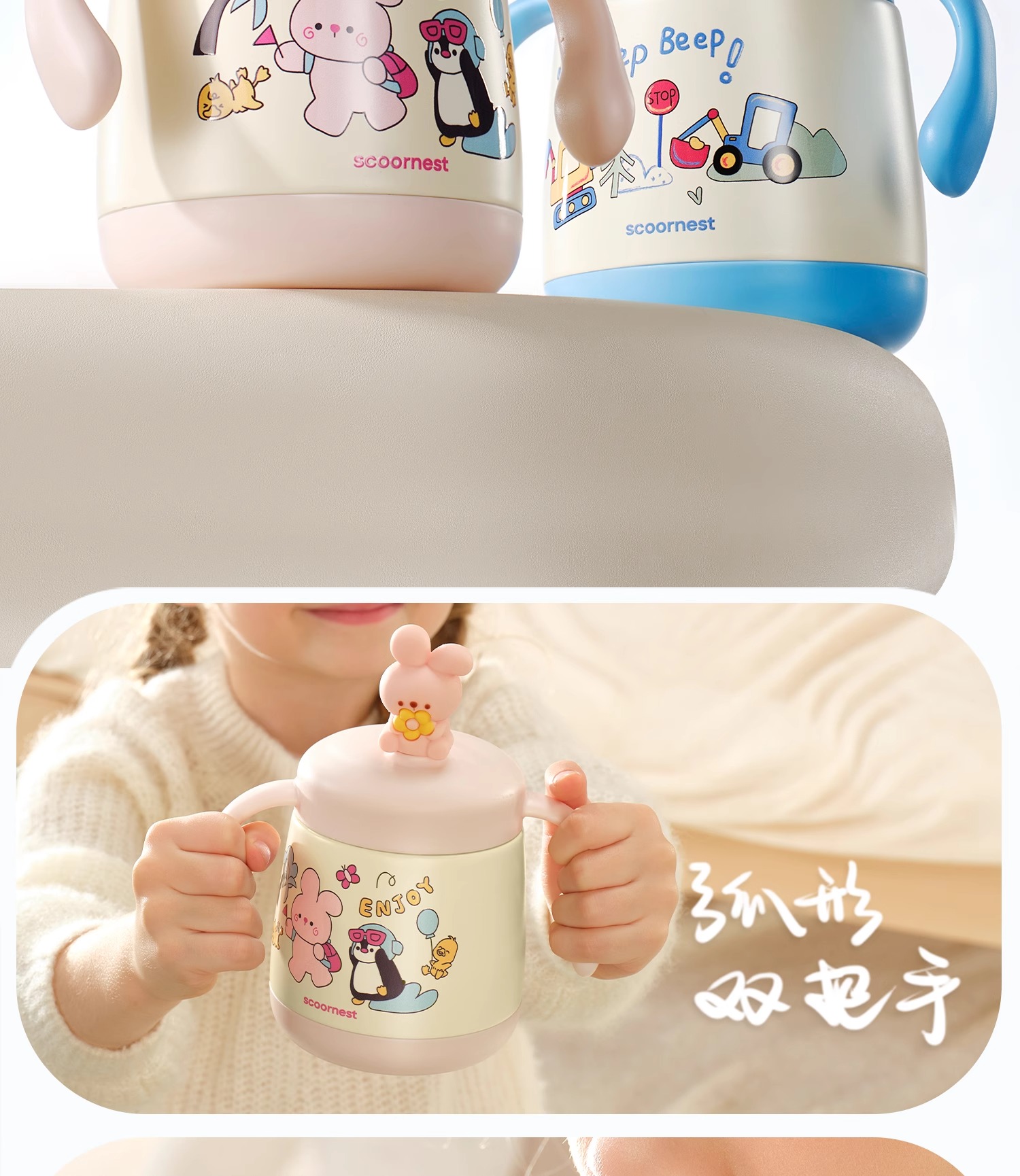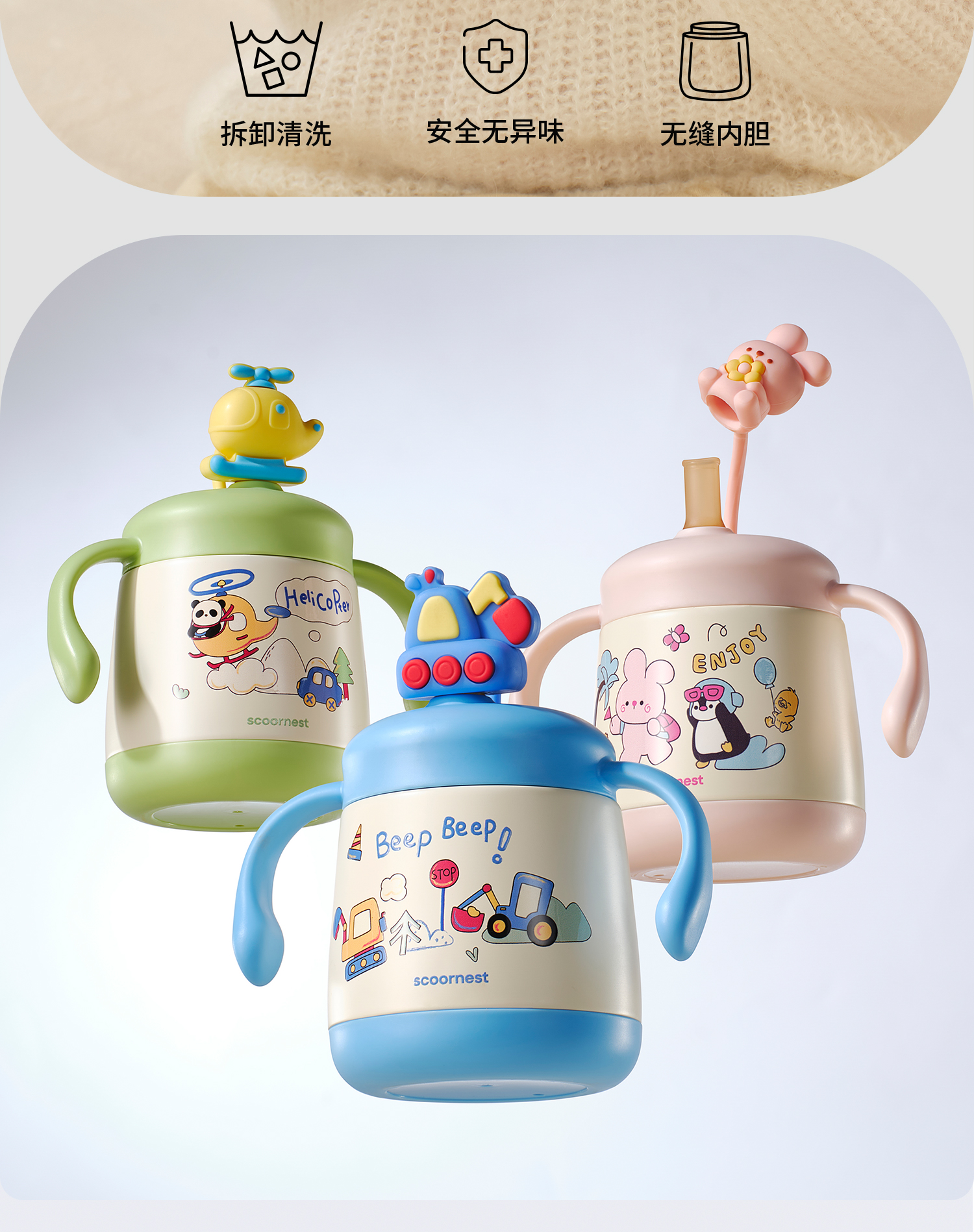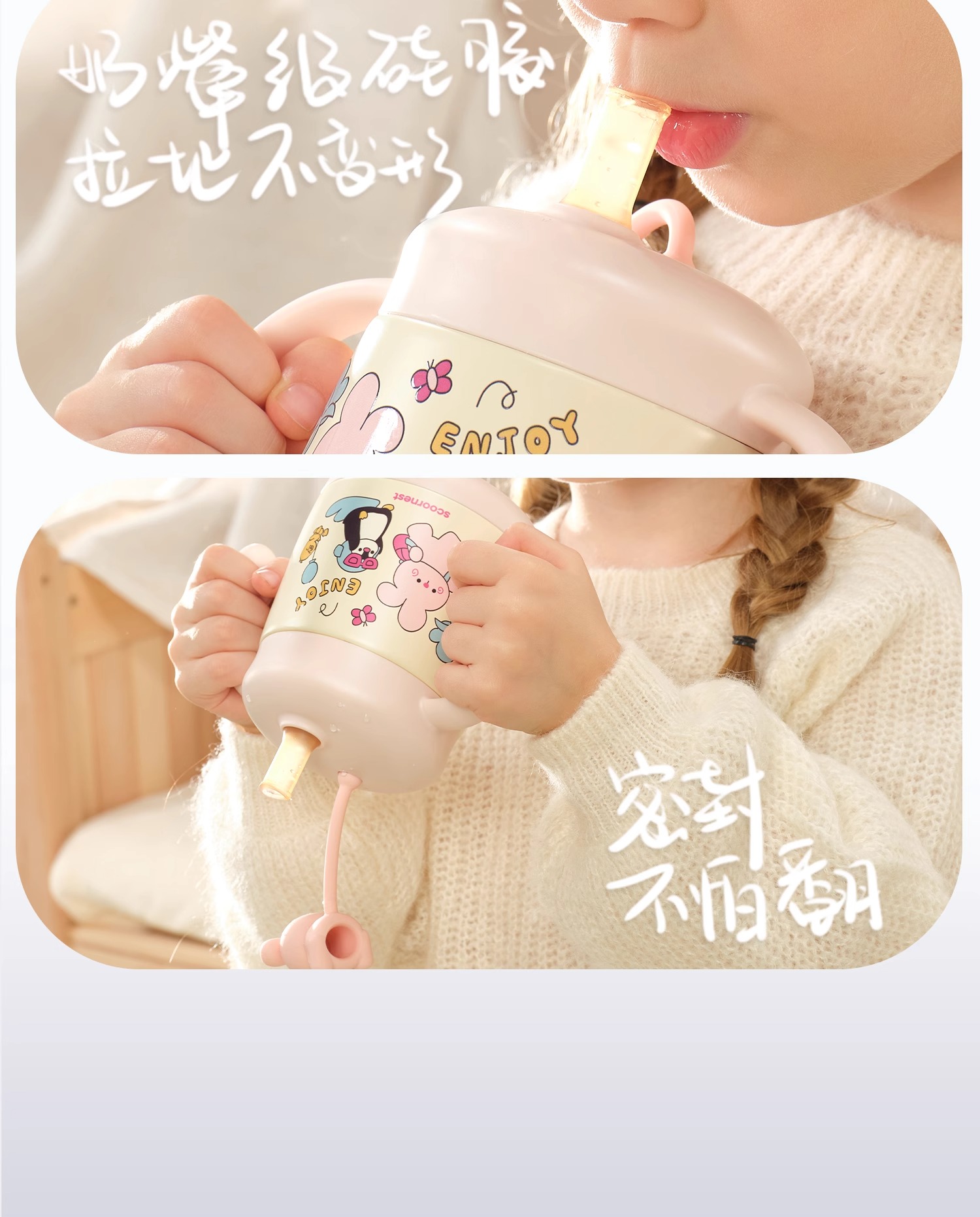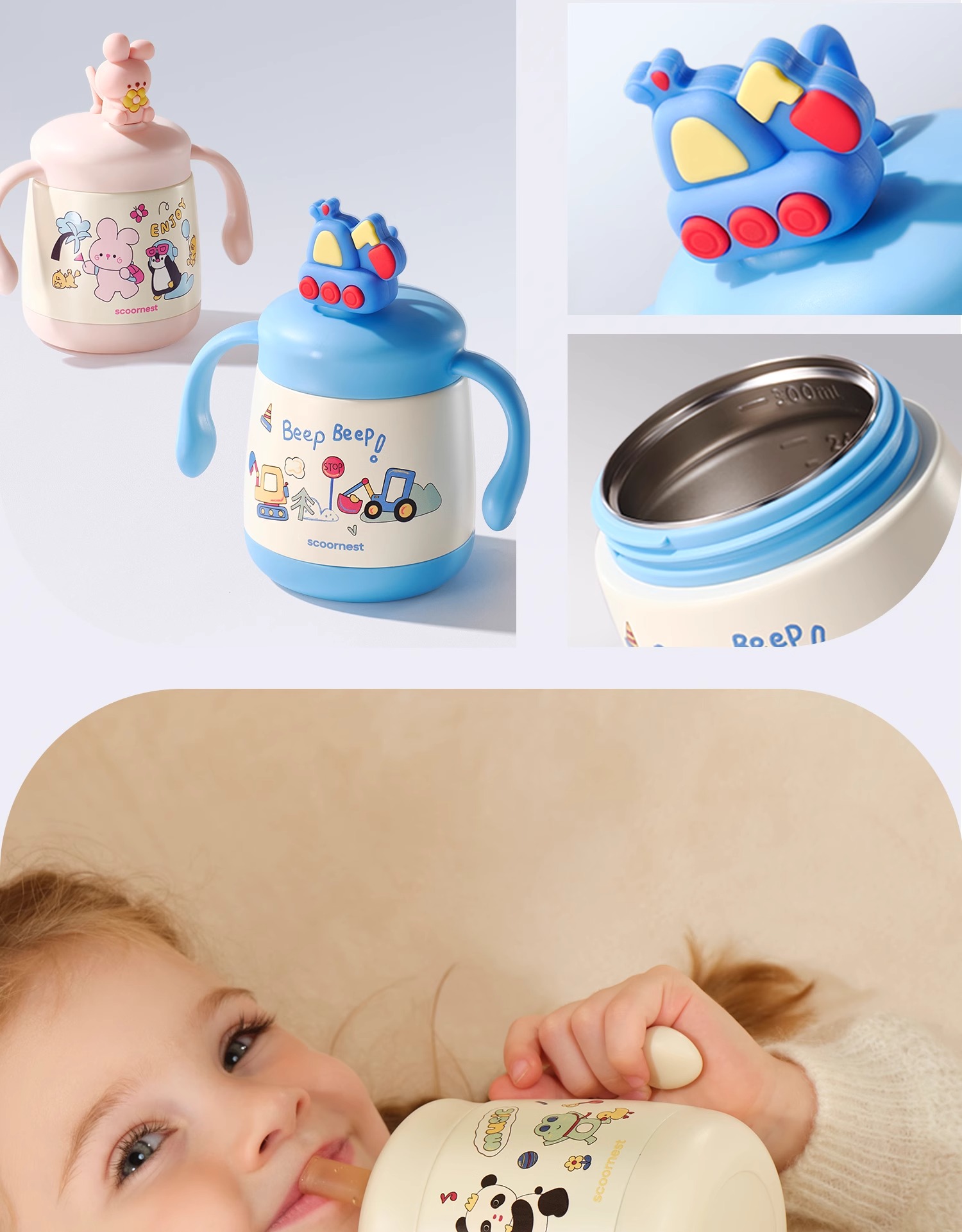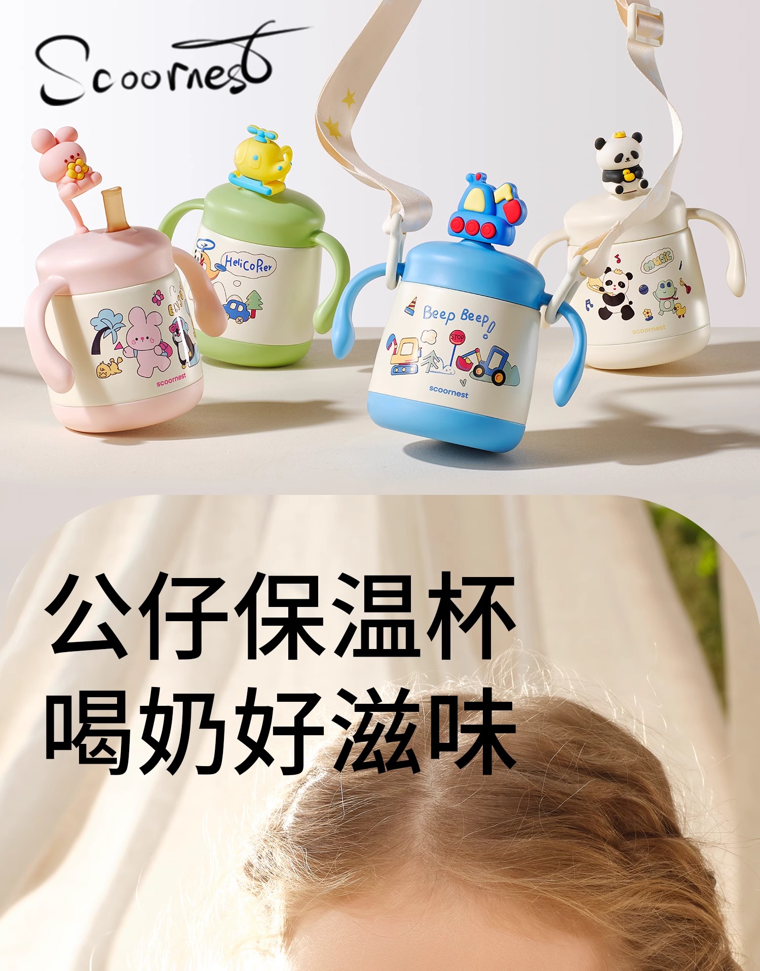 科巢婴儿童吸管保温牛奶杯水杯宝宝直饮外出喝奶瓶316L不锈钢刻度