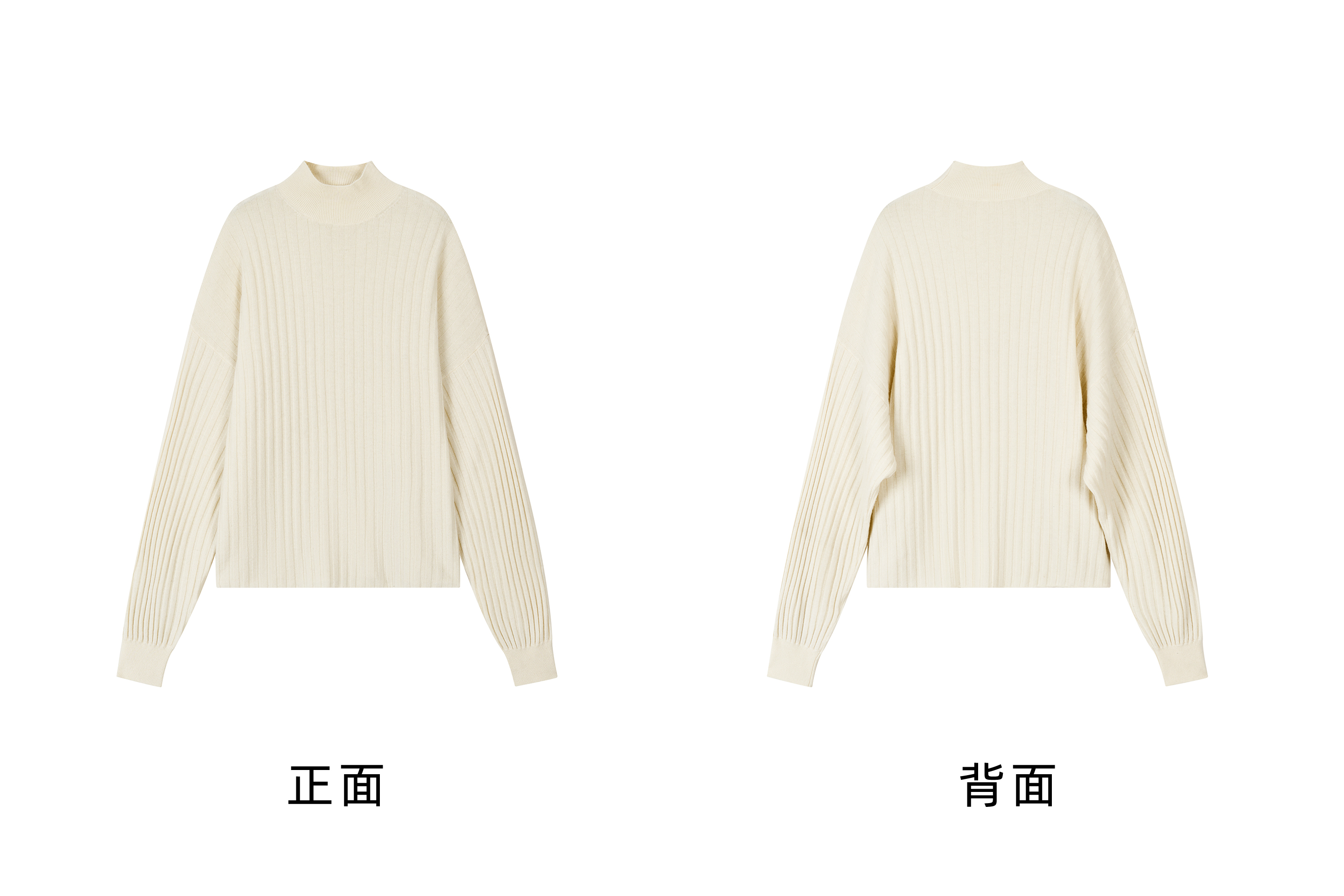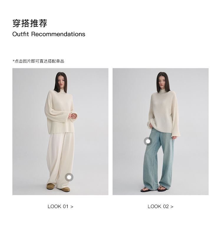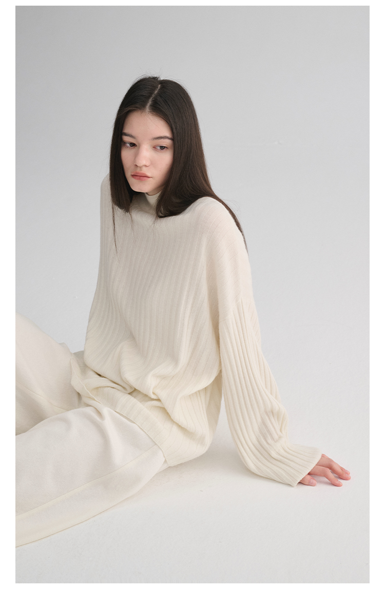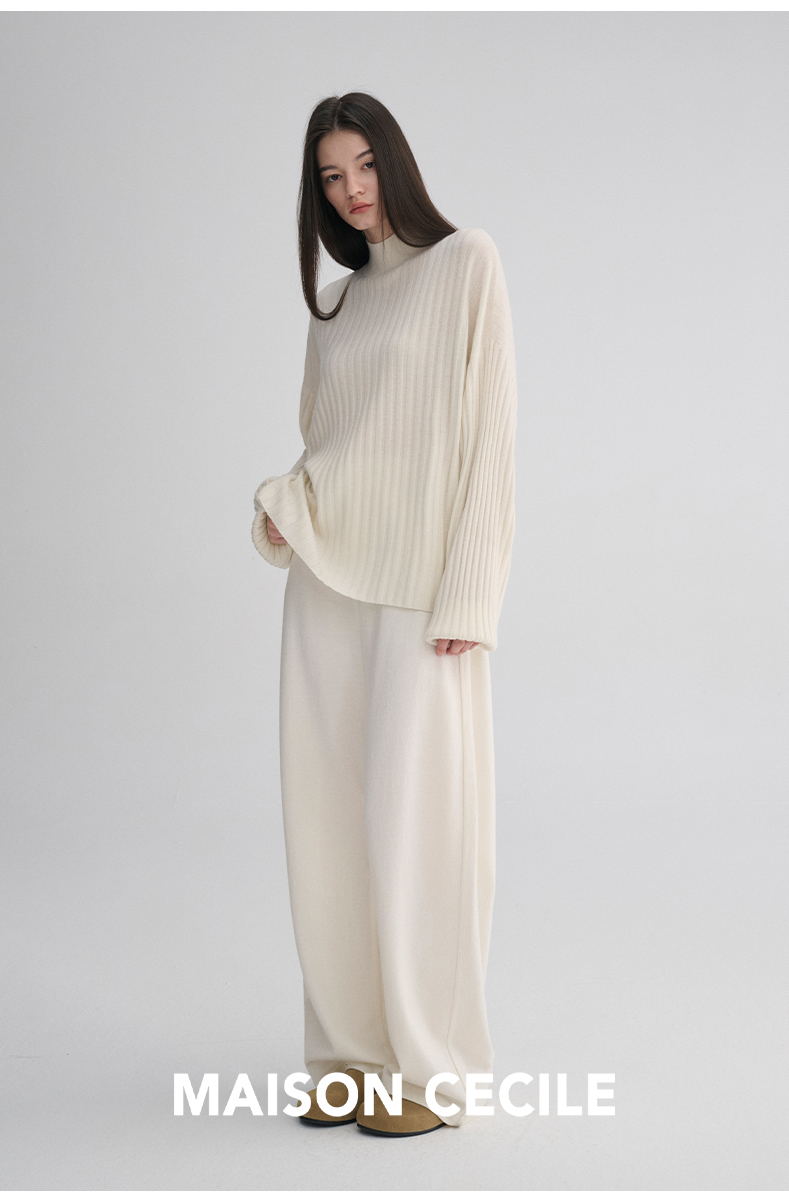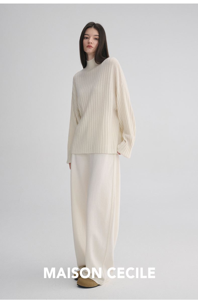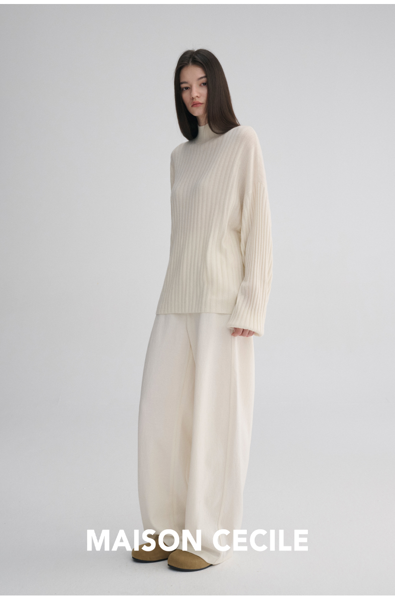 MAISON CECILE 羊绒羊毛针织半高领慵懒感立体条纹灯笼袖针织毛衣