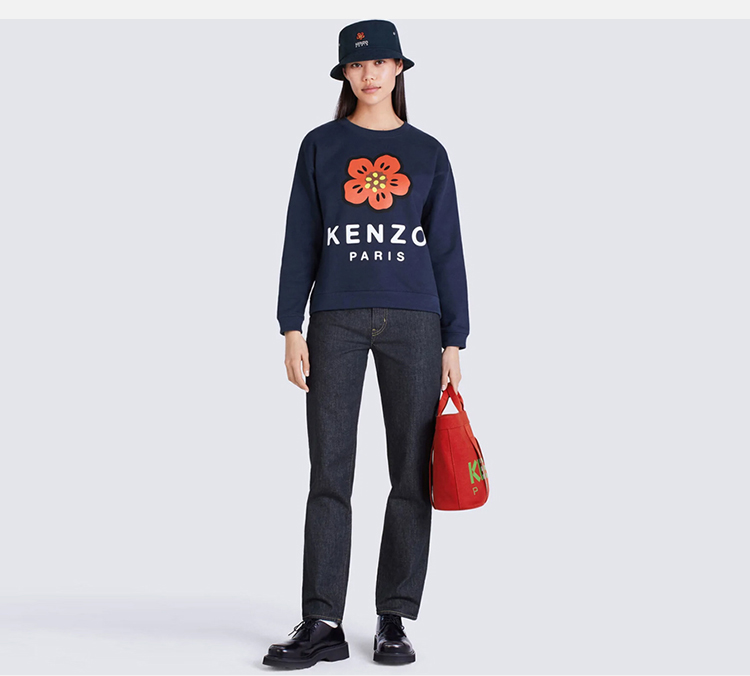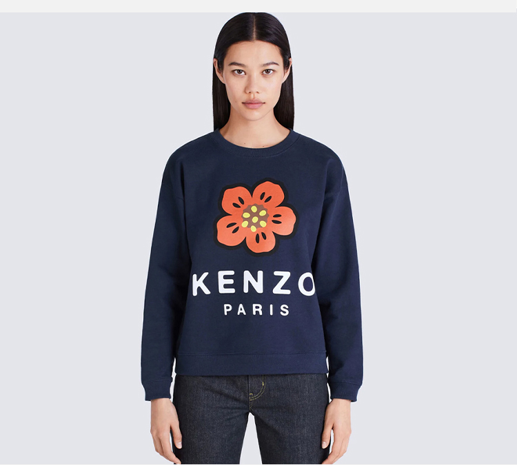 【二】KENZO 高田贤三 女士棉质字母花徽标印花圆领长袖卫衣 藏蓝色 FC62 SW011 4ME 77