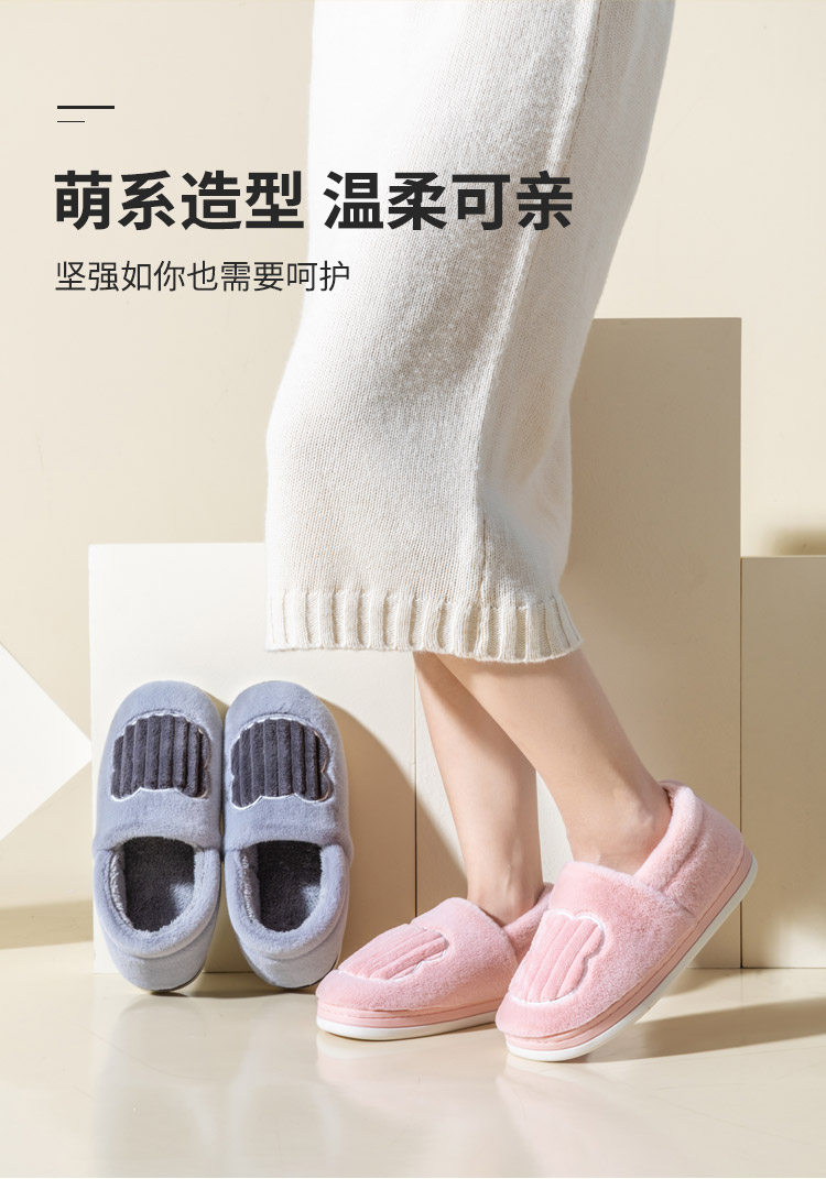 京东京造 经典家居包脚棉拖鞋 轻简毛绒保暖包跟棉拖鞋男款 灰色44-45 JZ-3222
